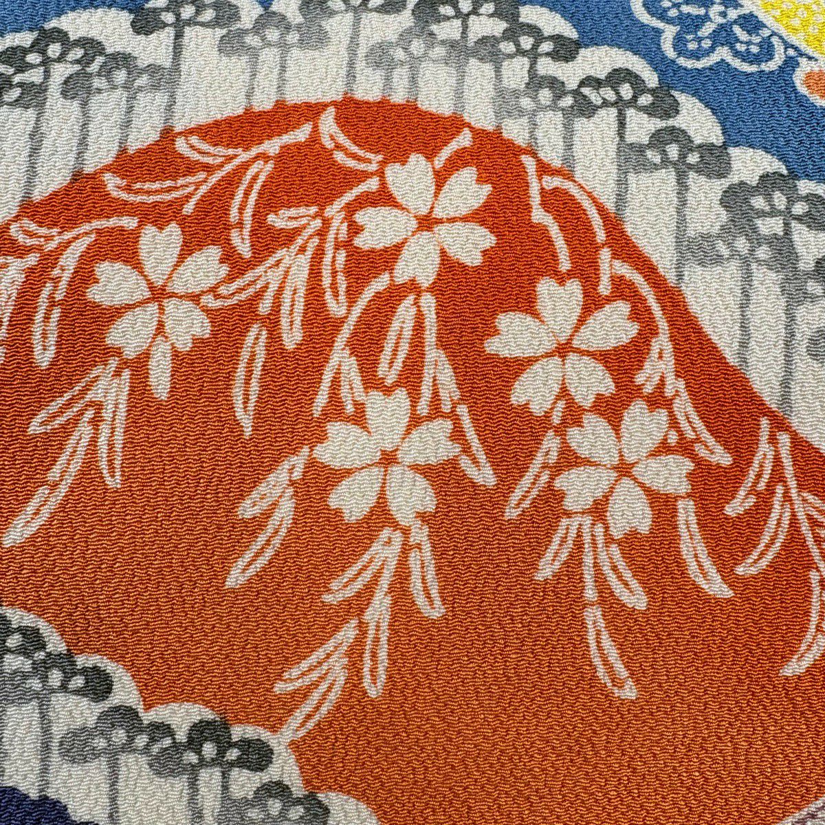 名古屋帯 秀品 鼓 桜 縮緬 灰色 正絹