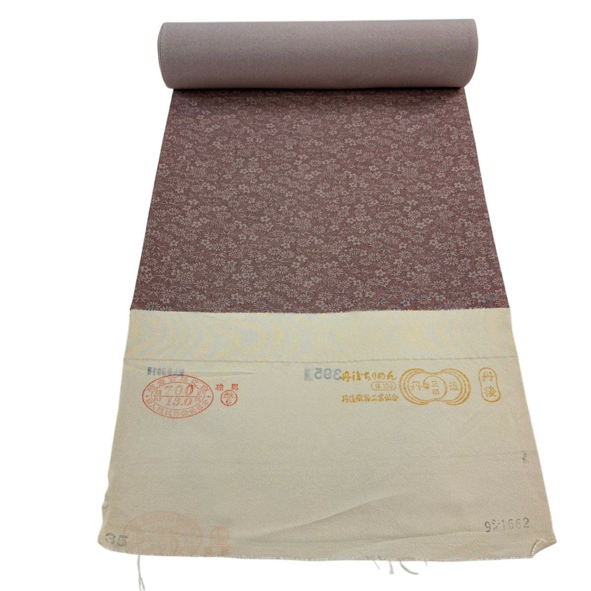反物 秀品 江戸小紋 花柄 小豆色 正絹