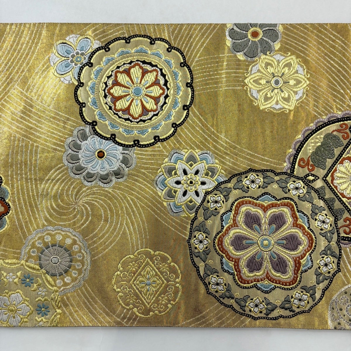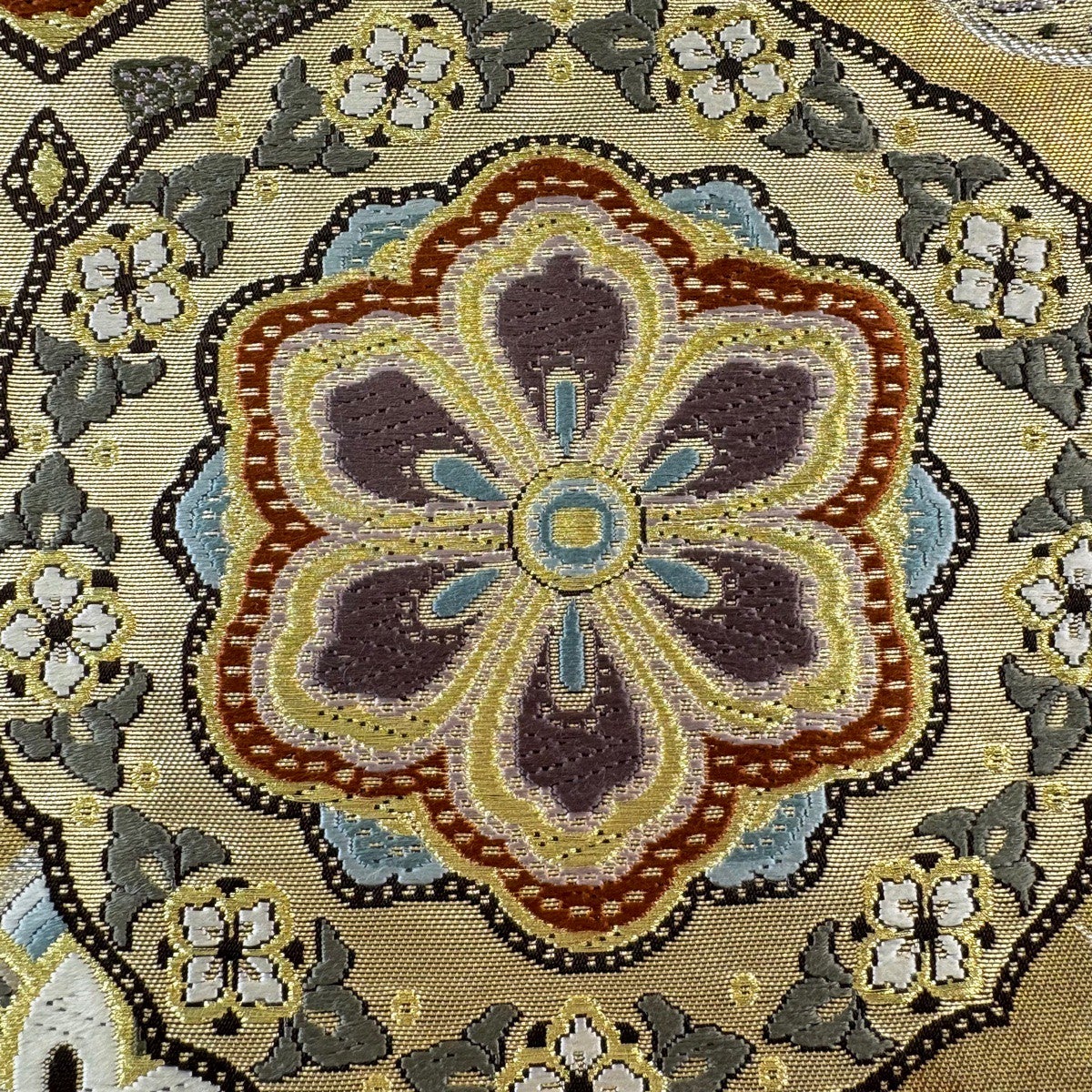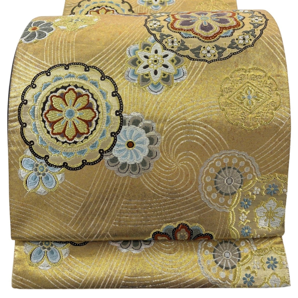 袋帯 秀品 松皮菱 草花 金銀糸 箔 金色 六通 正絹