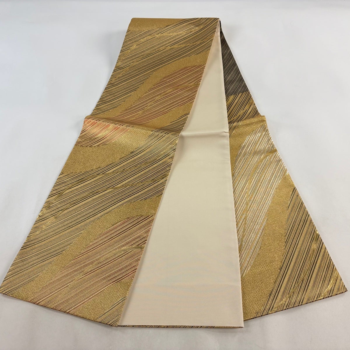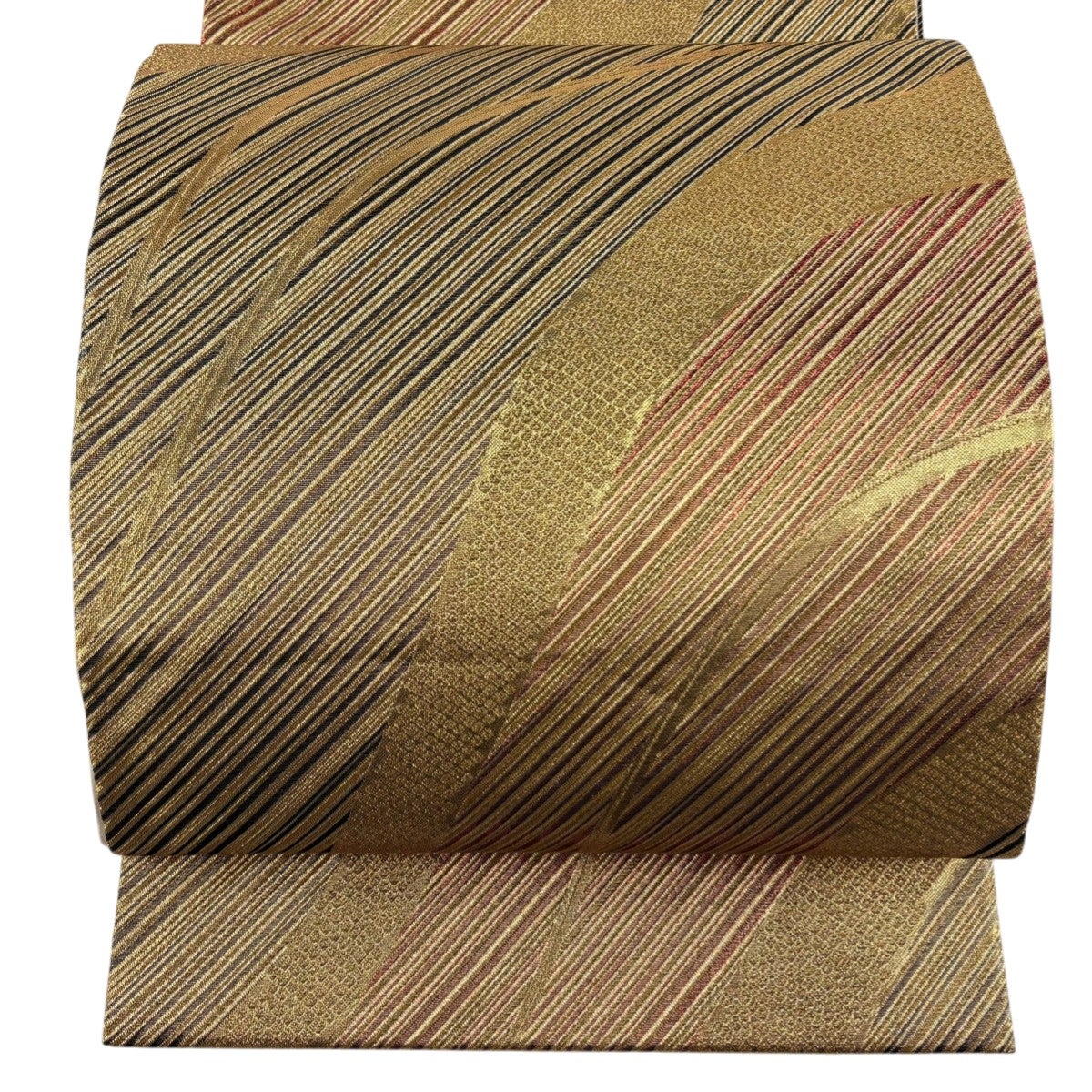【美品】 袋帯 秀品 幾何学 金銀糸 金色 全通 正絹
