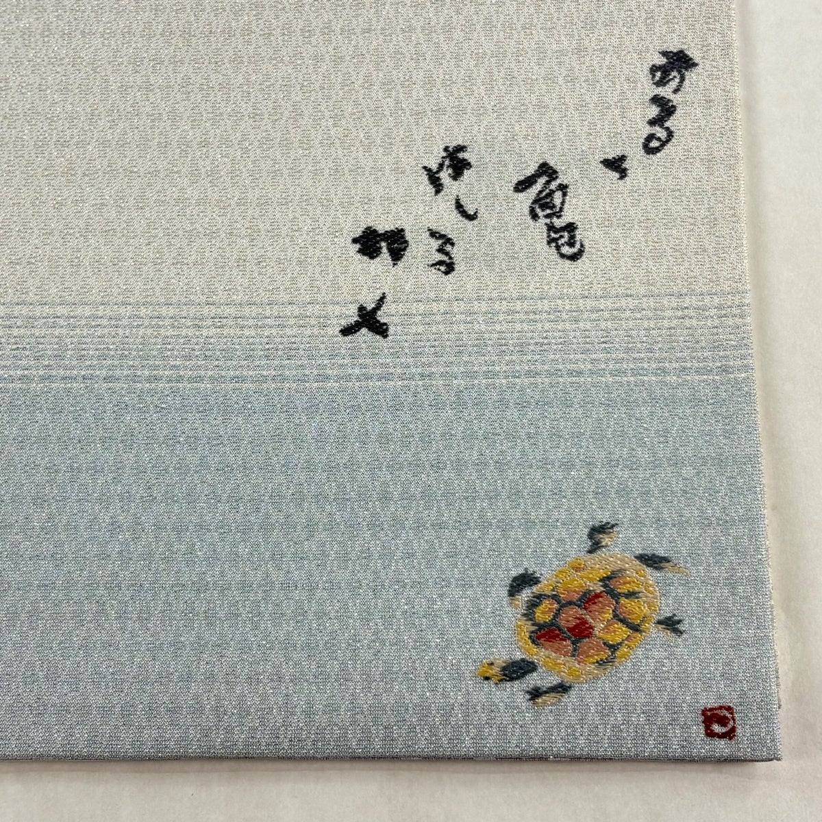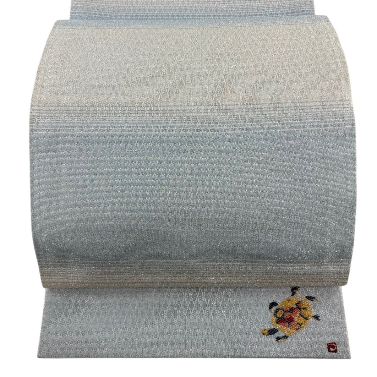 名古屋帯 秀品 関西仕立て 草花 唐織 青灰色 正絹