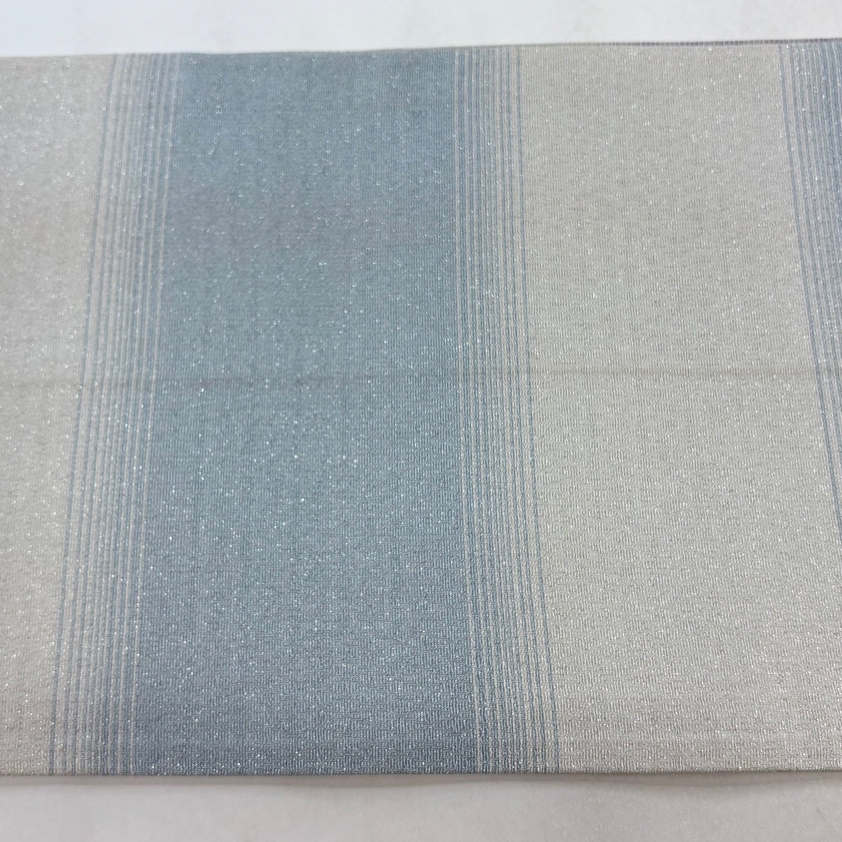 袋帯 秀品 夏帯 波 縞 金銀糸 黒 お太鼓柄 正絹