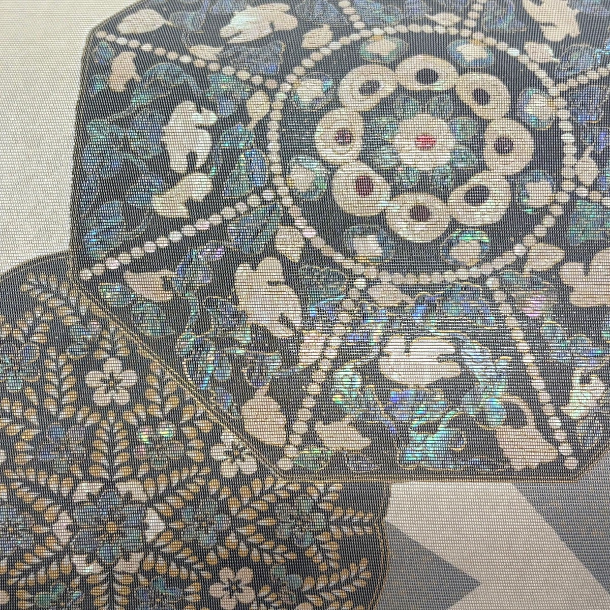 【美品】 袋帯 秀品 菱文 華文 箔 黒 六通 正絹