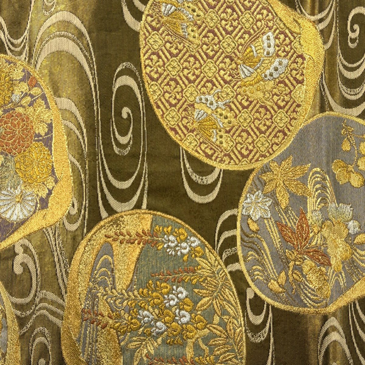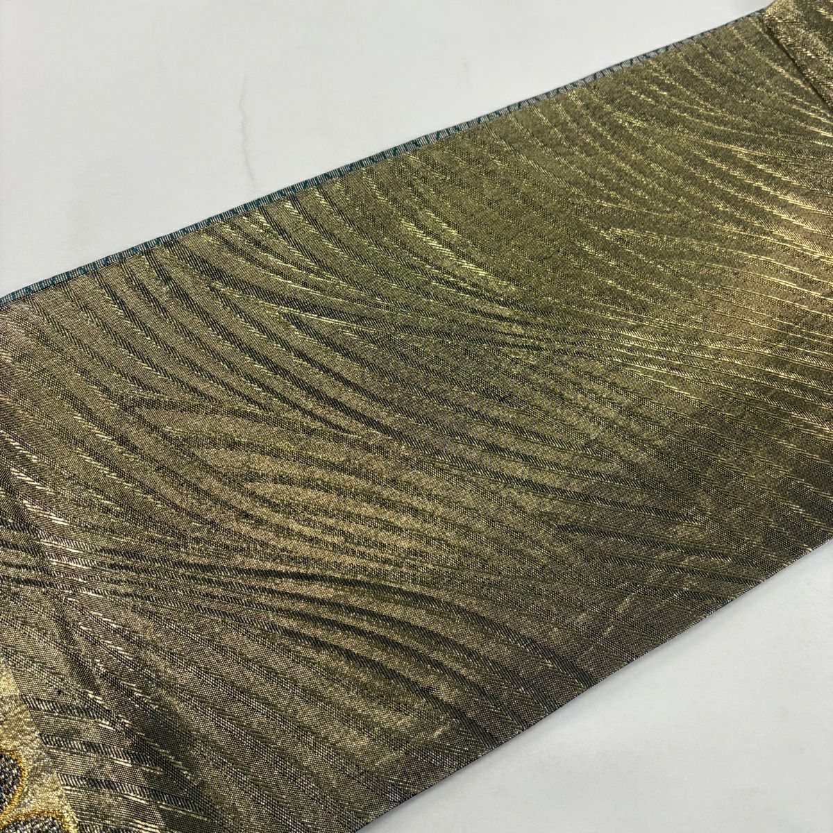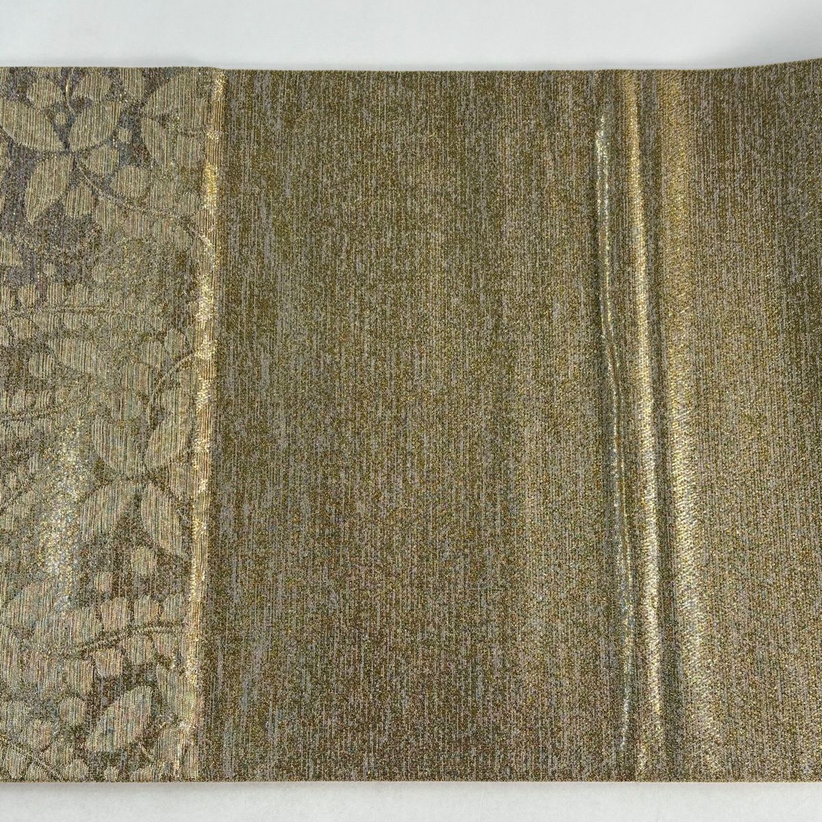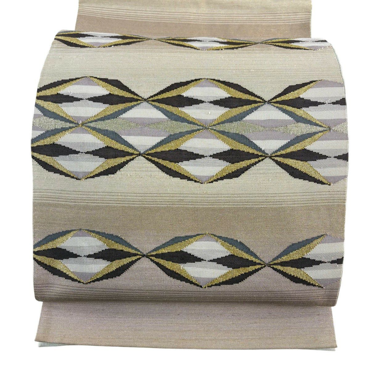 30%OFF 袋帯 秀品 幾何学 箔 茶緑色 六通 正絹 K30