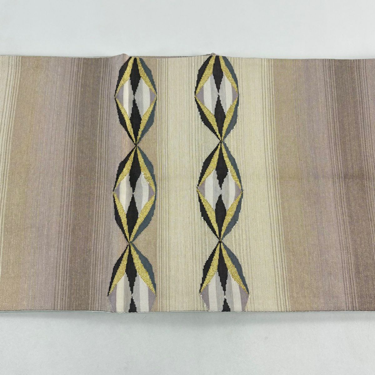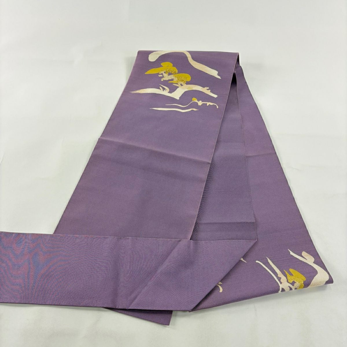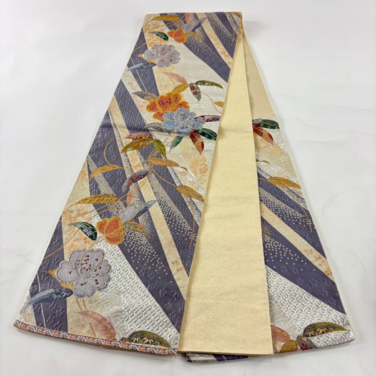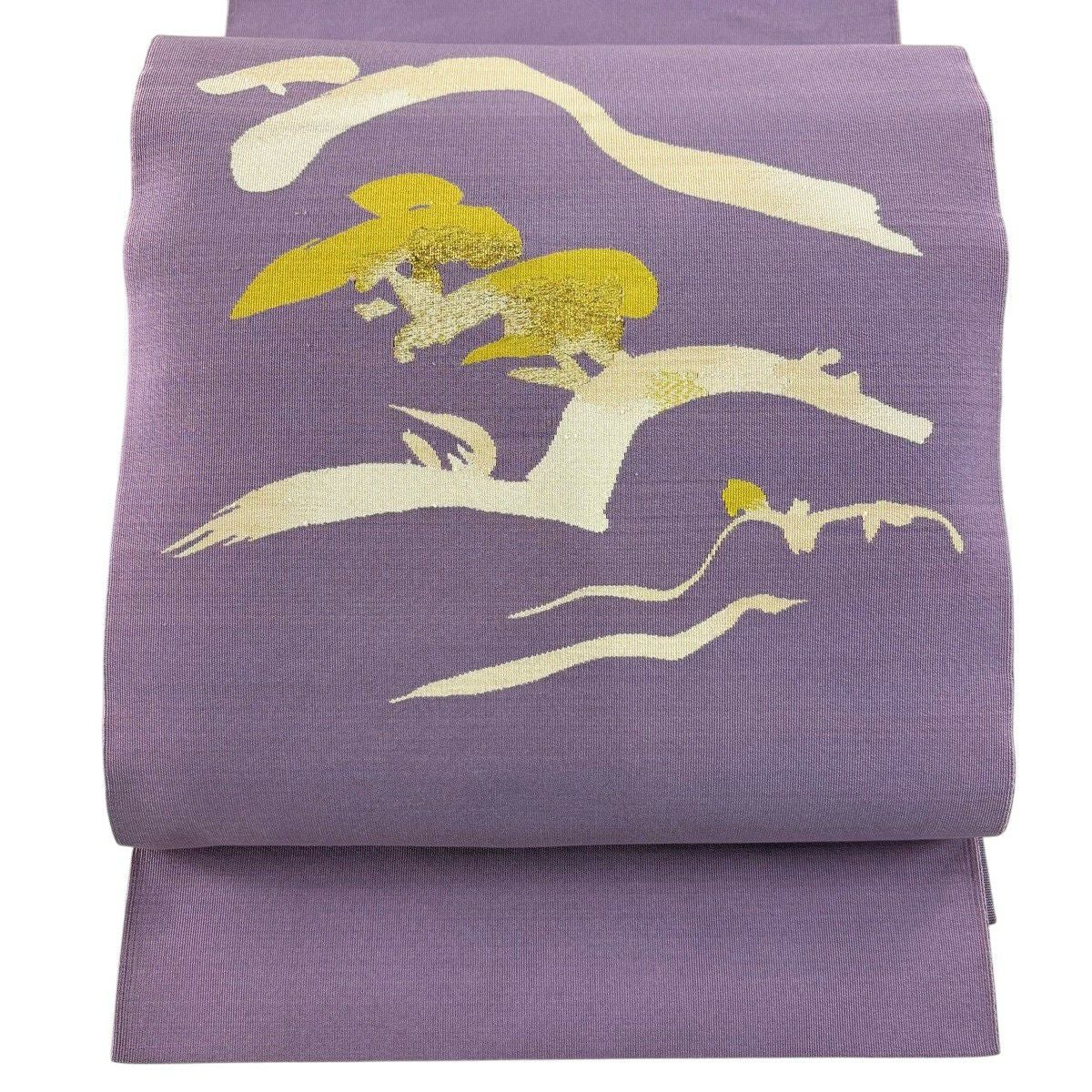 30%OFF 名古屋帯 秀品 縞 鳥 金銀糸 薄紫 正絹 K30