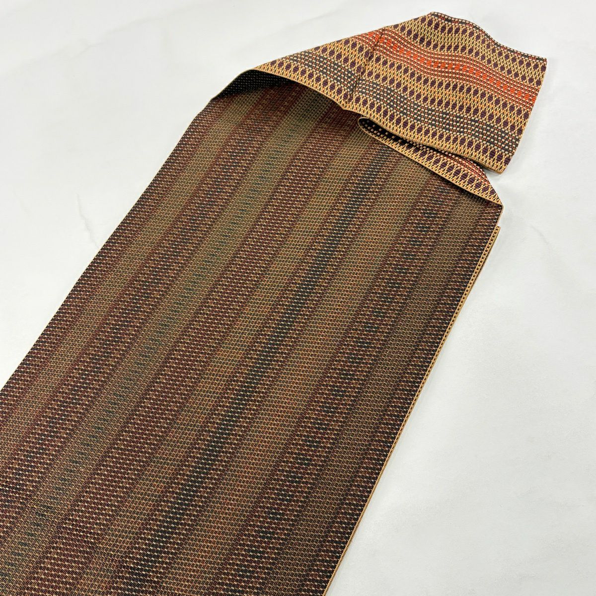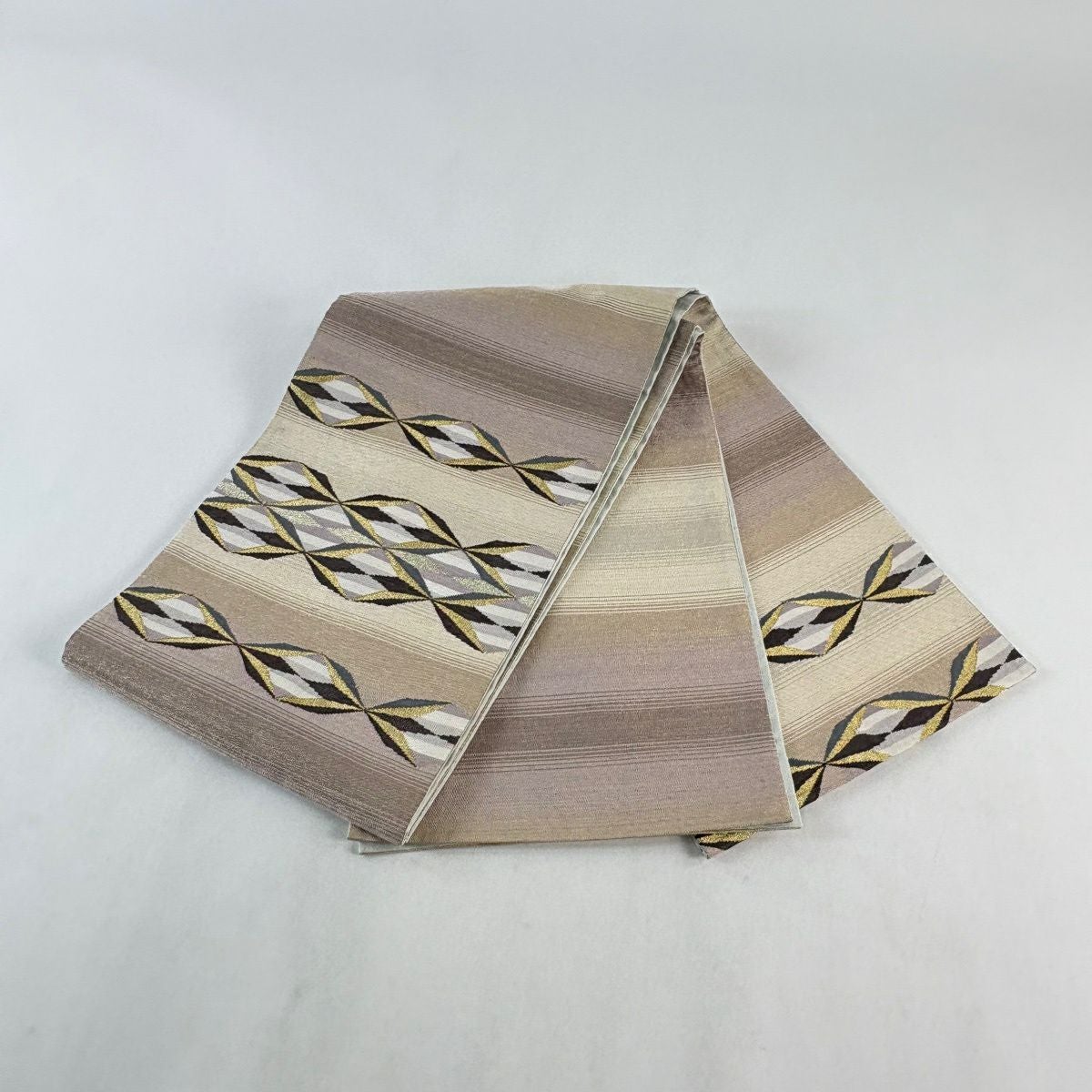 30%OFF 袋帯 秀品 幾何学模様 黄土色 六通 正絹 K30