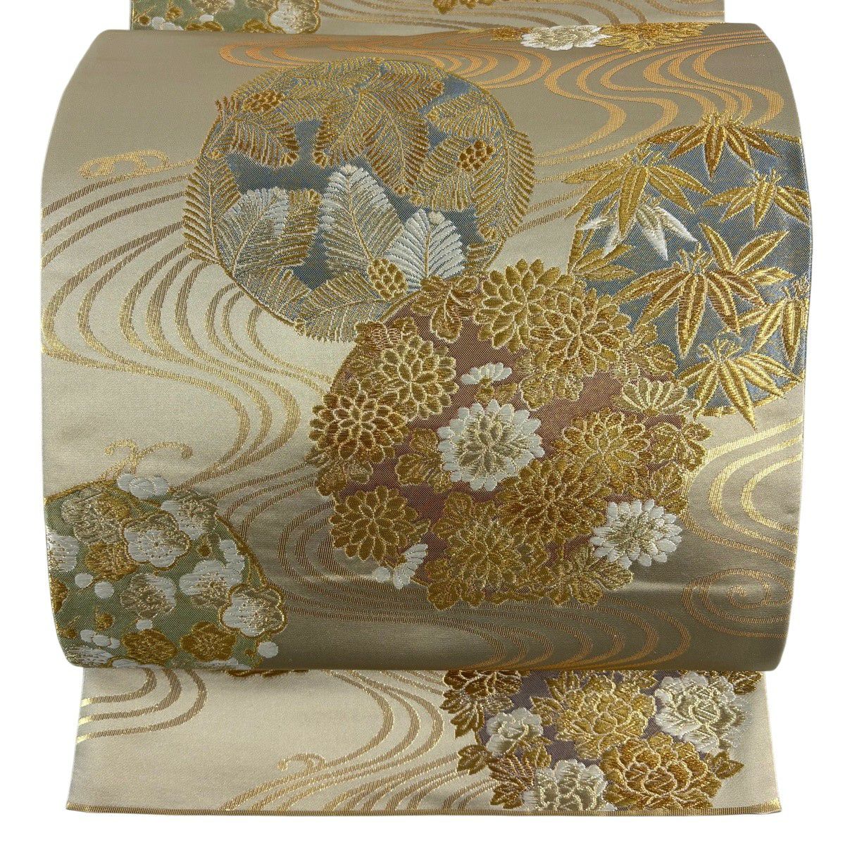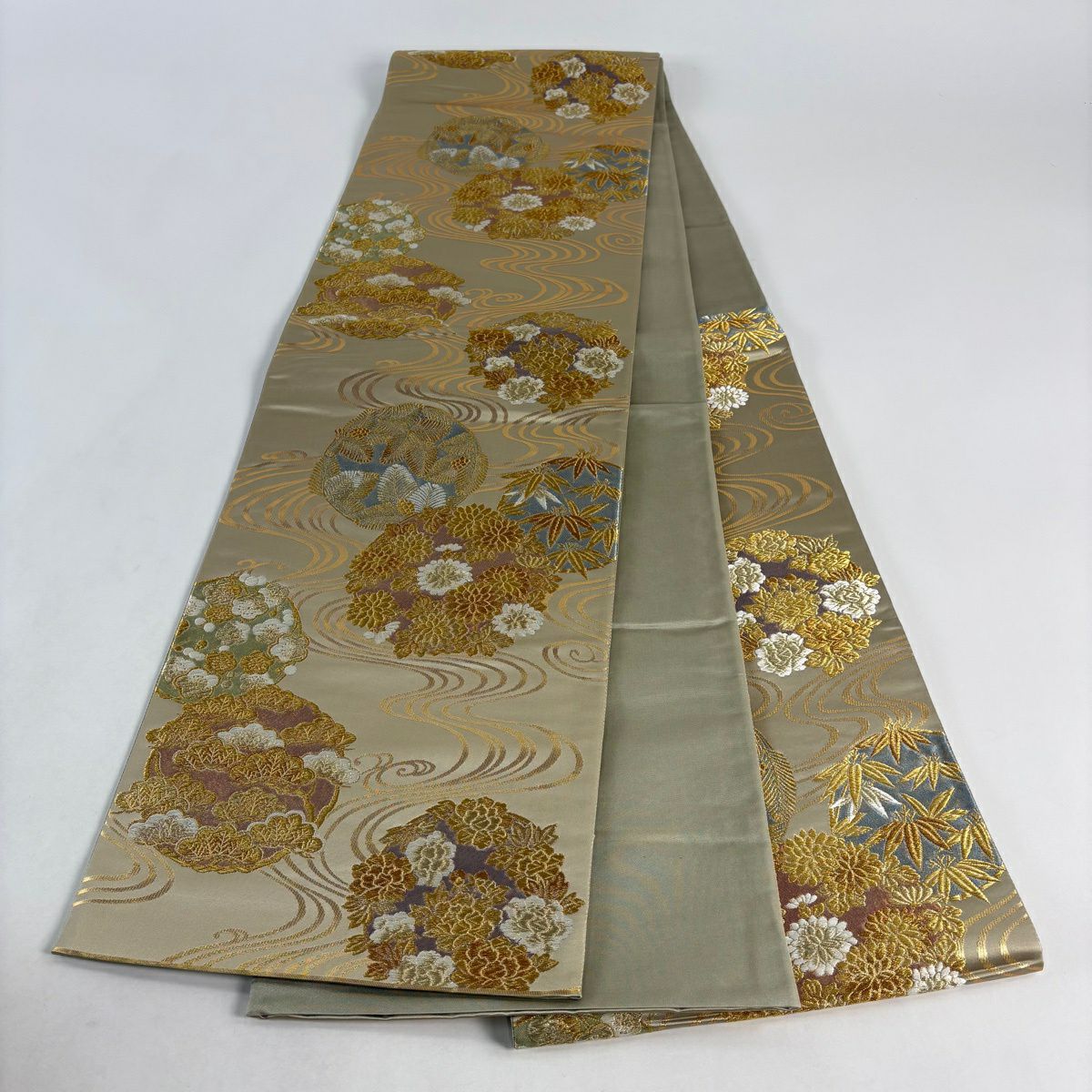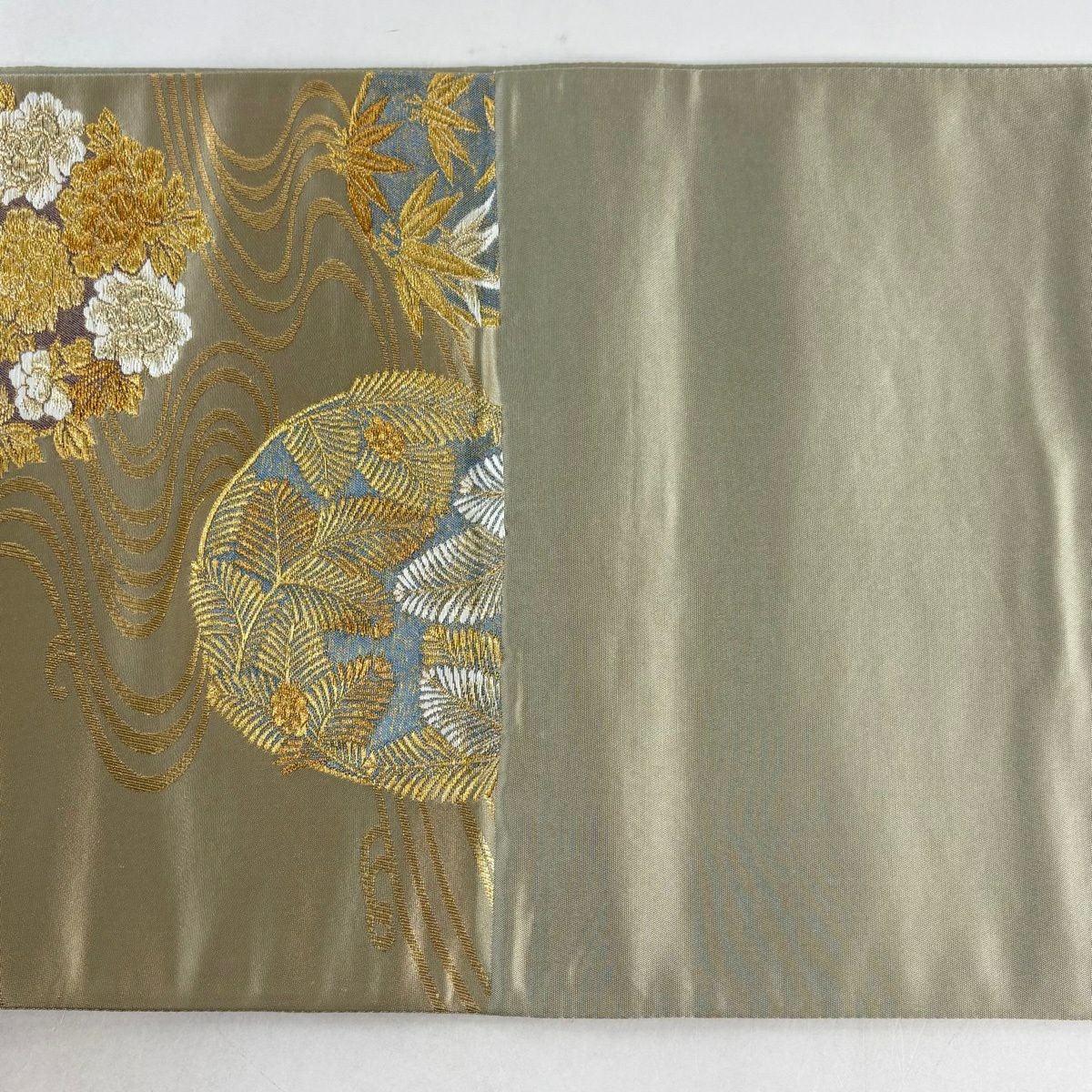 30%OFF 袋帯 秀品 若松 波 箔 灰白 六通 正絹 K30