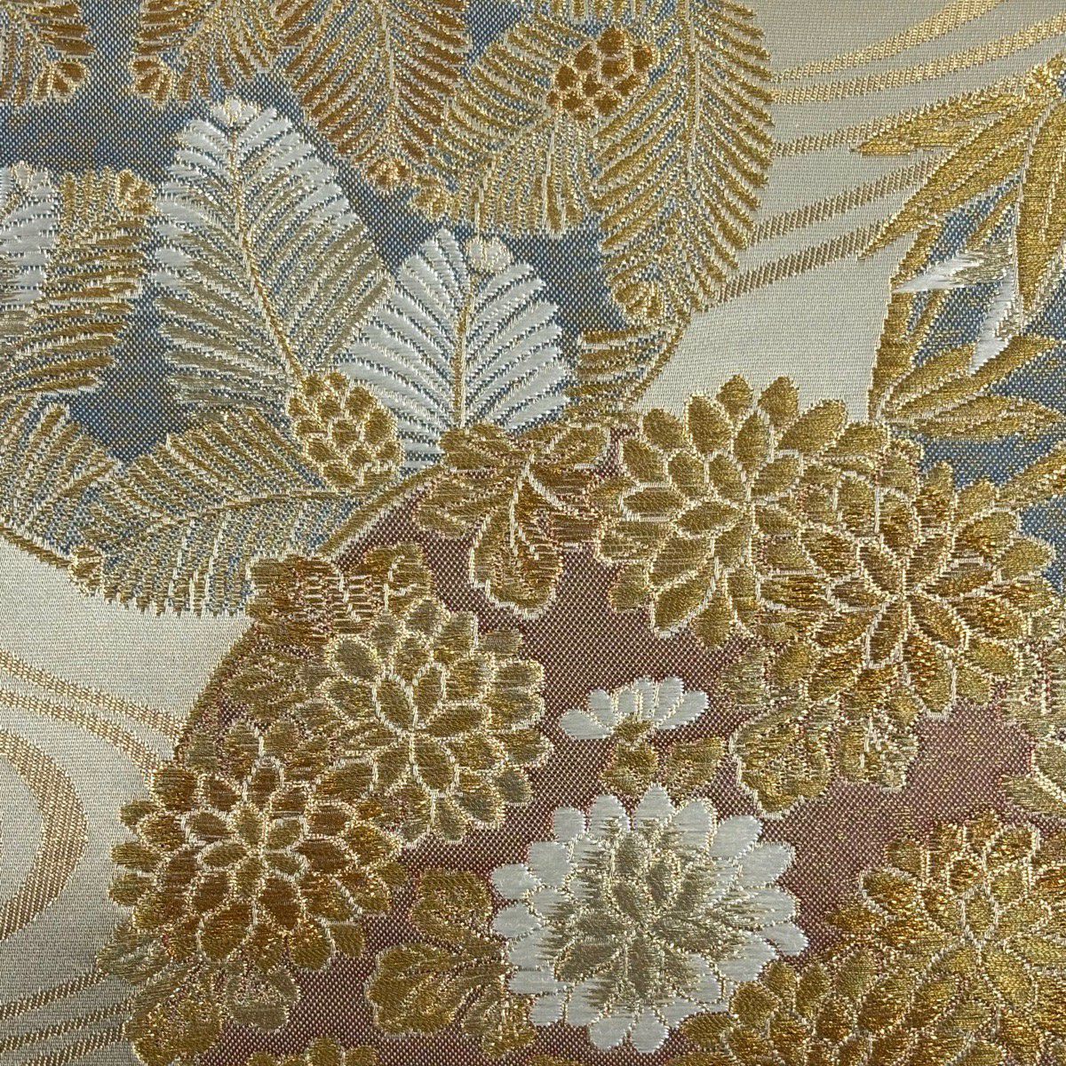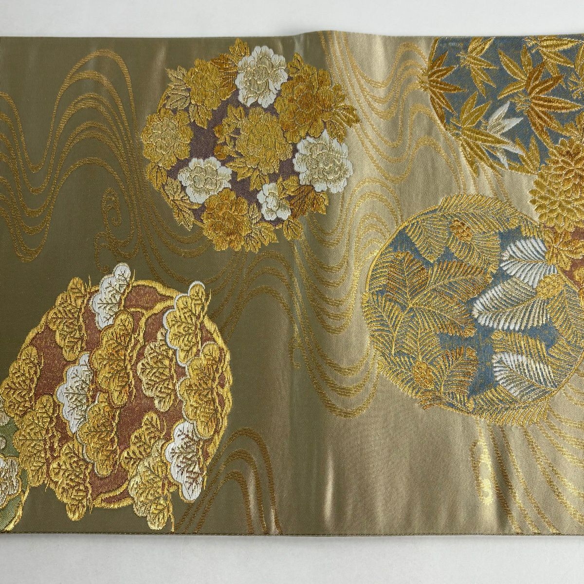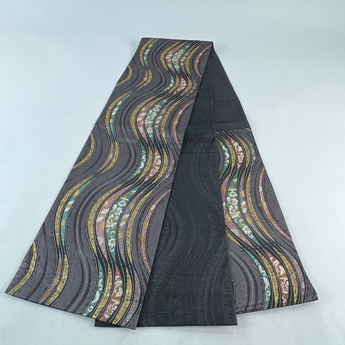30%OFF 袋帯 秀品 若松 波 箔 灰白 六通 正絹 K30