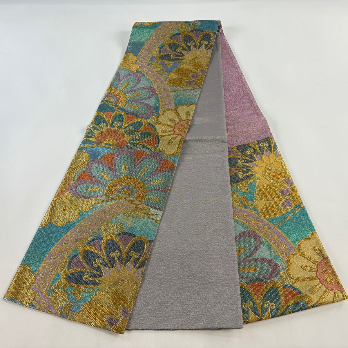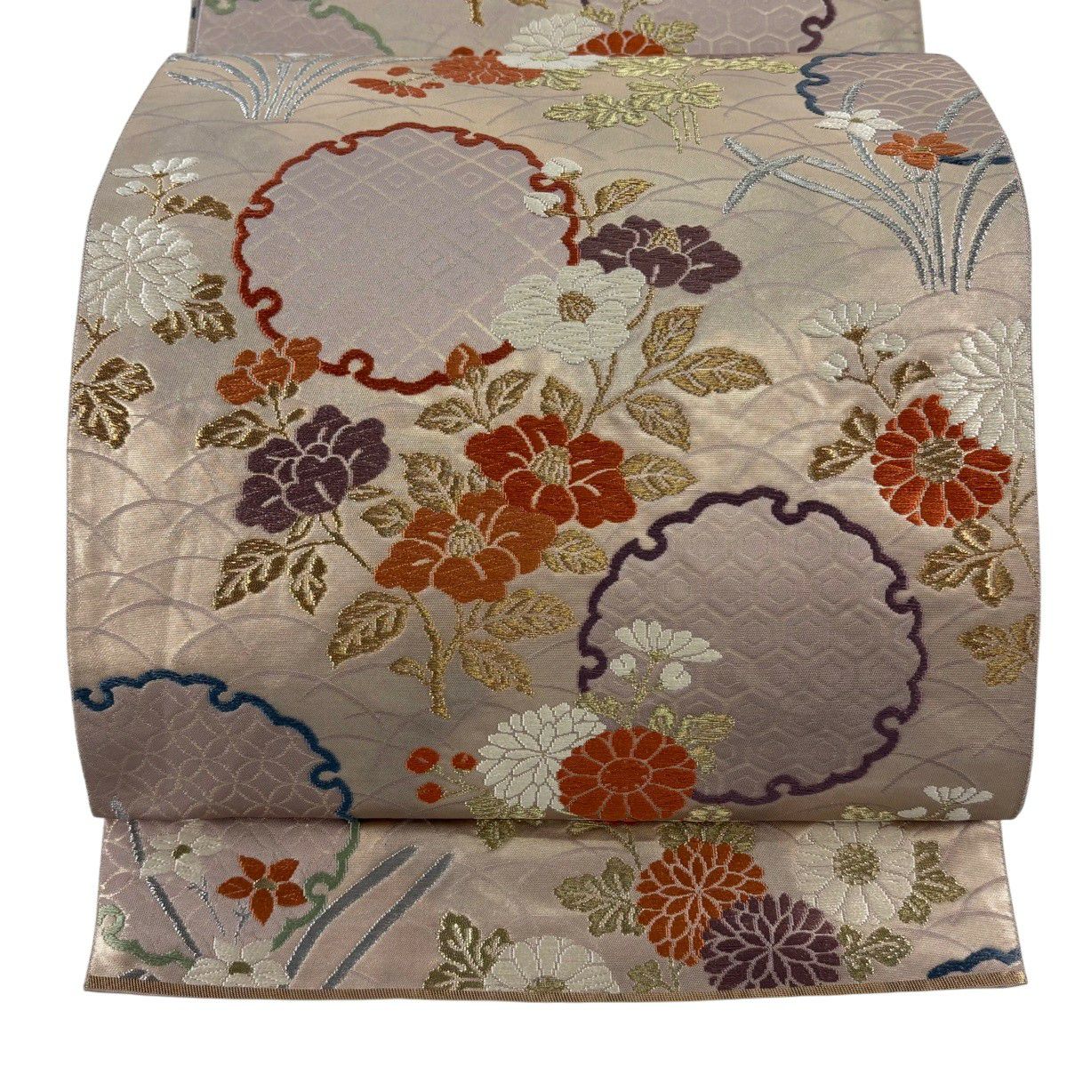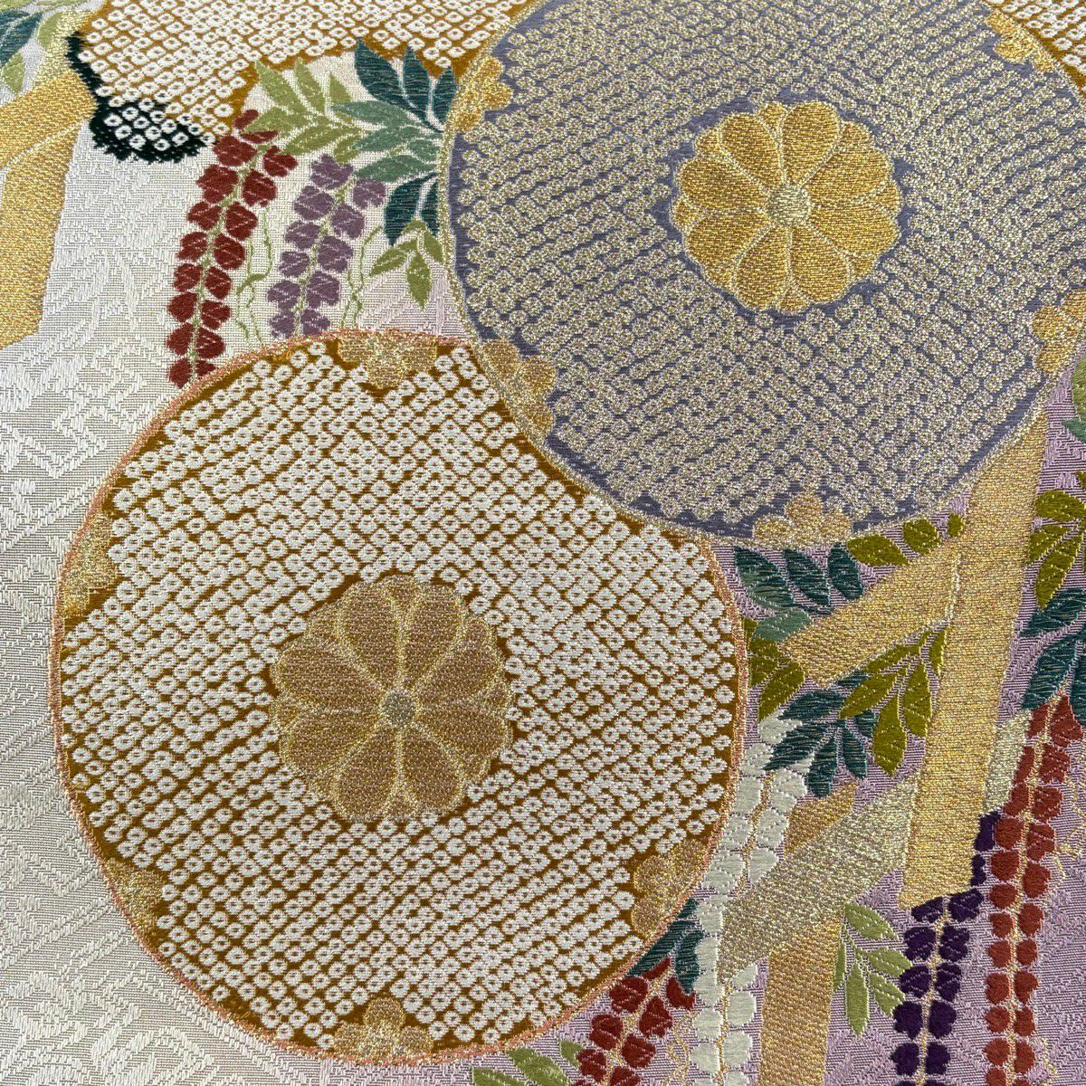 30%OFF 【美品】 袋帯 秀品 花 薄紫 六通 正絹 K30