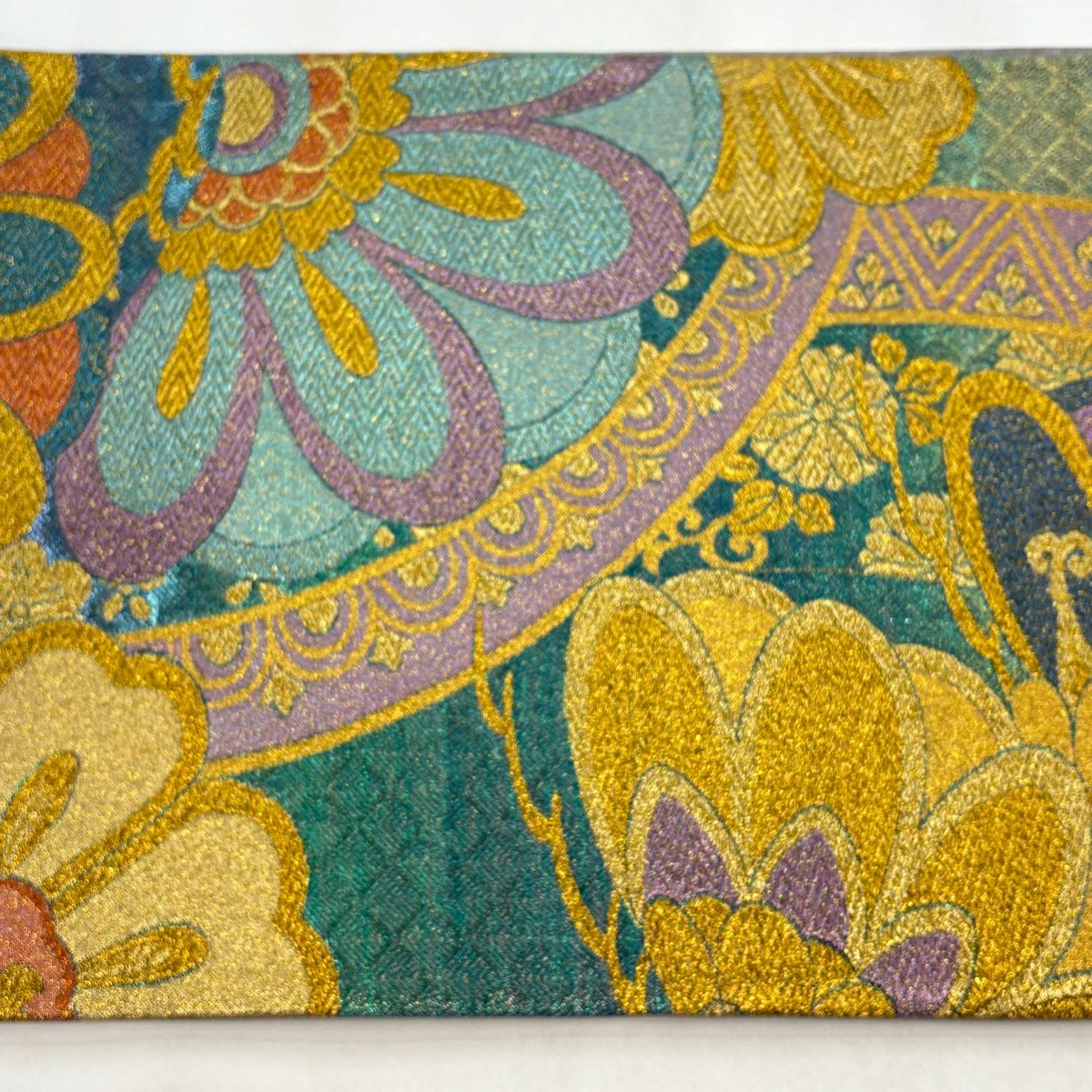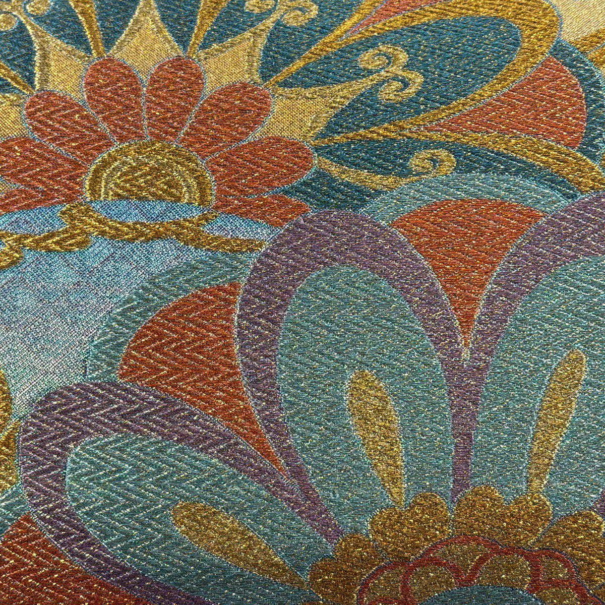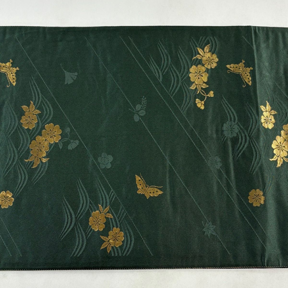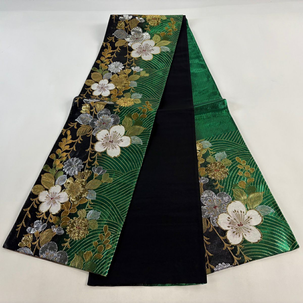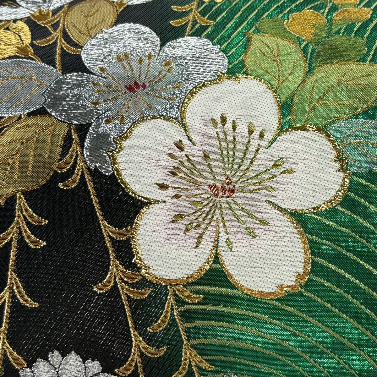 30%OFF 袋帯 秀品 草花 幾何学 深緑 六通 正絹 K30