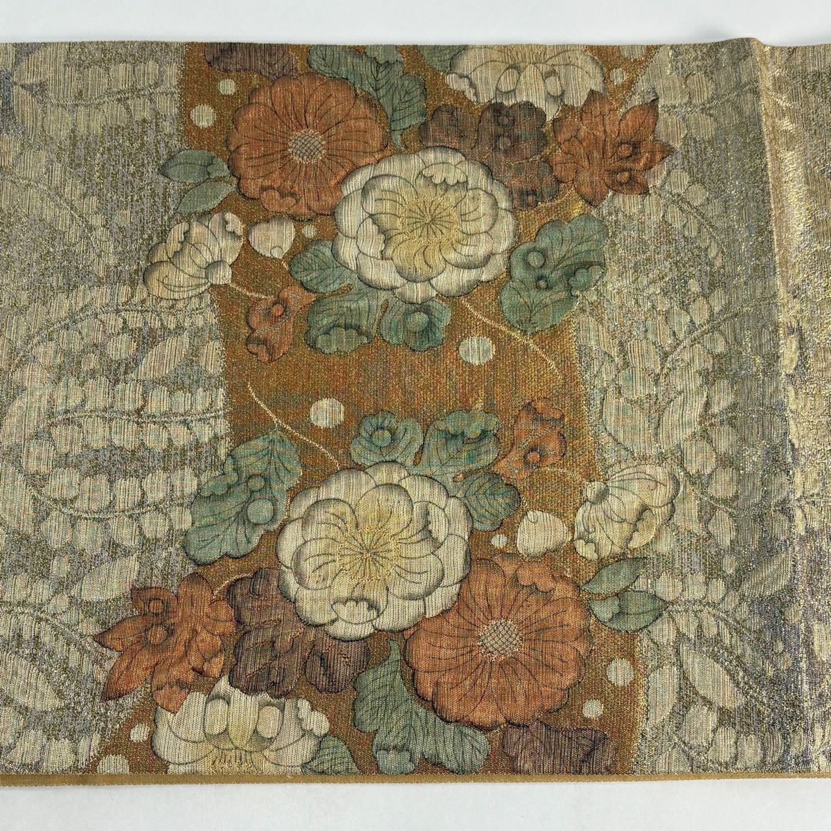 30%OFF 袋帯 秀品 梅 霞 箔 黄土色 六通 正絹 K30