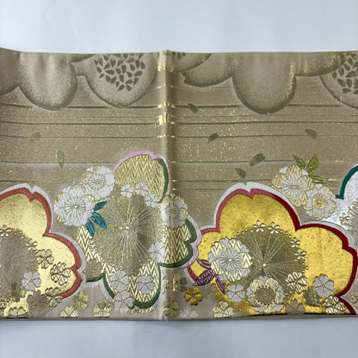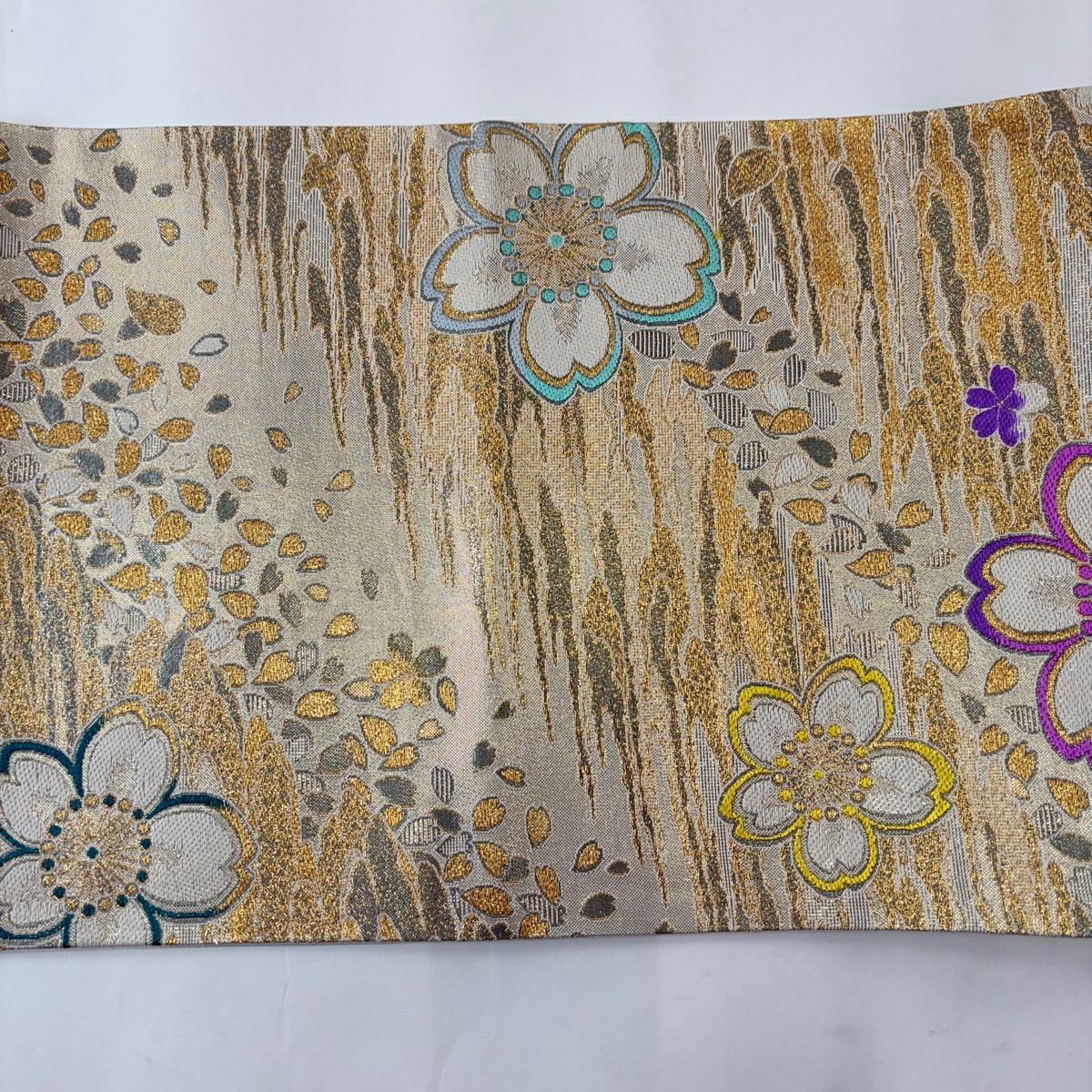 30%OFF 袋帯 秀品 桜 流水 箔 水色 六通 正絹 K30