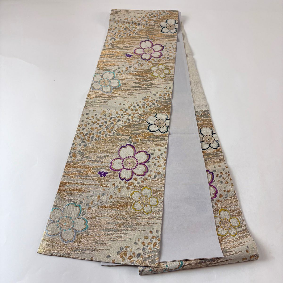 30%OFF 袋帯 秀品 桜 金糸 箔 灰紫 六通 正絹 K30