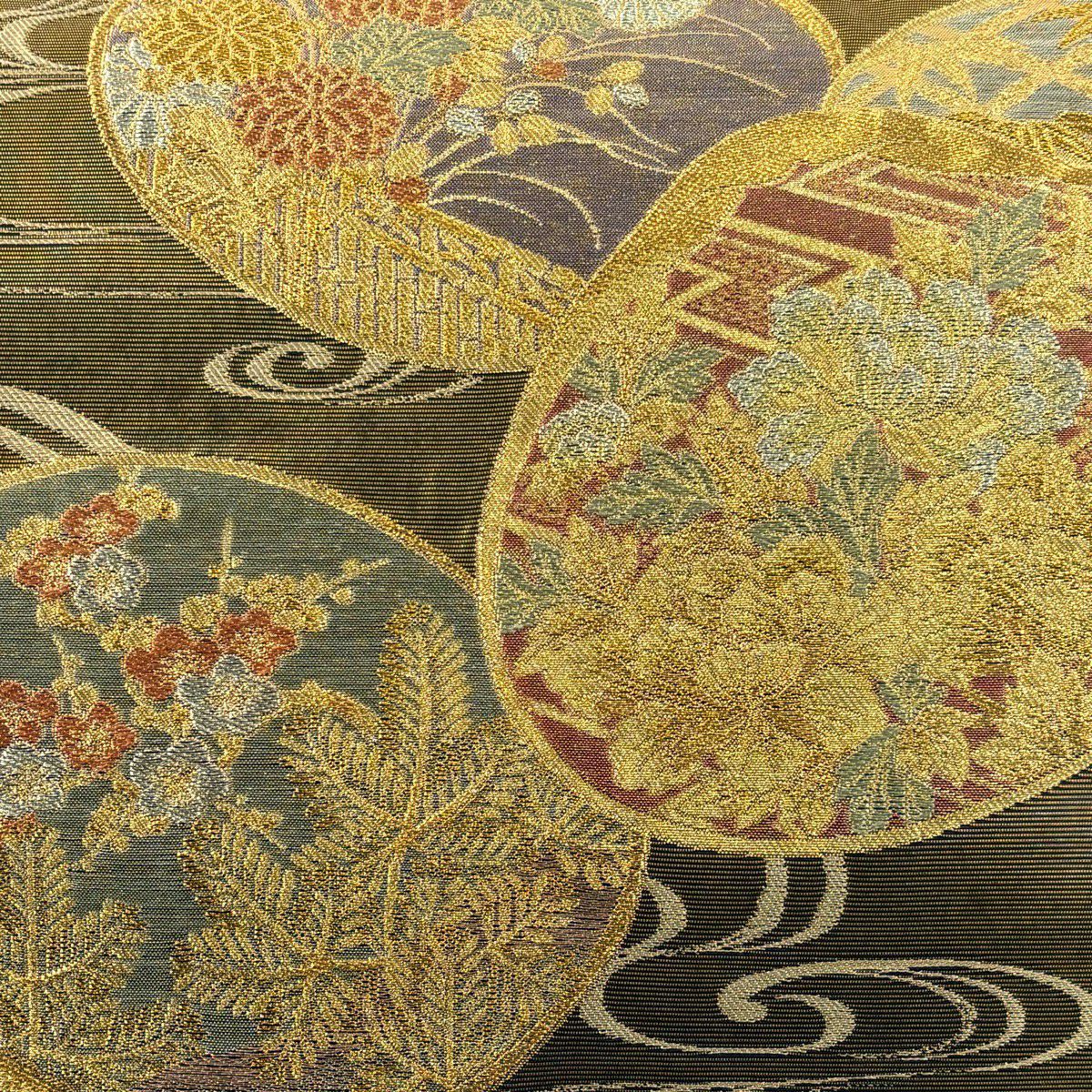 30%OFF 袋帯 秀品 華文 金糸 箔 金色 六通 正絹 K30