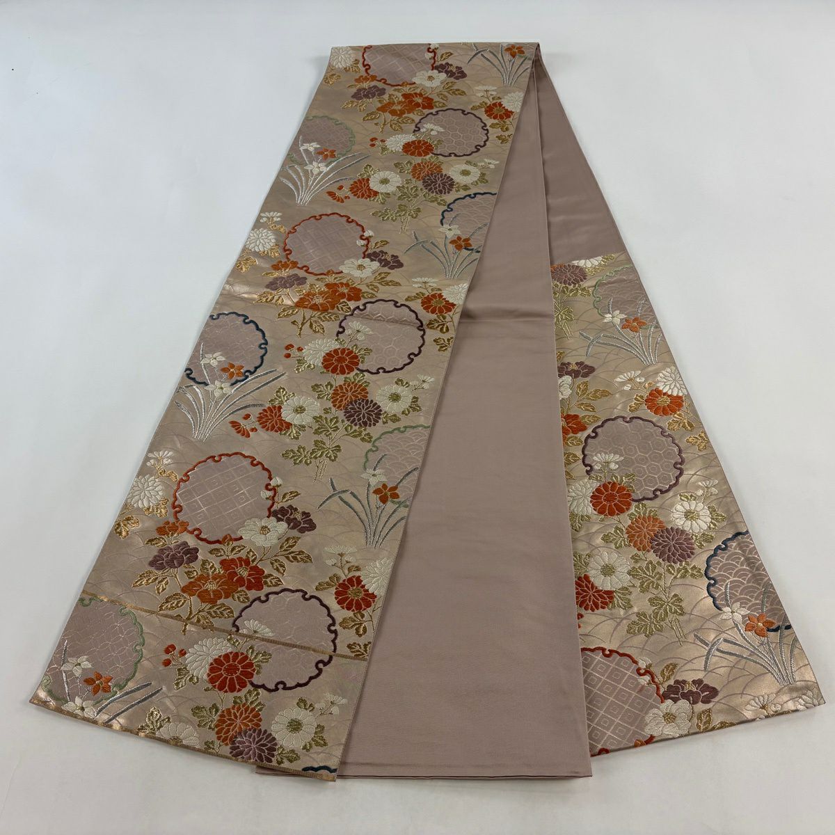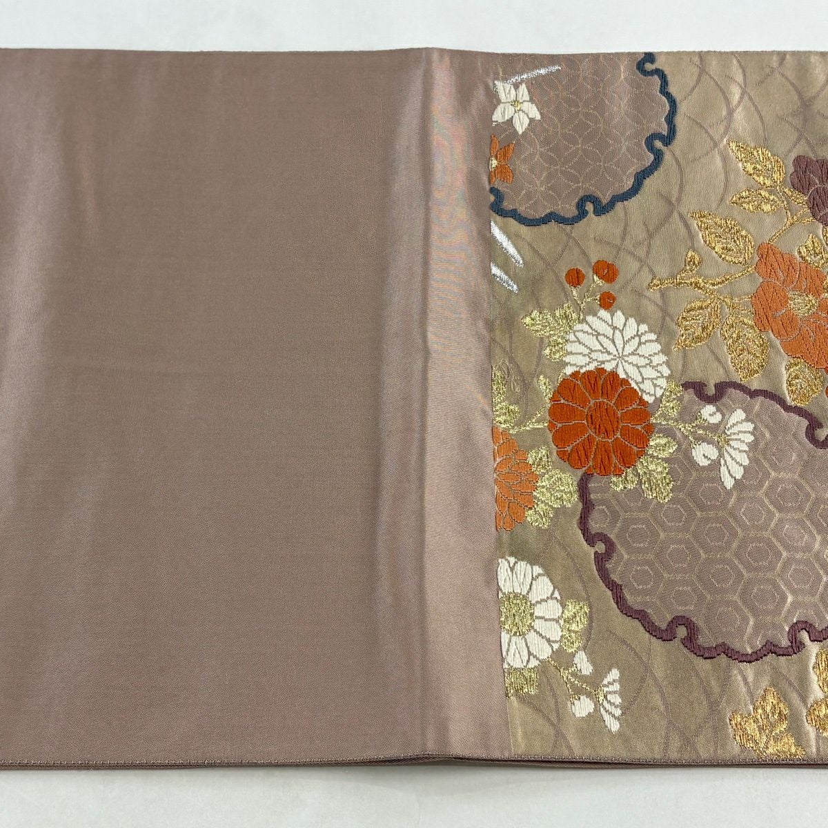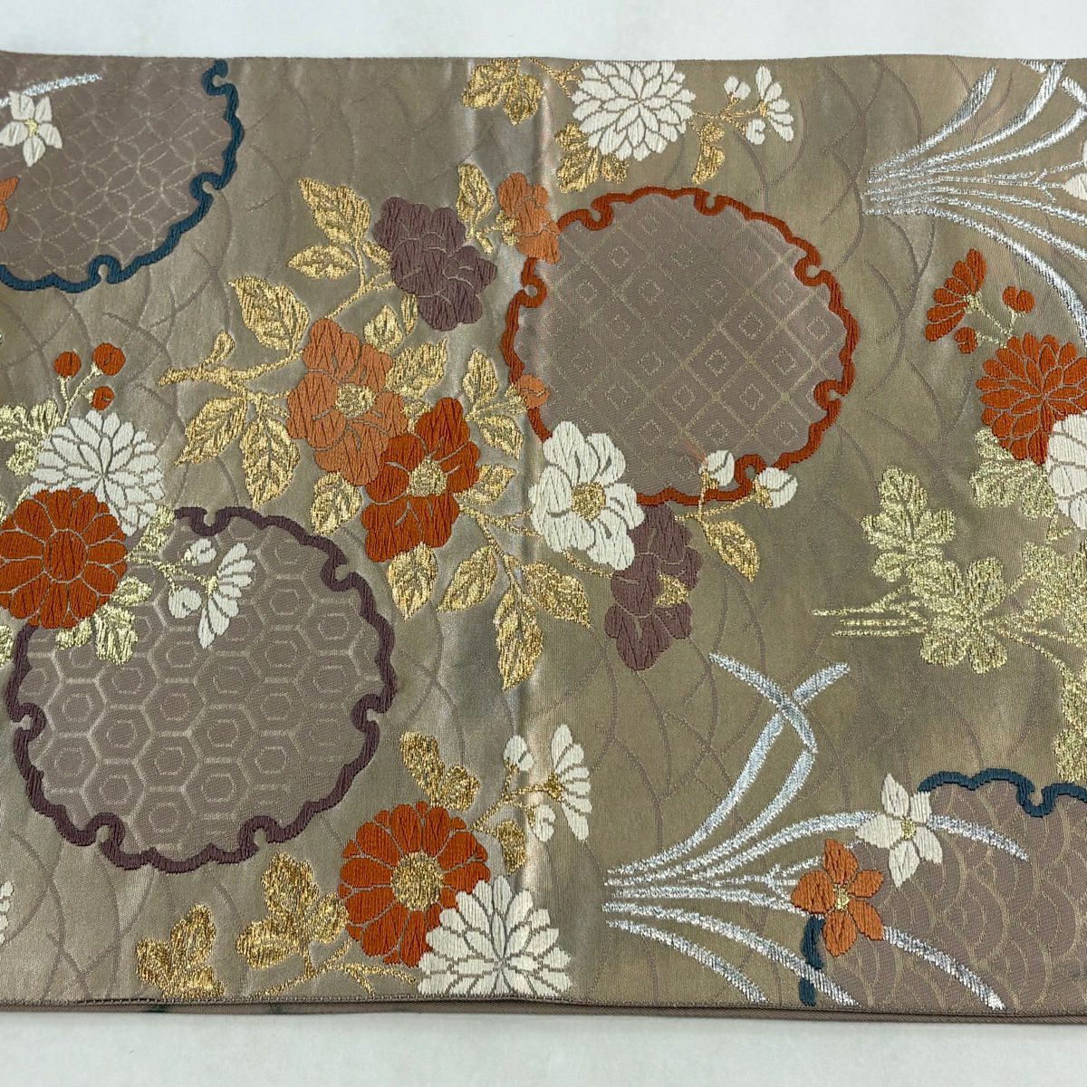 30%OFF 袋帯 秀品 鈴乃屋 楓 薄茶色 全通 正絹 K30