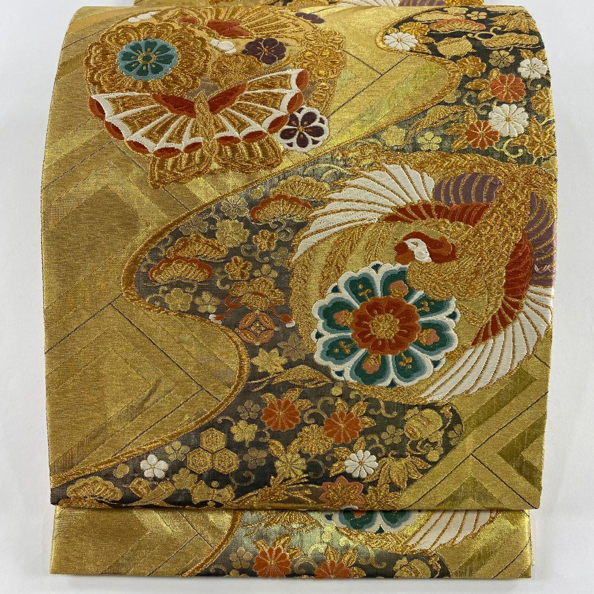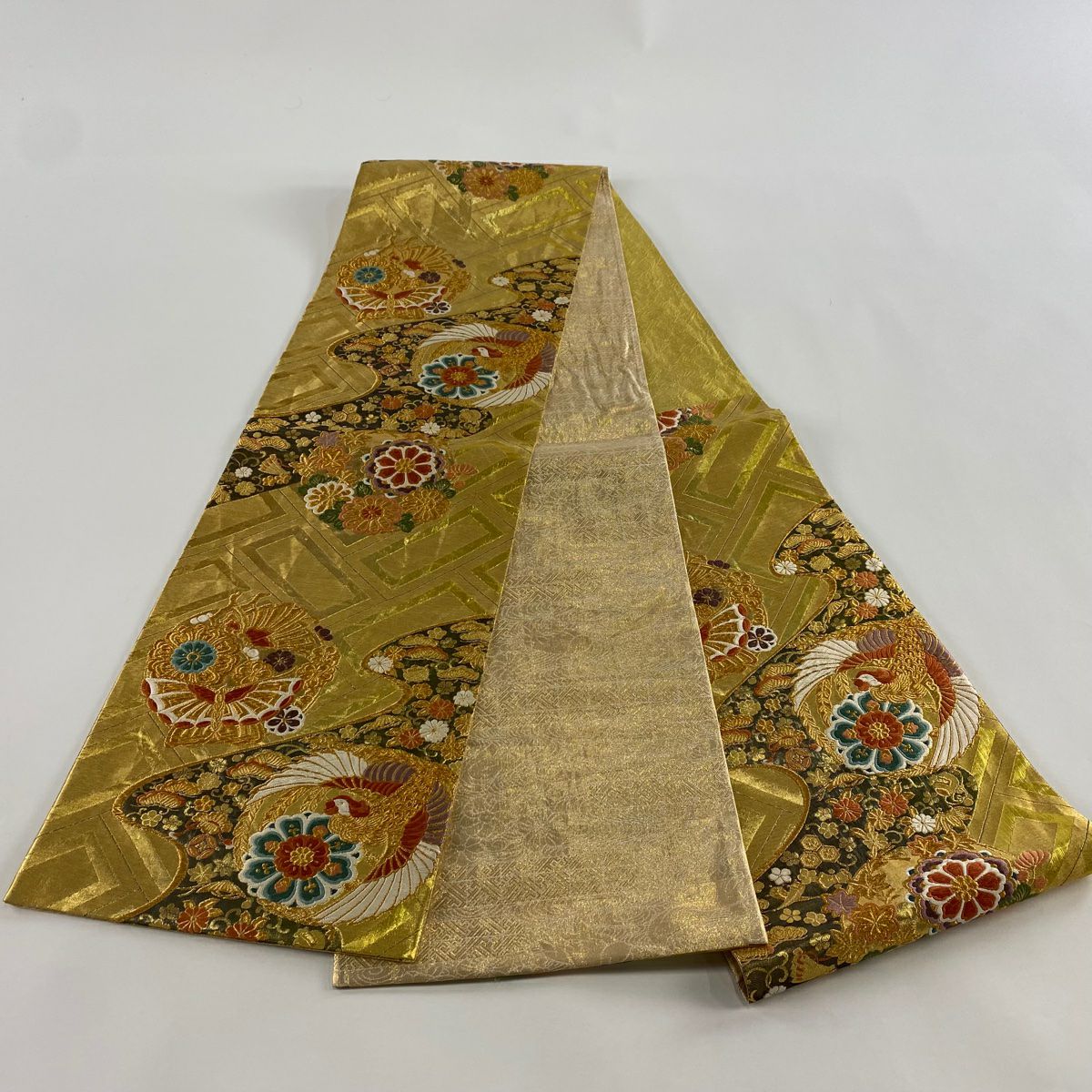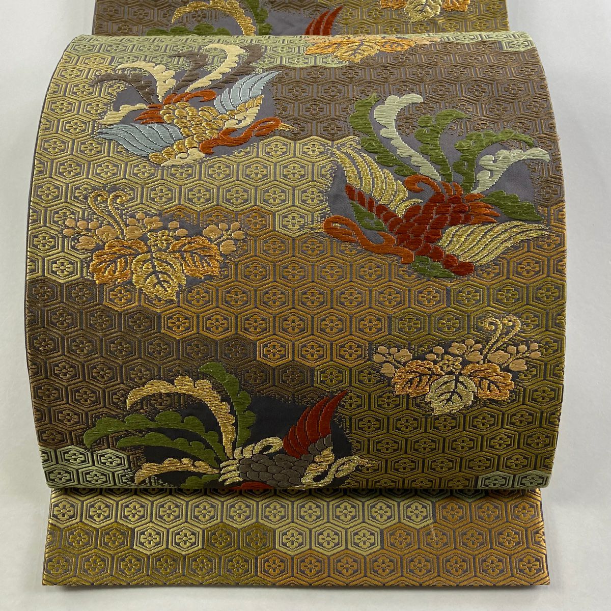 【在庫一掃】 袋帯 秀品 鳳凰 華文 唐織 箔 金色 六通 正絹