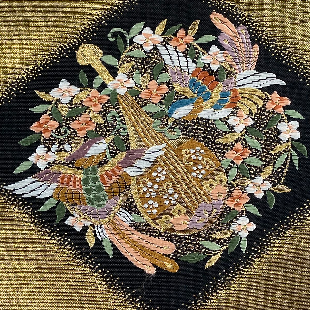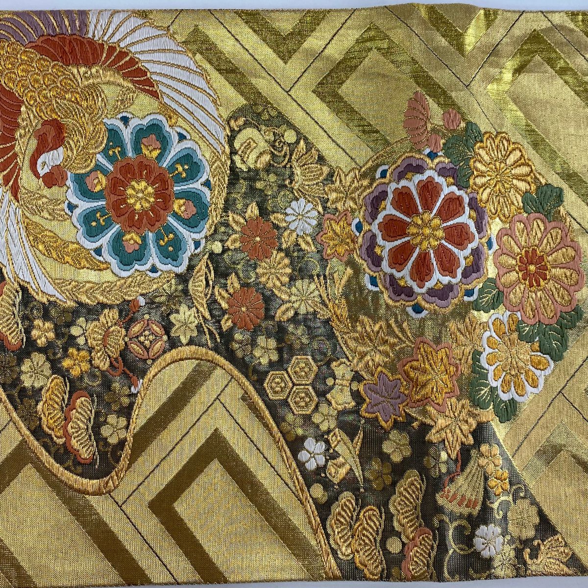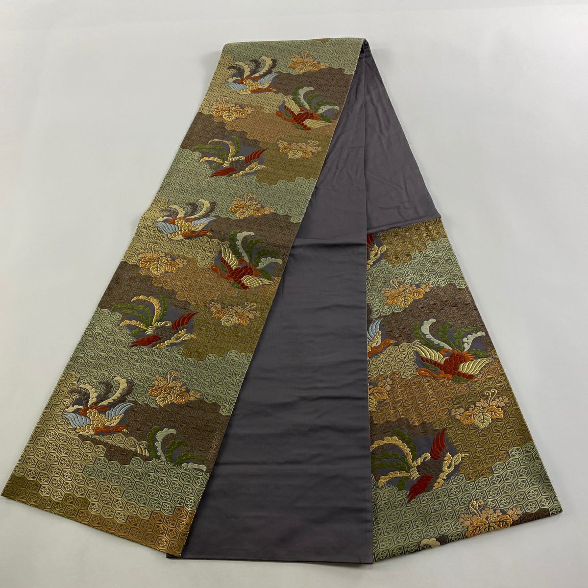 【在庫一掃】 袋帯 秀品 鳳凰 華文 唐織 箔 金色 六通 正絹