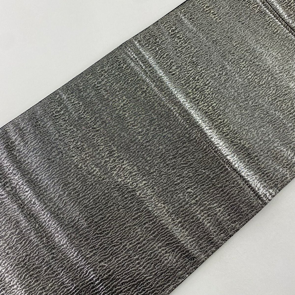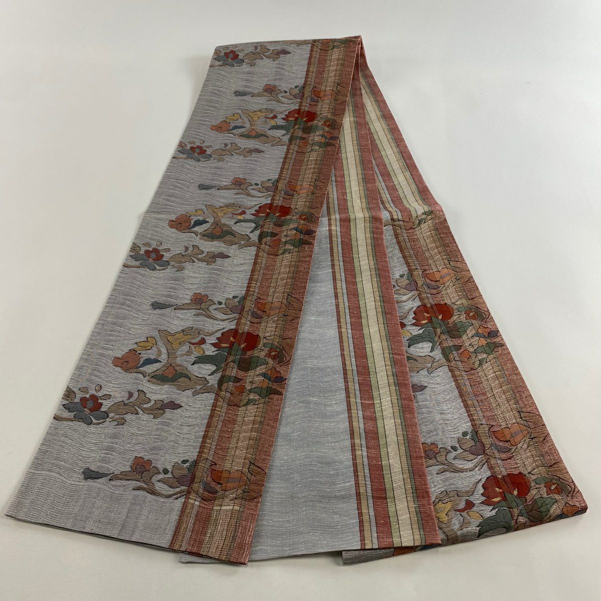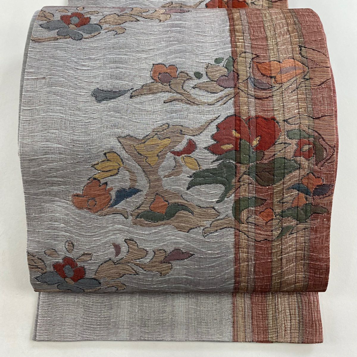 【在庫一掃】 【美品】 袋帯 秀品 草花 縞 箔 灰色 六通 正絹
