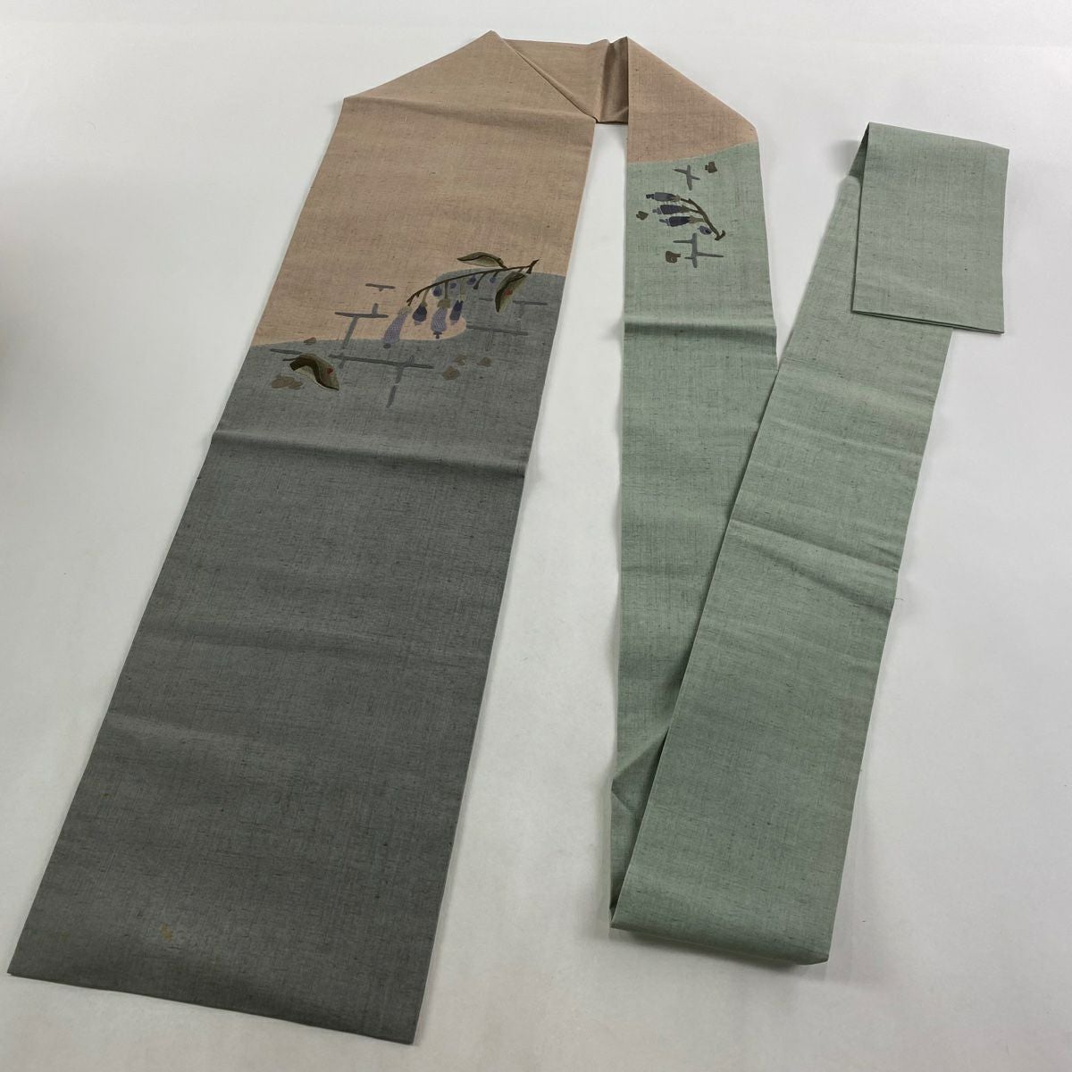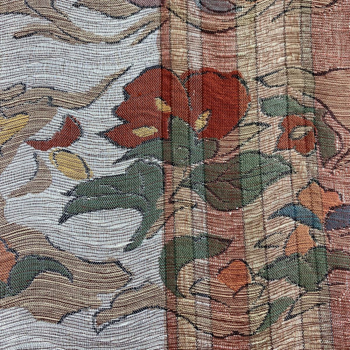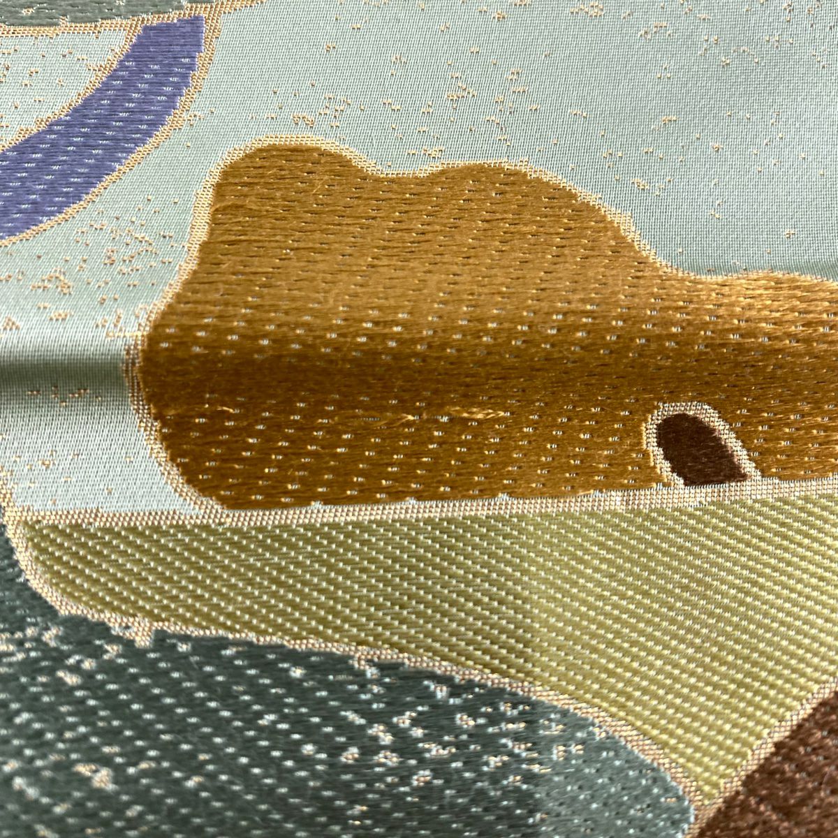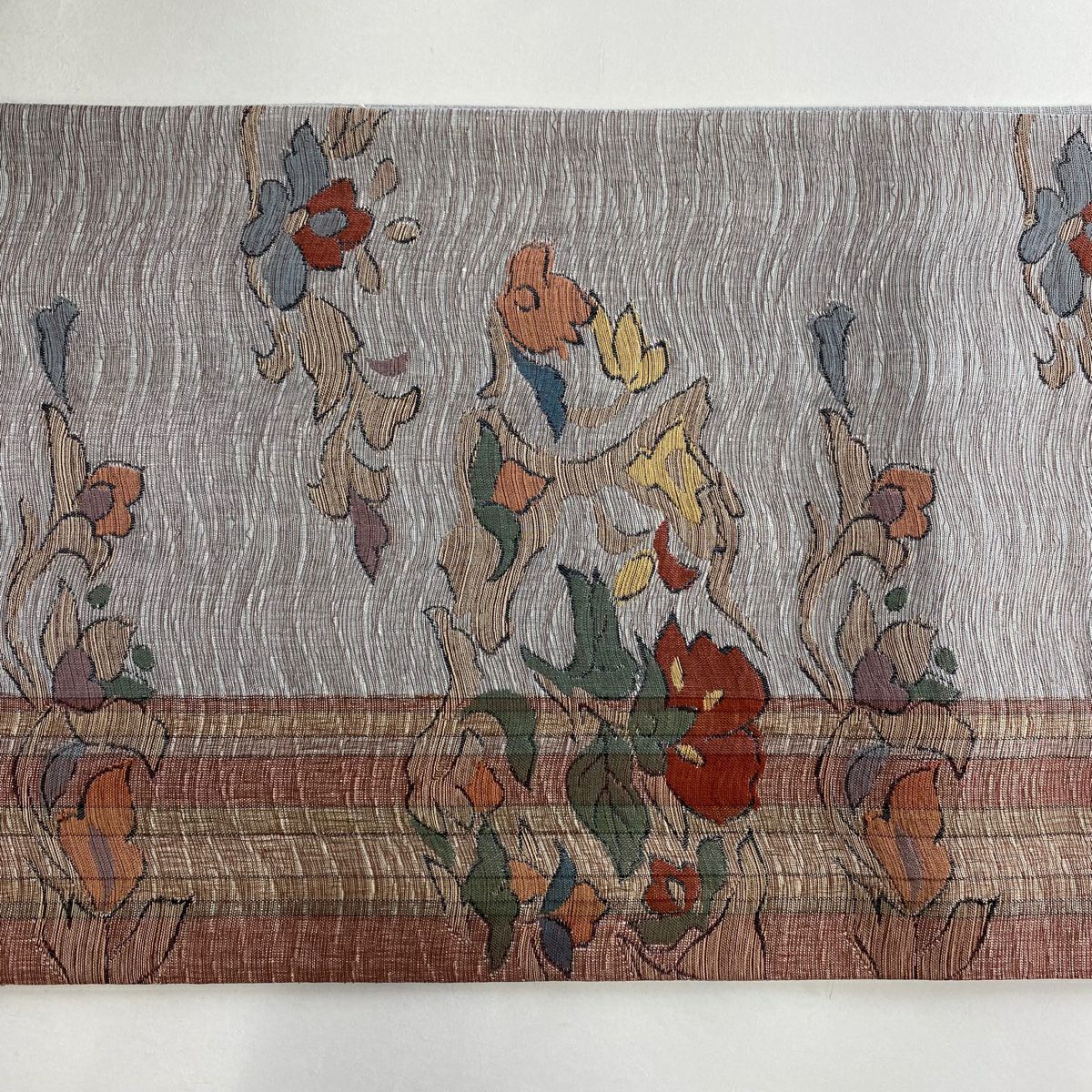 【在庫一掃】 袋帯 秀品 草花 流水 唐織 箔 灰緑 六通 正絹