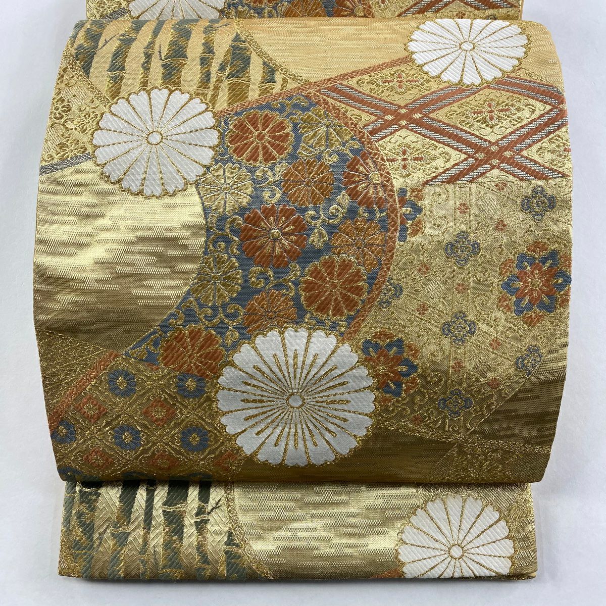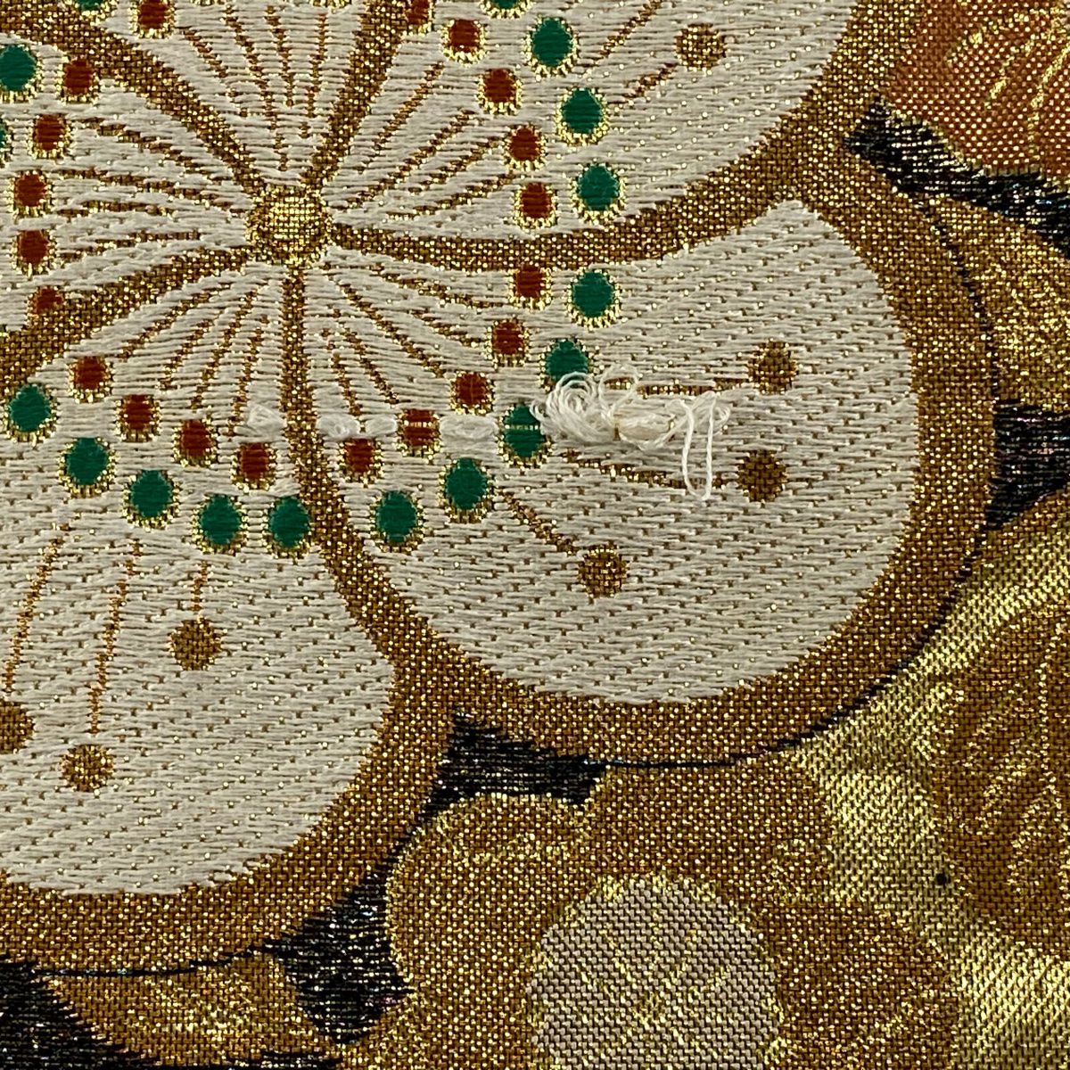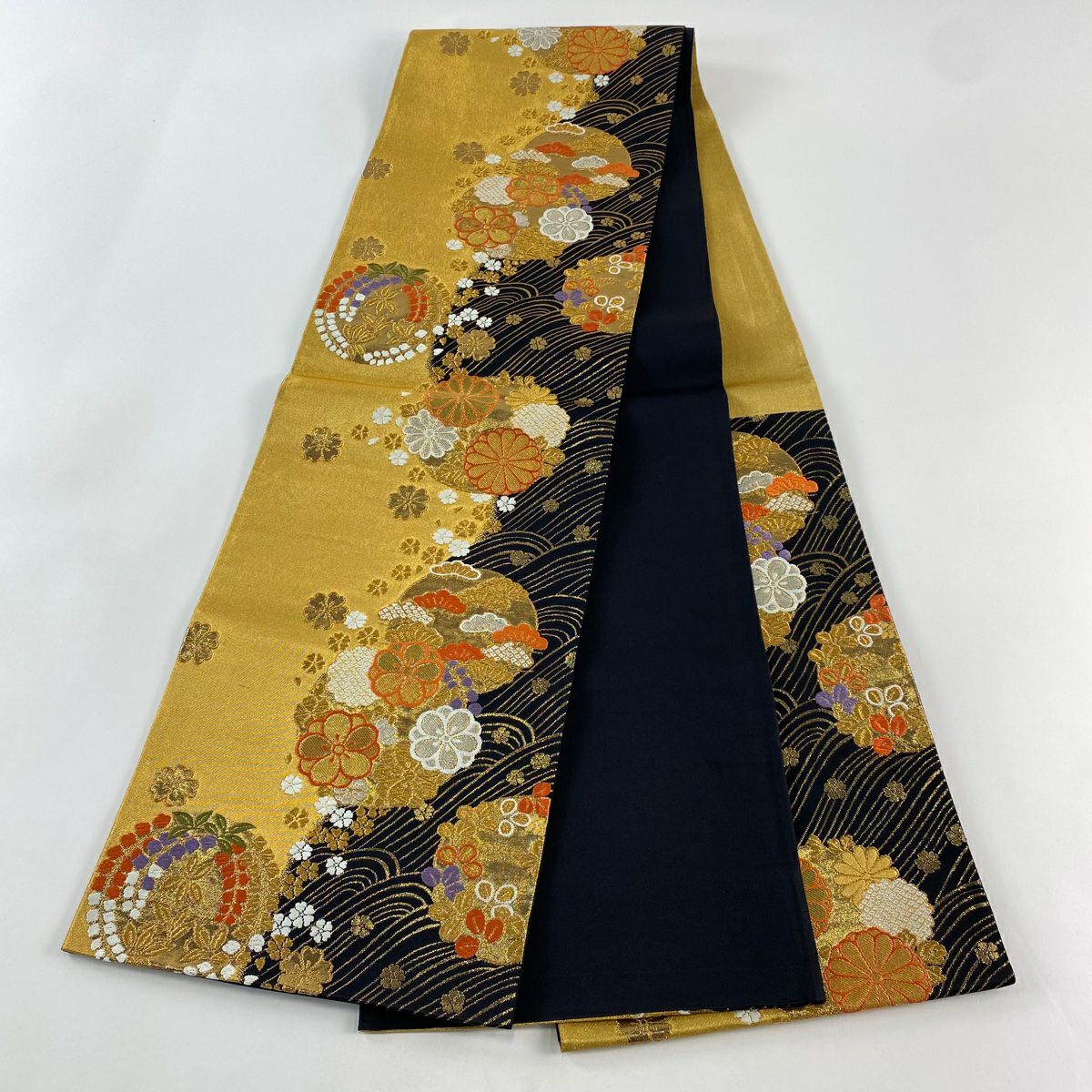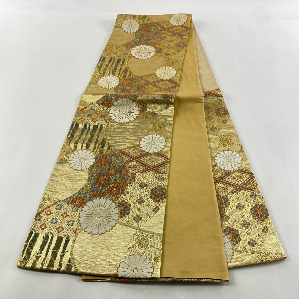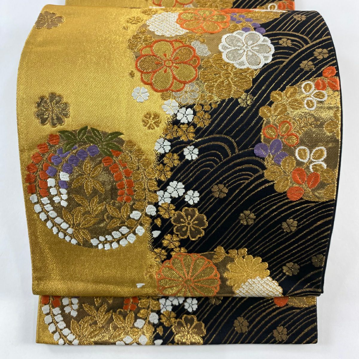 【在庫一掃】 袋帯 秀品 花丸文 波 金銀糸 箔 金色 六通 正絹