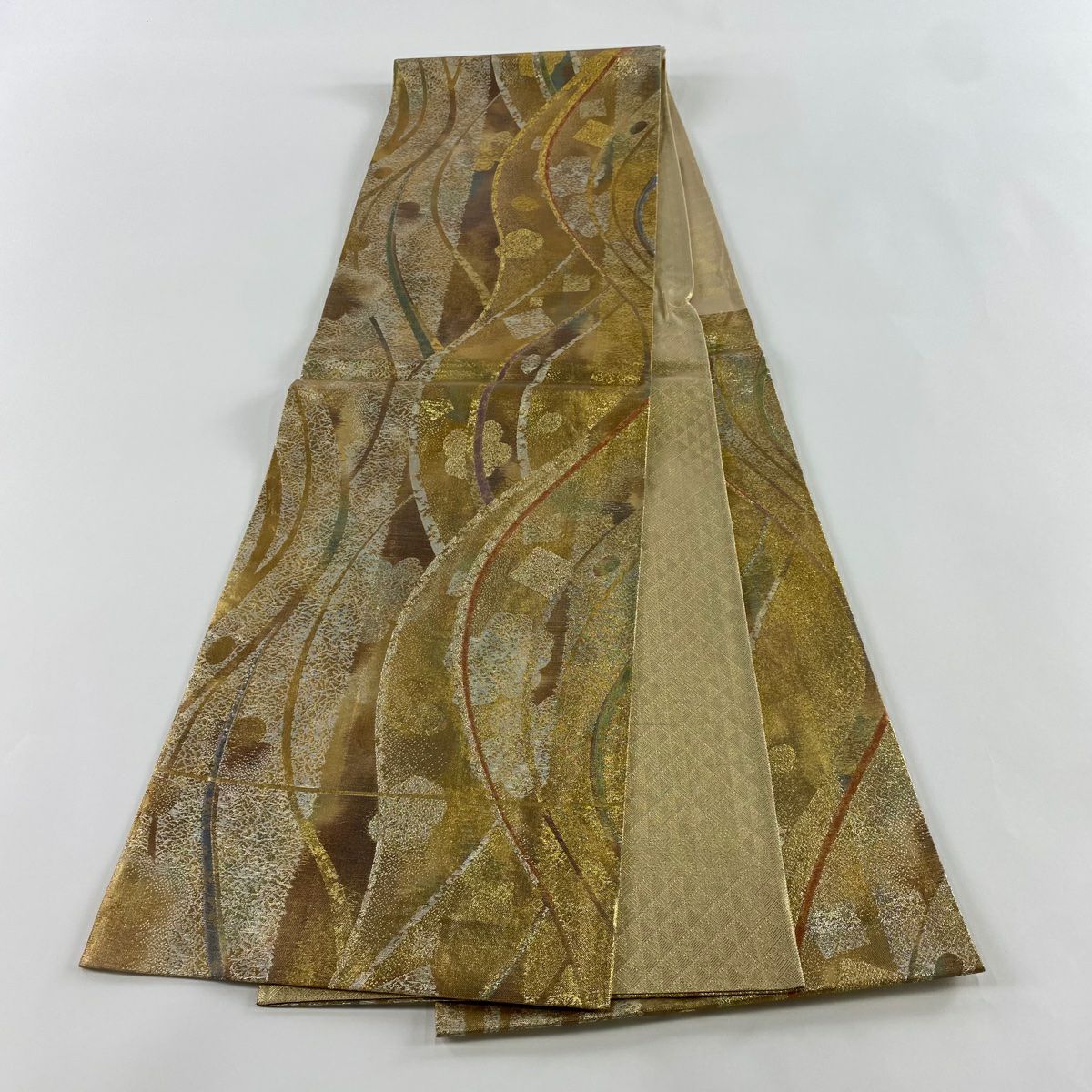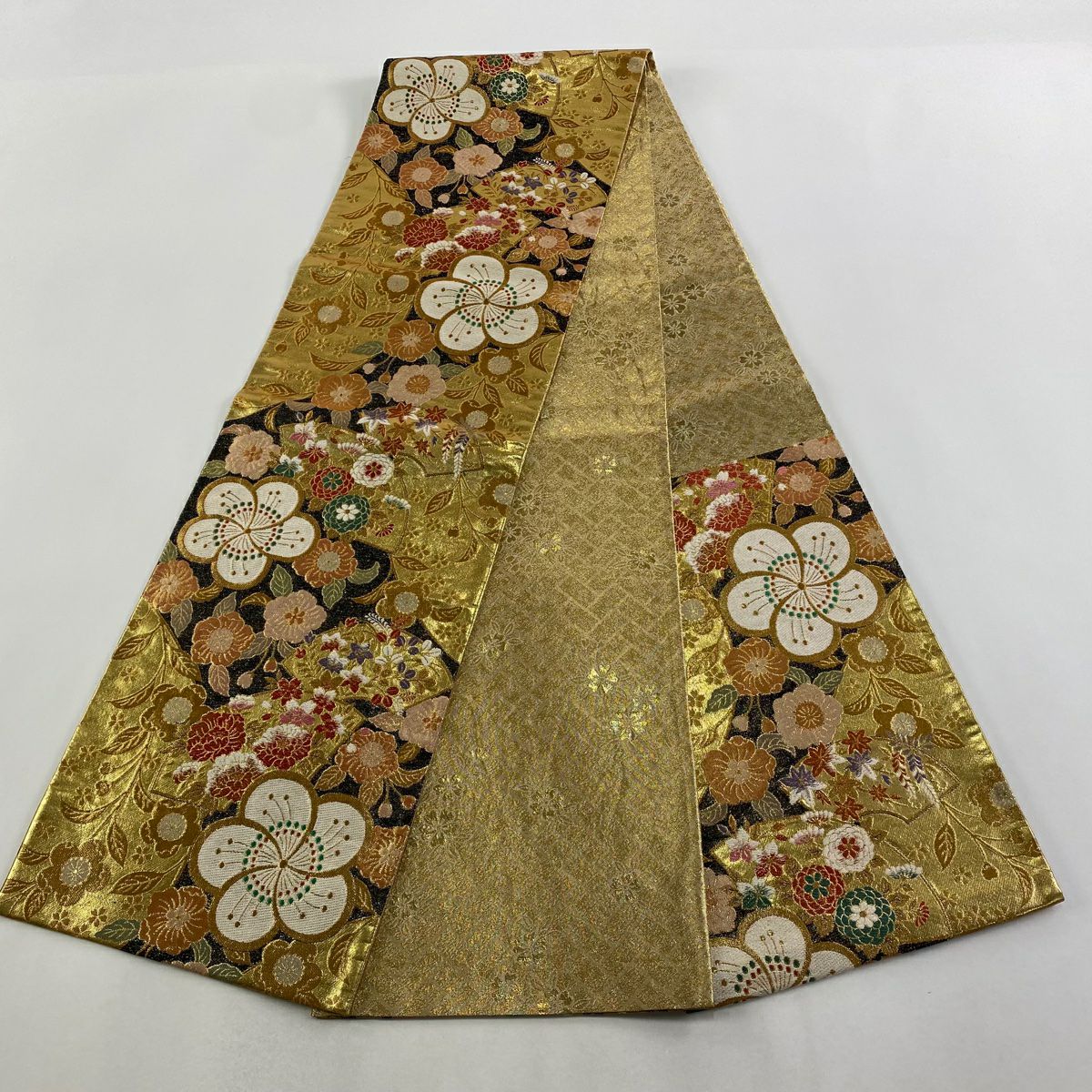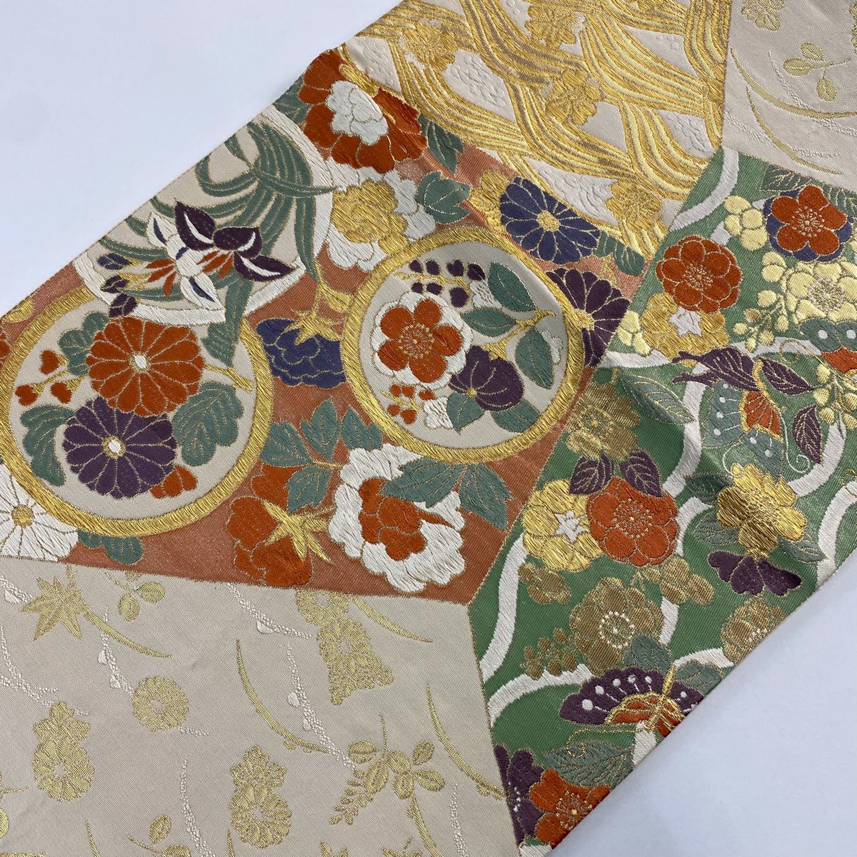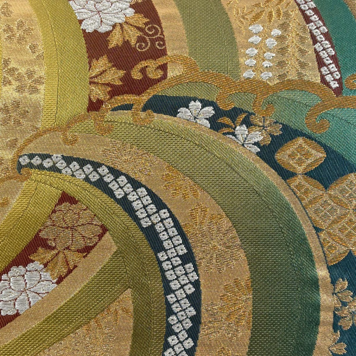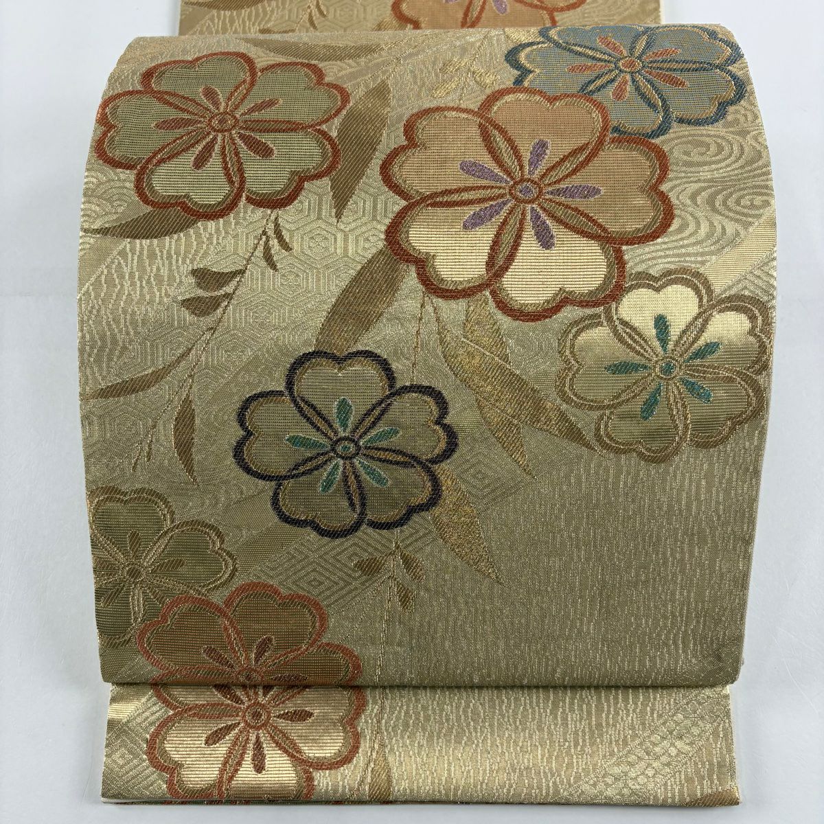 【在庫一掃】 袋帯 秀品 花丸文 波 金銀糸 箔 金色 六通 正絹