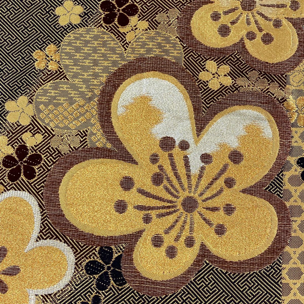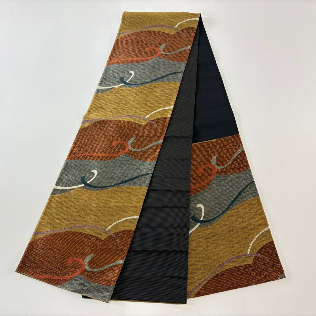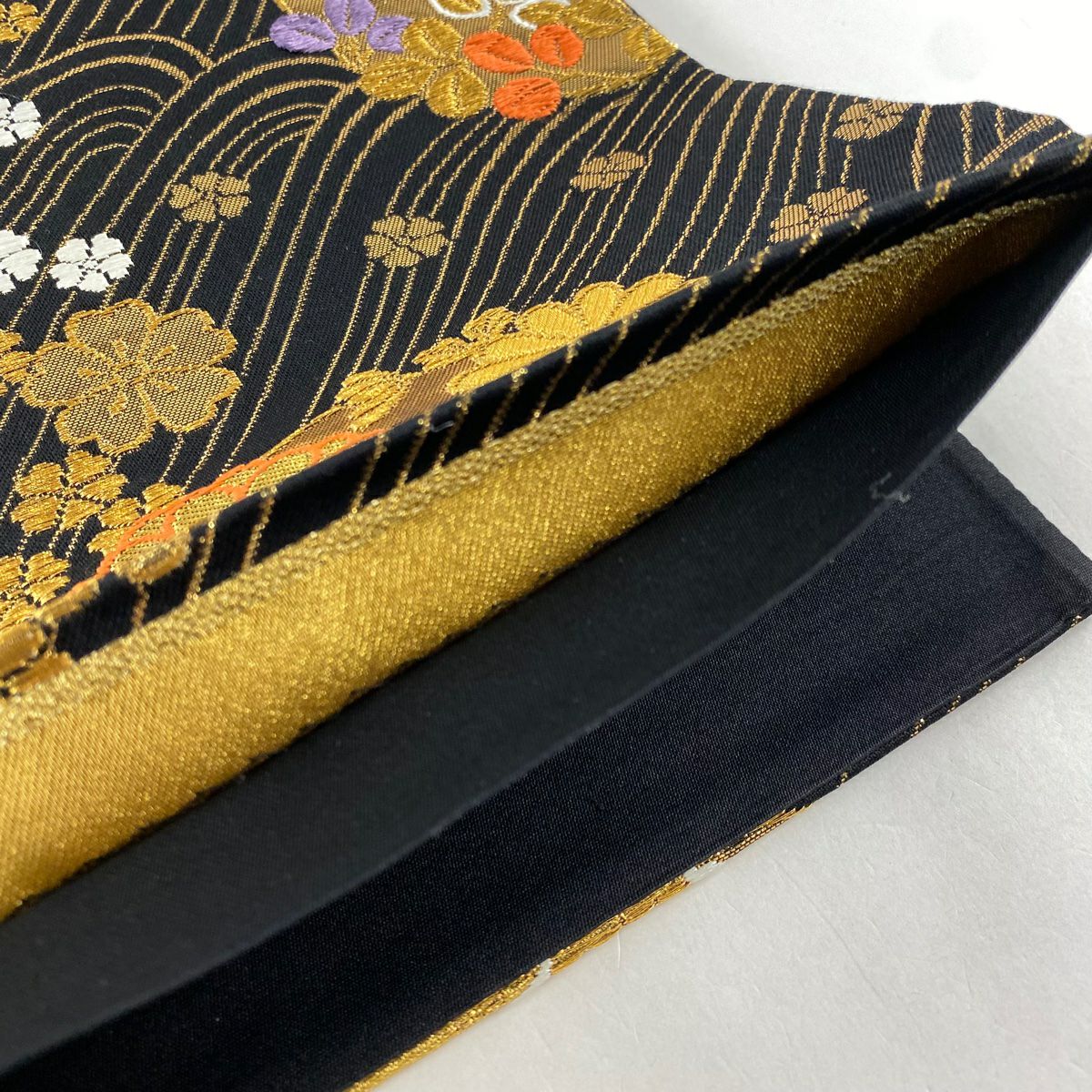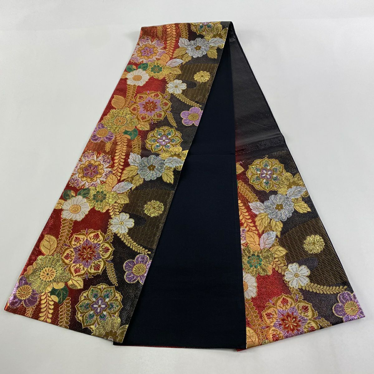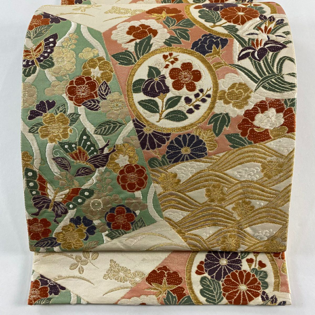 【在庫一掃】 袋帯 秀品 花丸文 波 金銀糸 箔 金色 六通 正絹