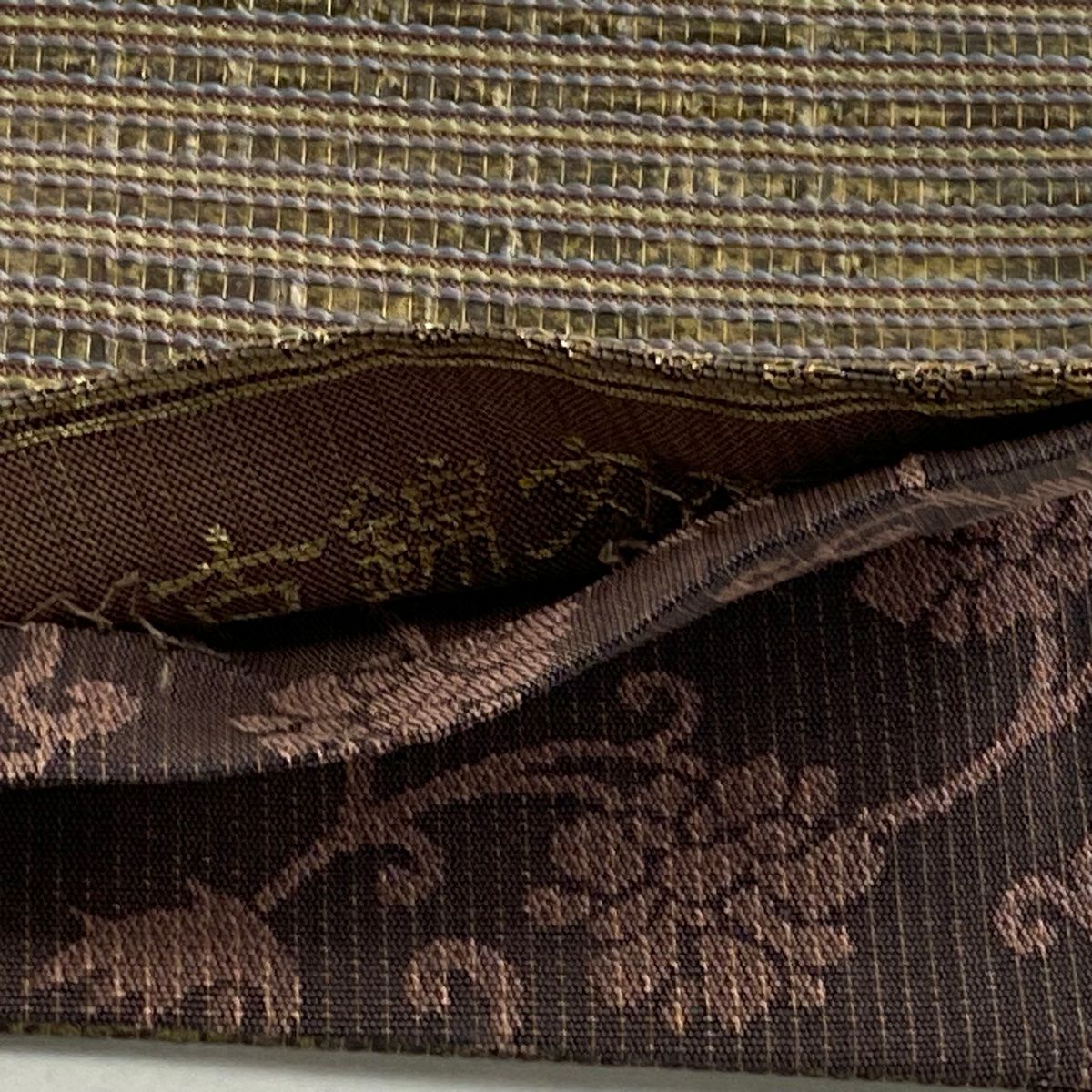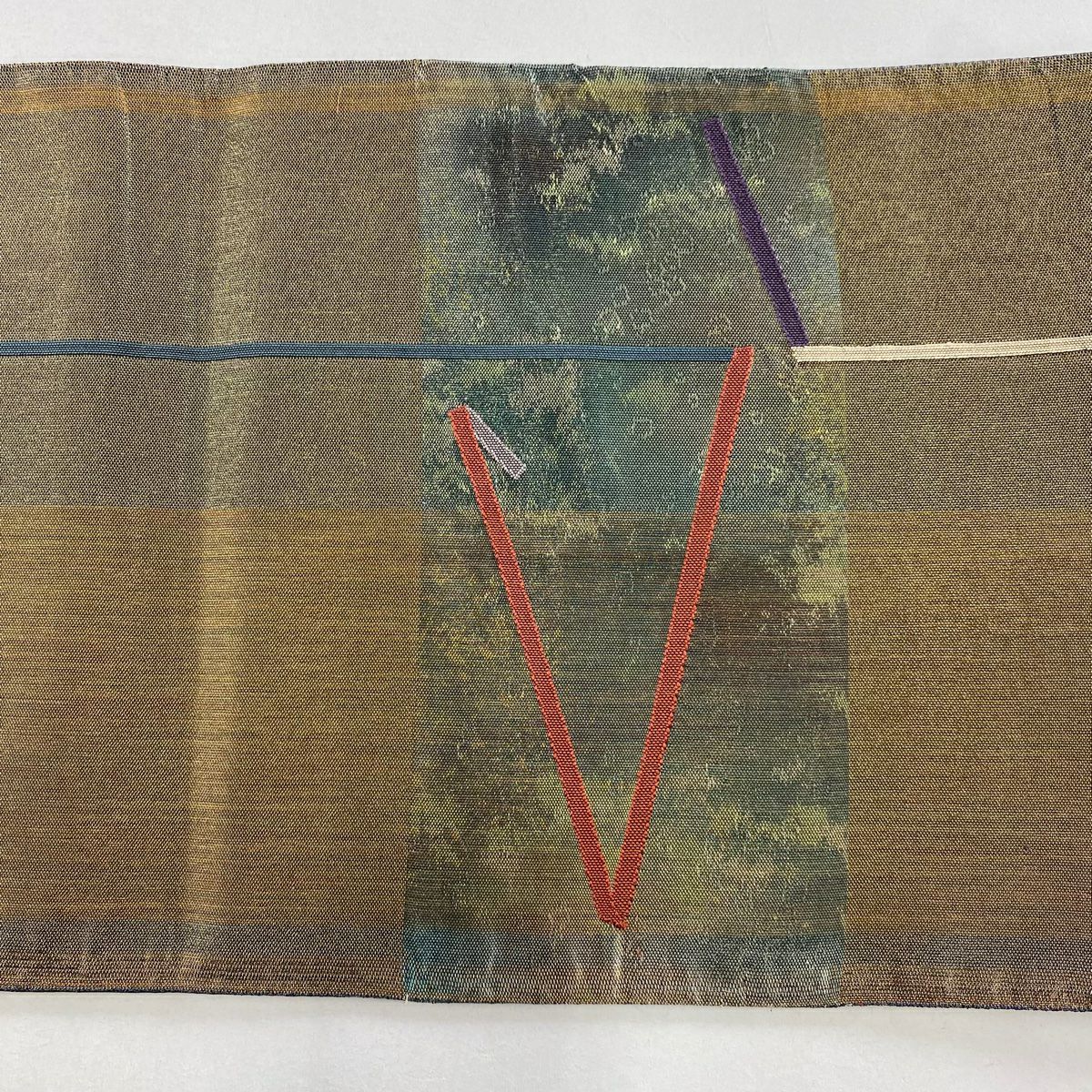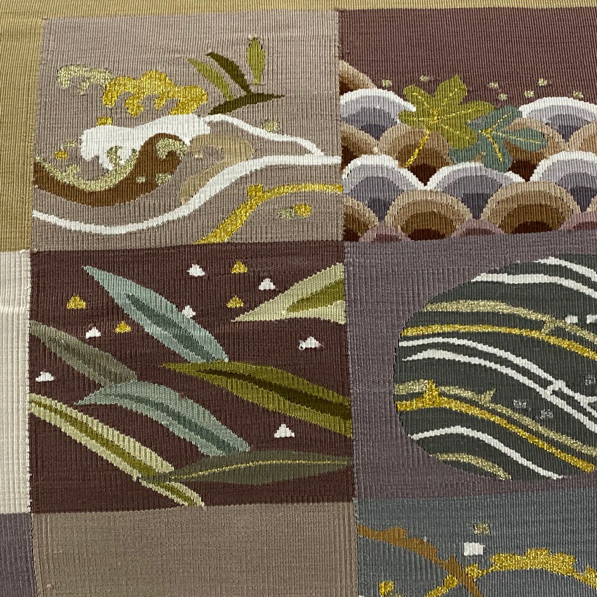 【在庫一掃】 【美品】 袋帯 秀品 幾何学 金糸 茶色 六通 正絹