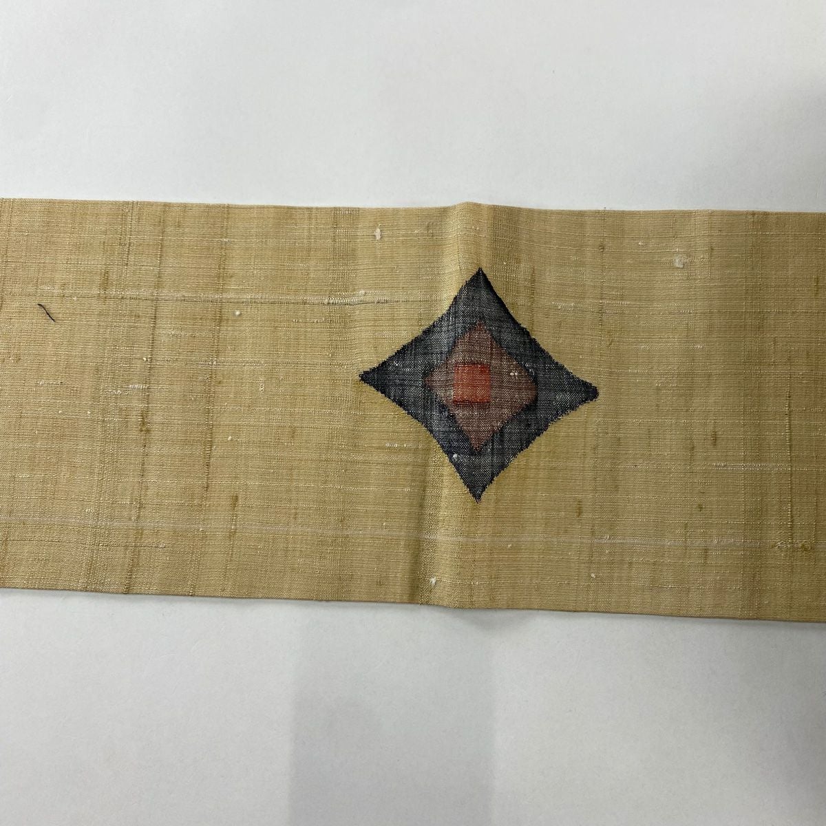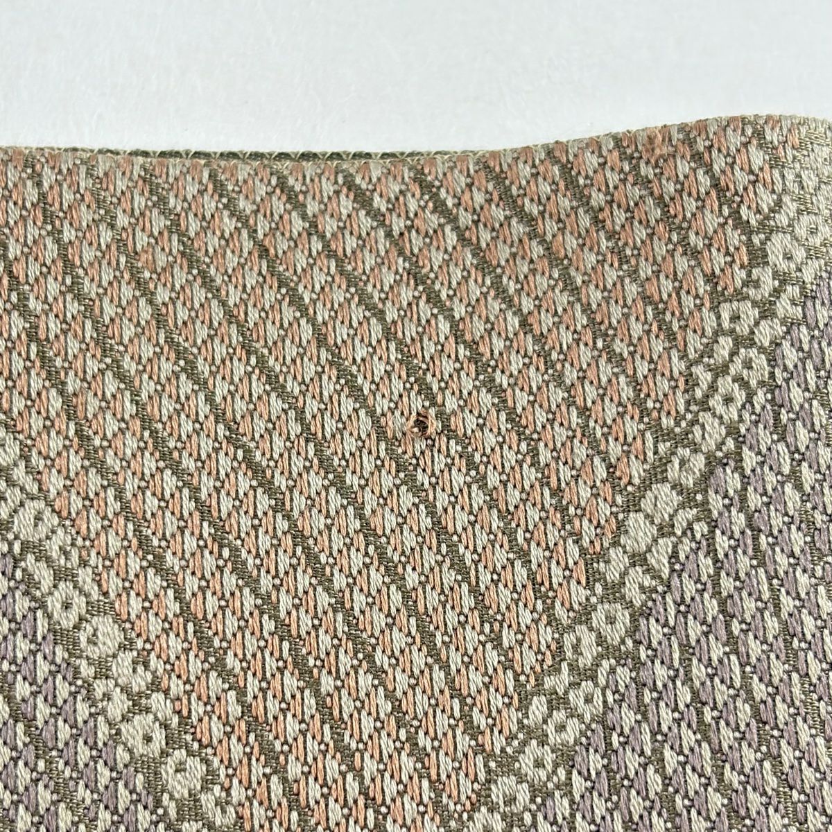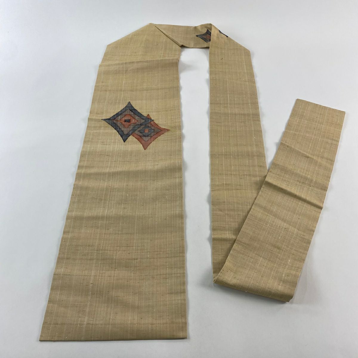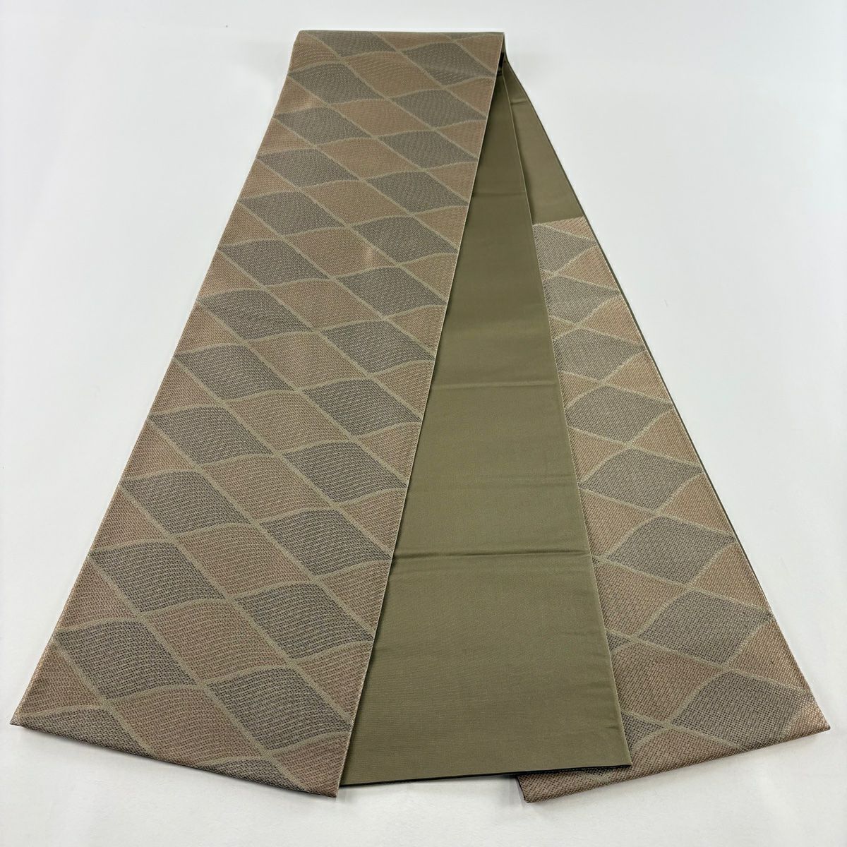 【在庫一掃】 名古屋帯 秀品 紬地 幾何学模様 菱 薄茶色 正絹