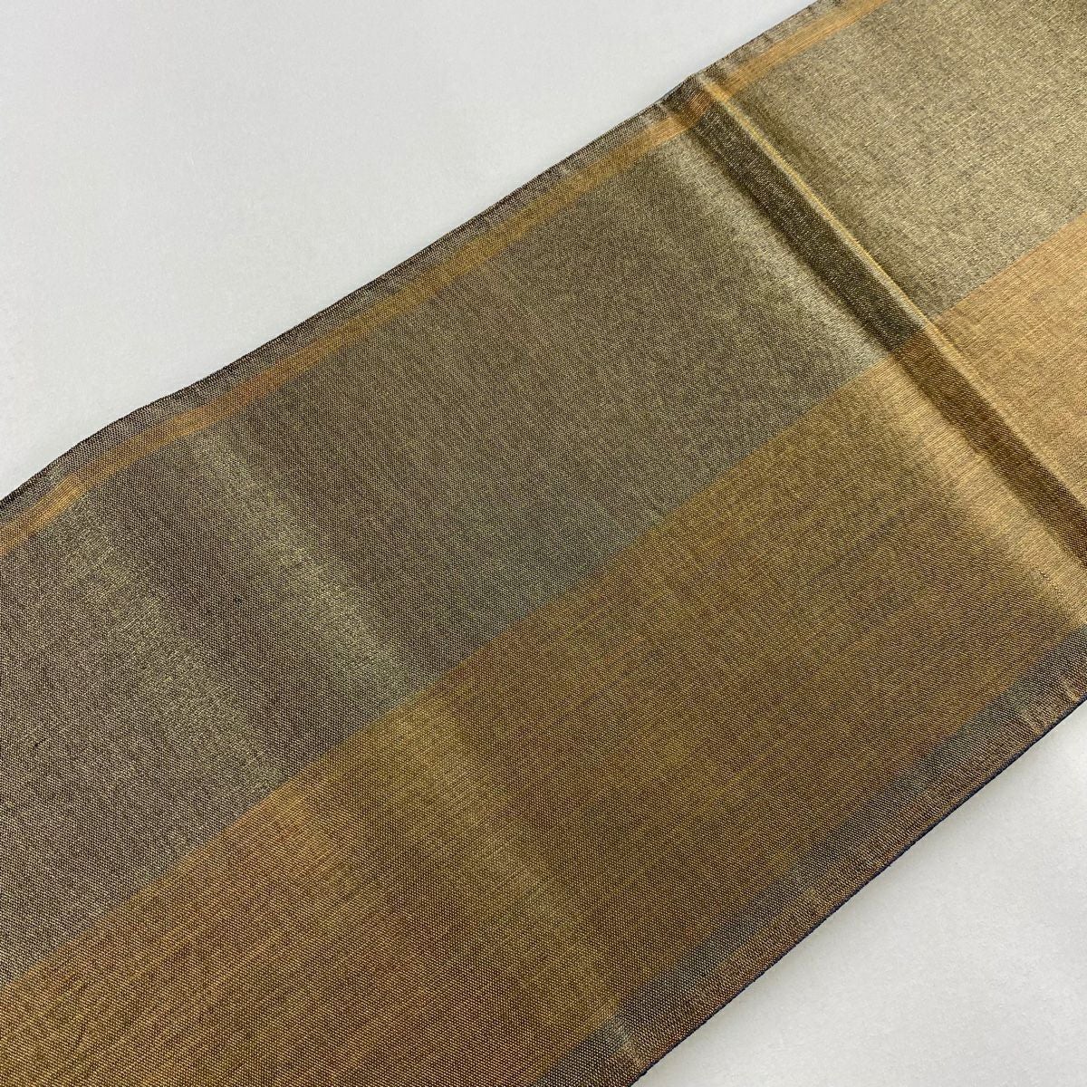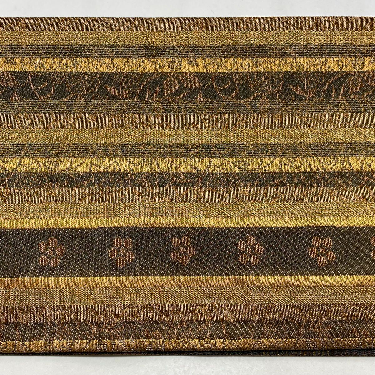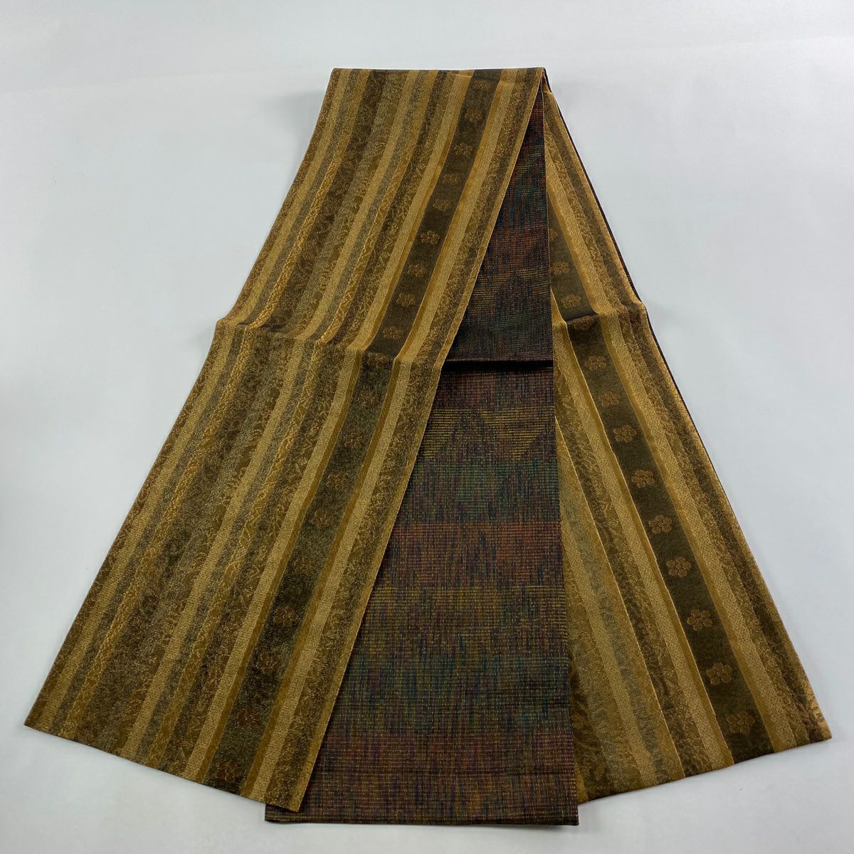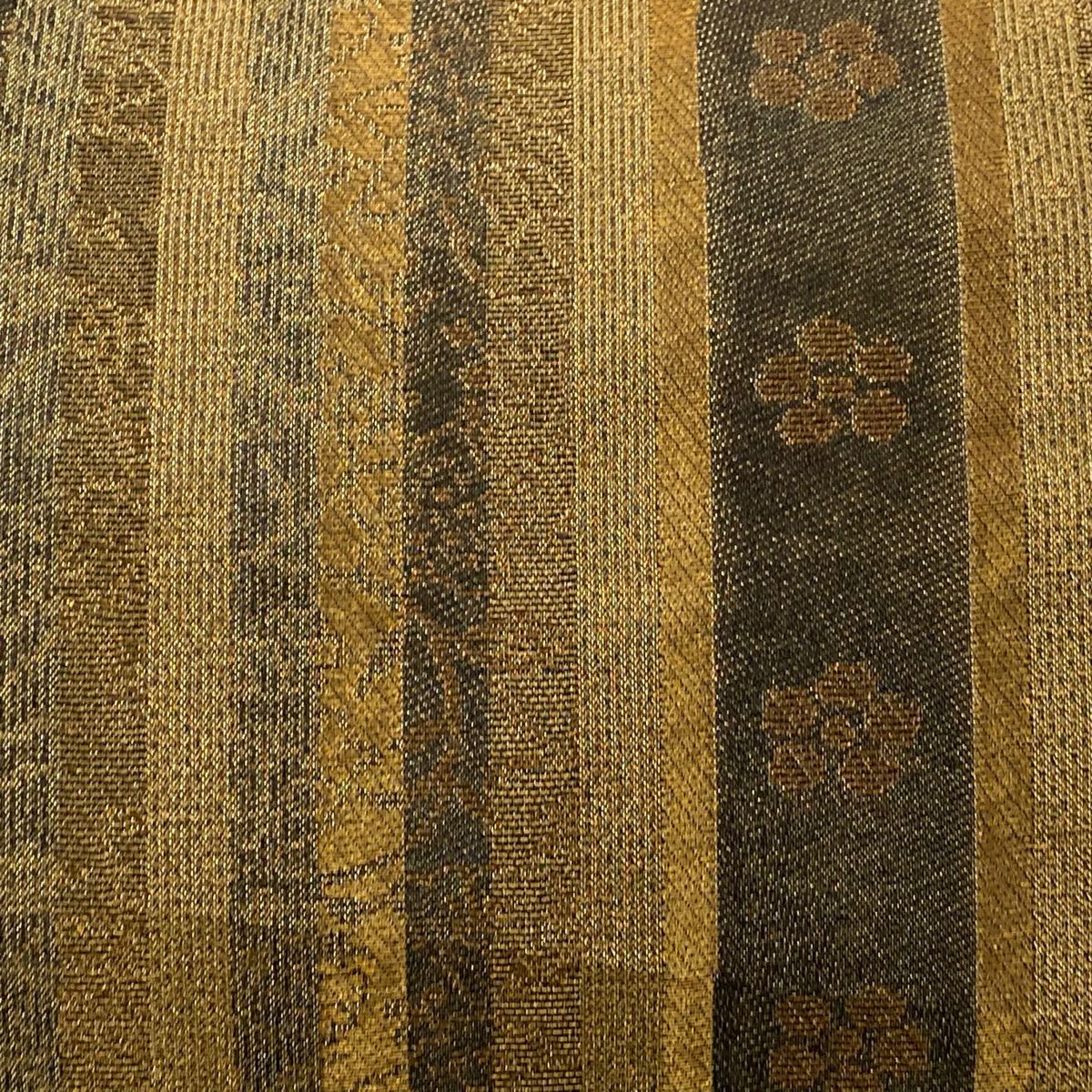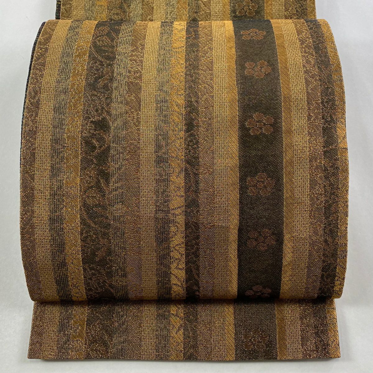 【在庫一掃】 袋帯 秀品 よろけ縞 花 金彩 箔 金色 六通 正絹