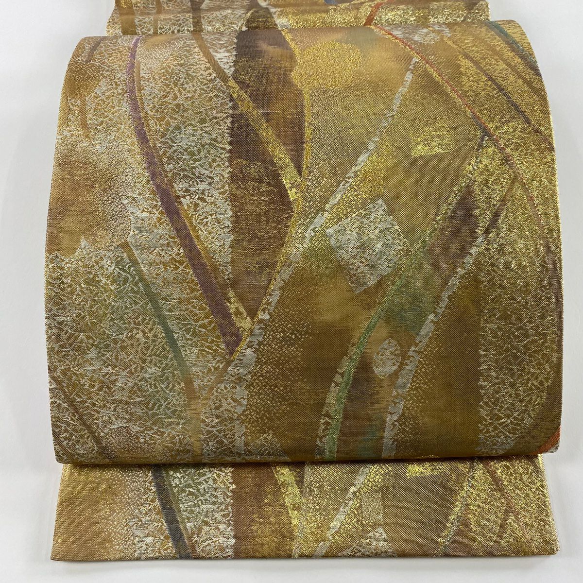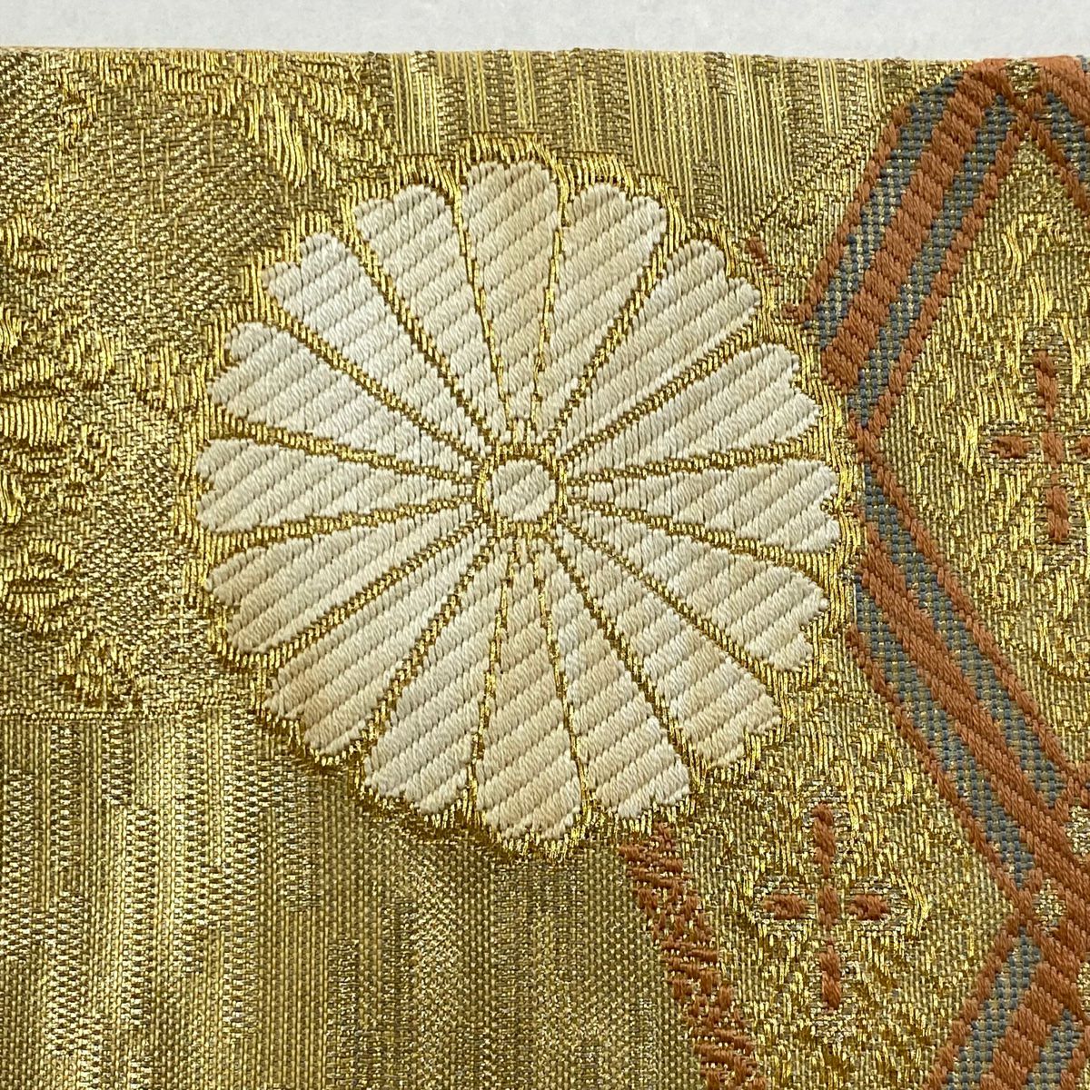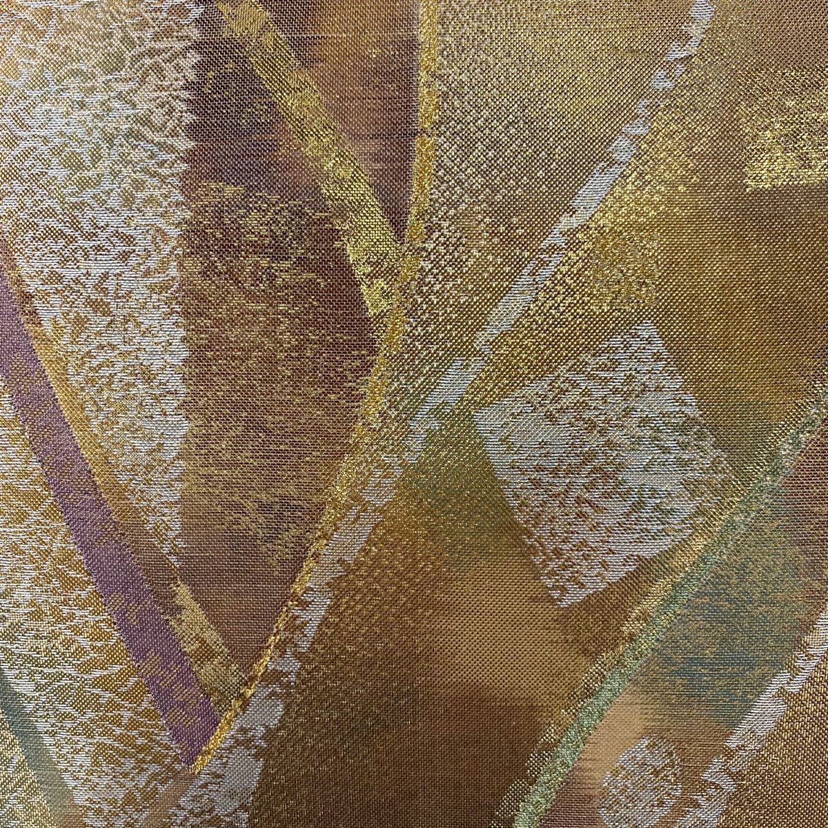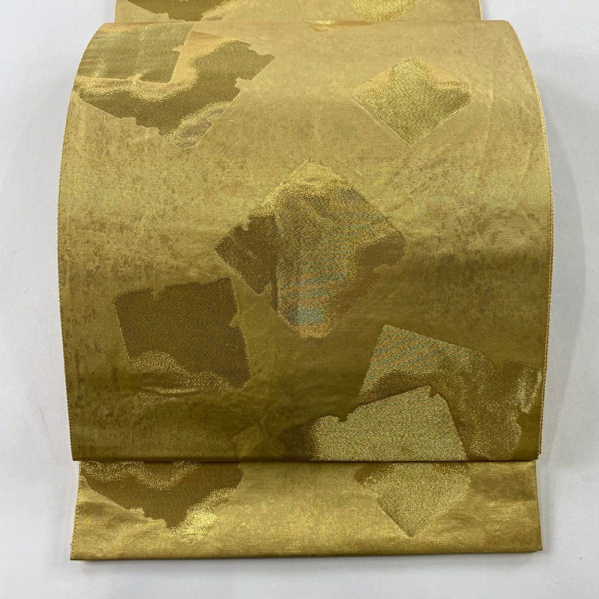 【在庫一掃】 袋帯 秀品 幾何学 金銀糸 箔 金色 お太鼓柄 正絹
