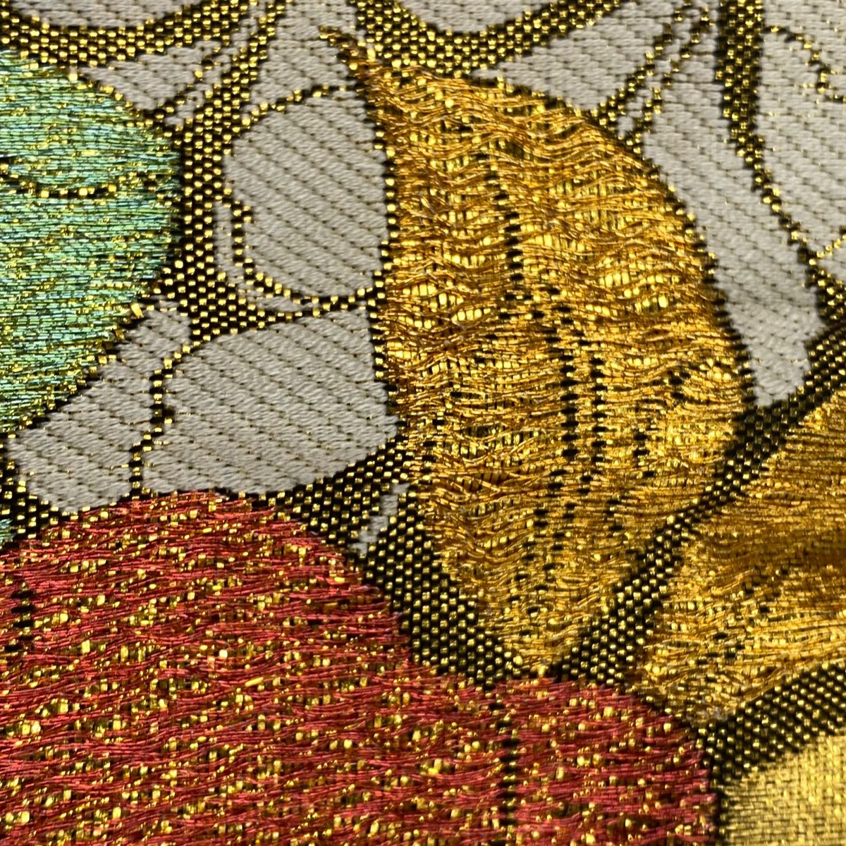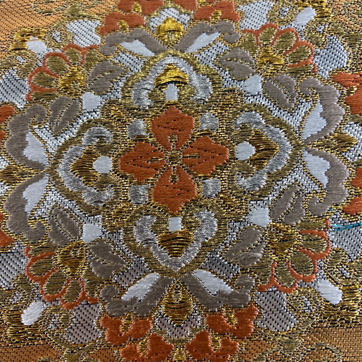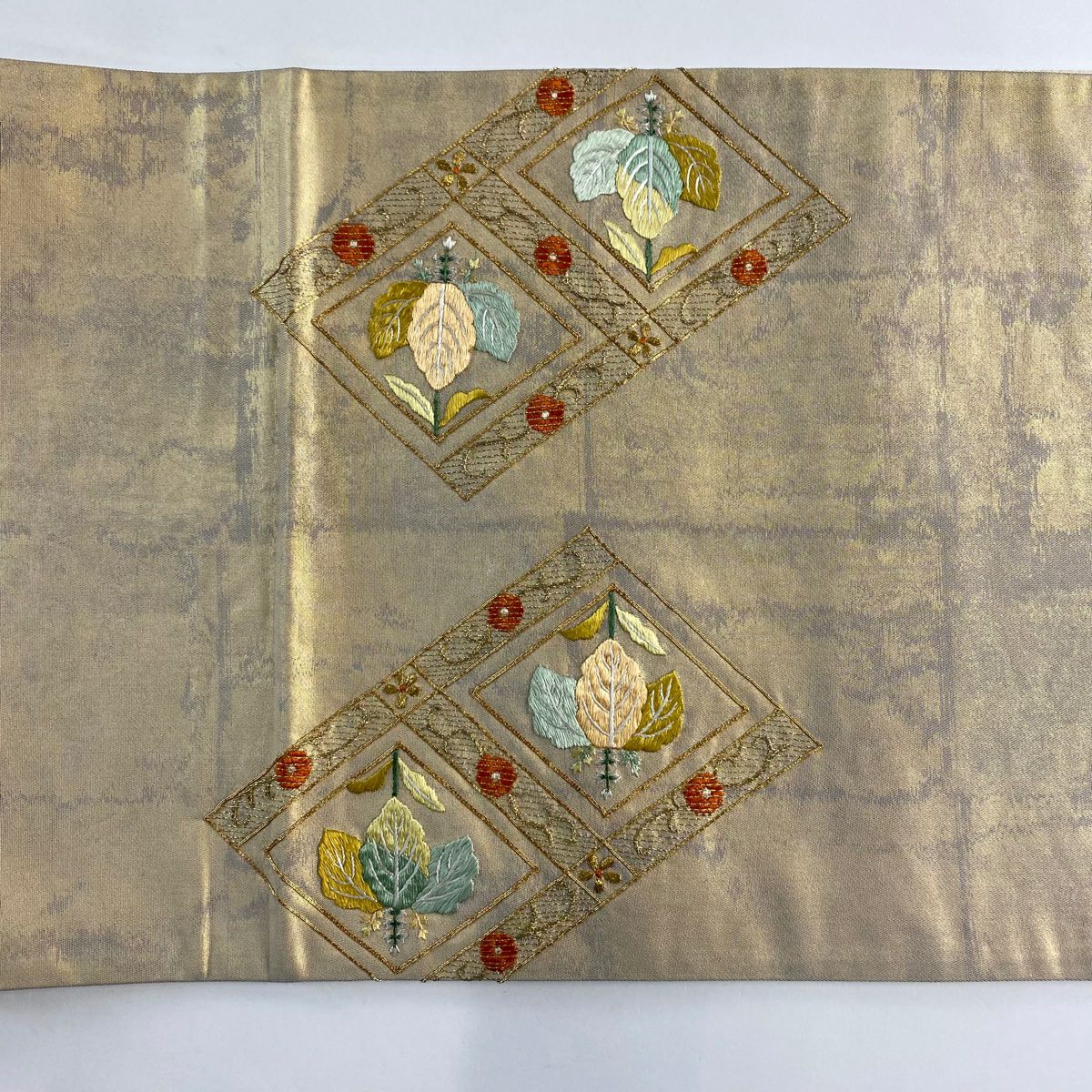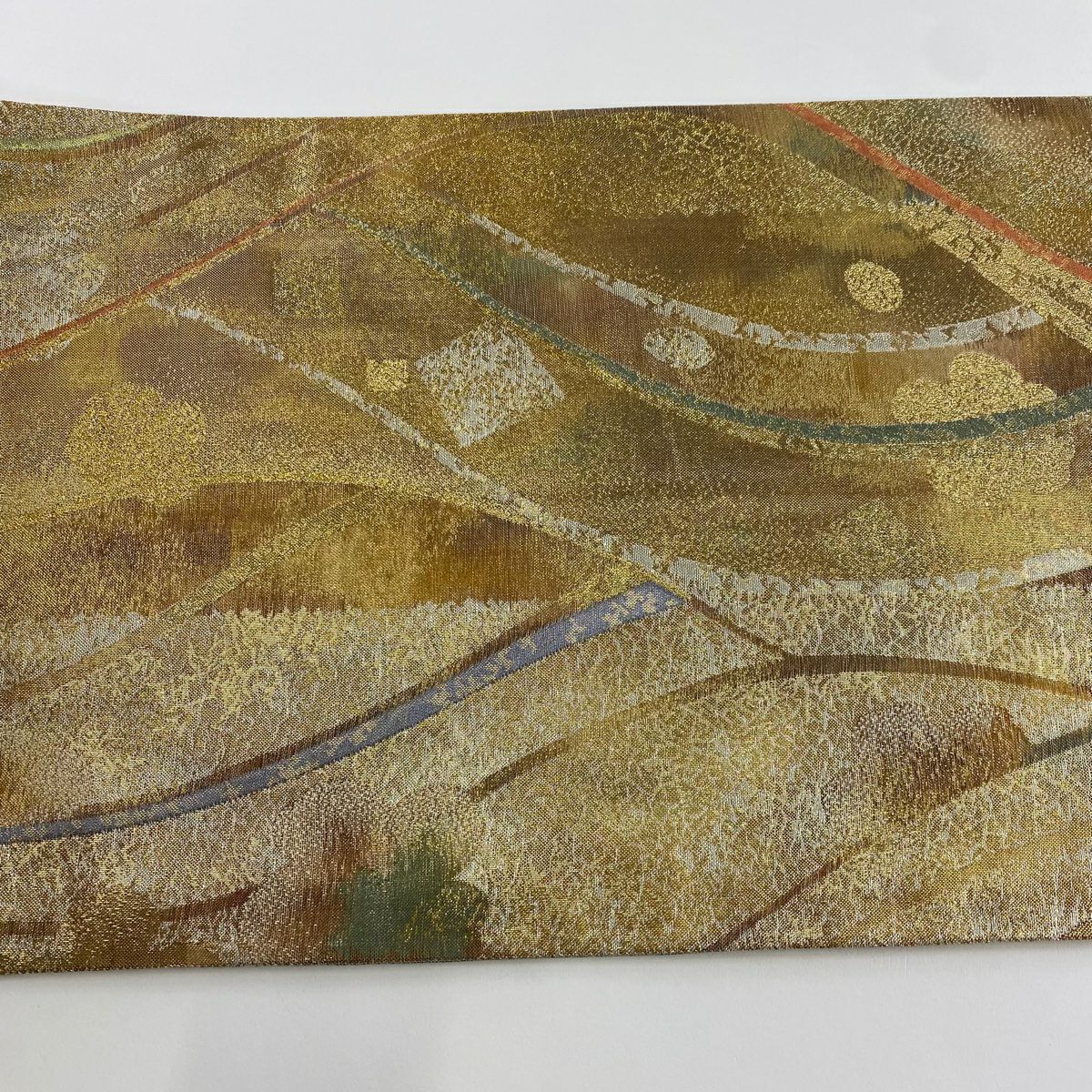 【在庫一掃】 袋帯 秀品 幾何学 金銀糸 箔 金色 お太鼓柄 正絹