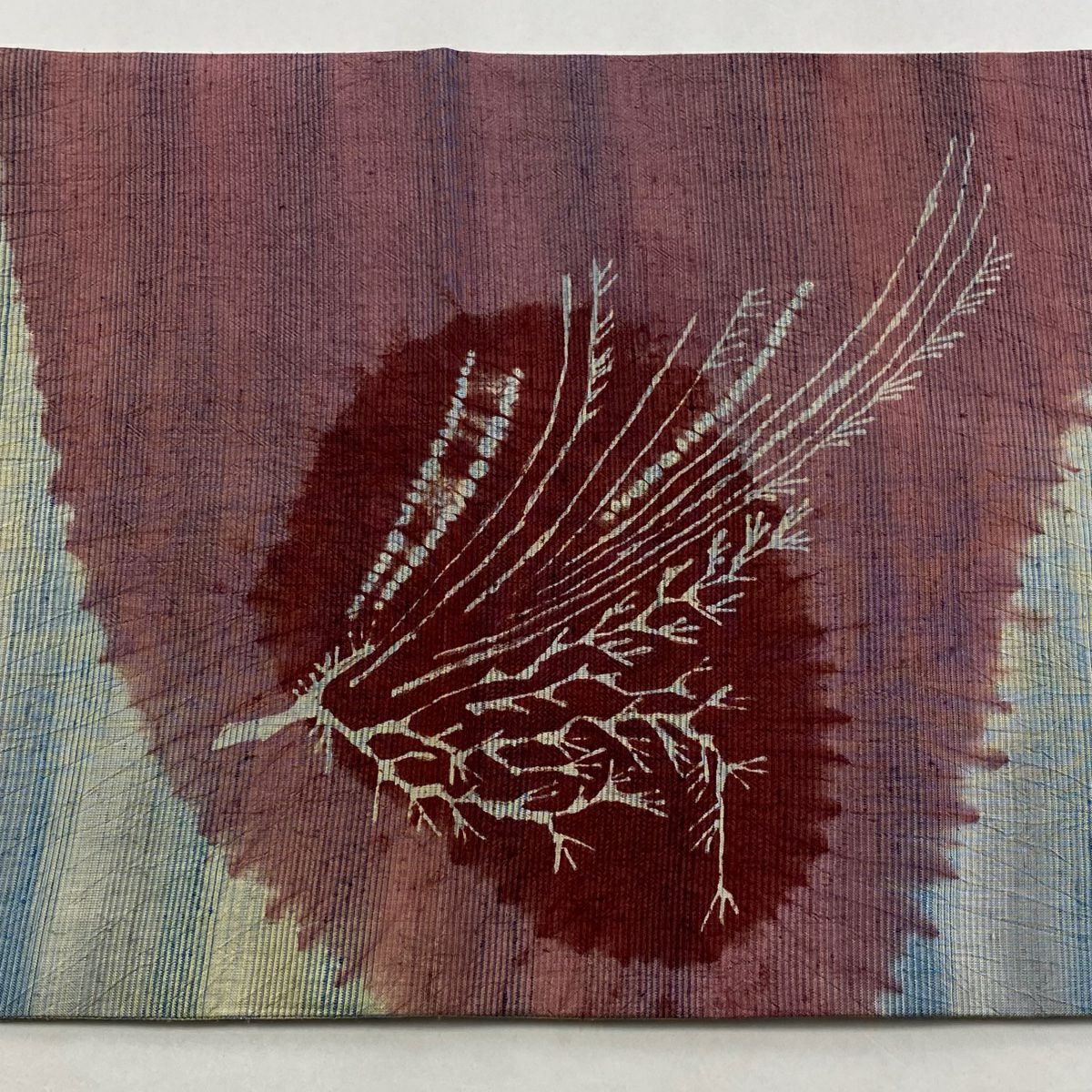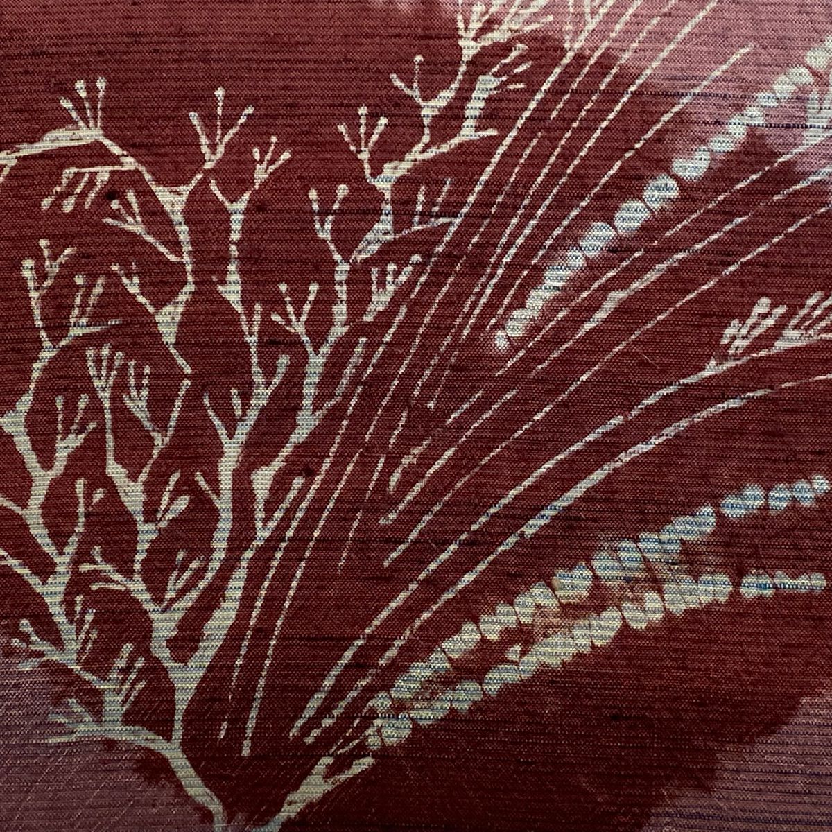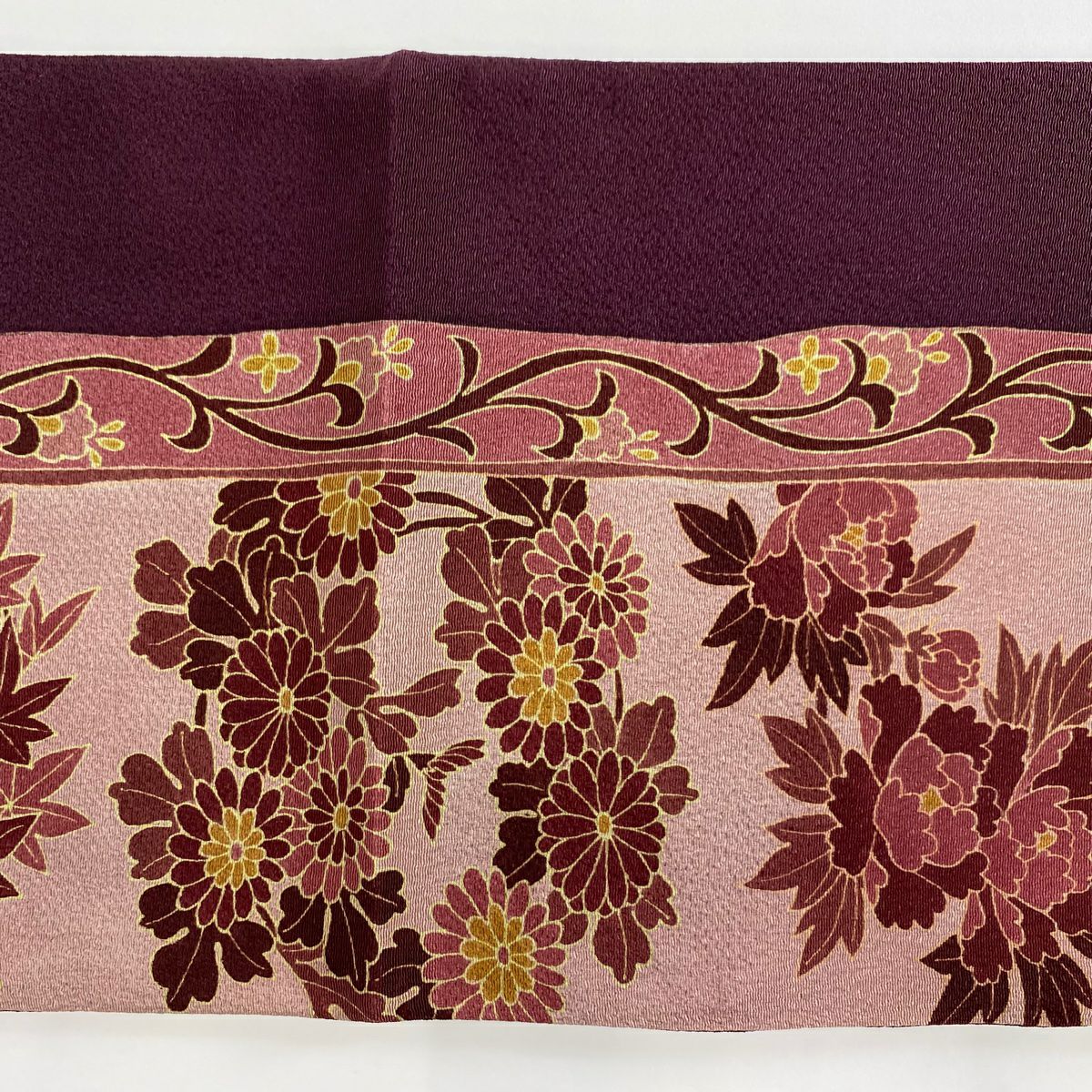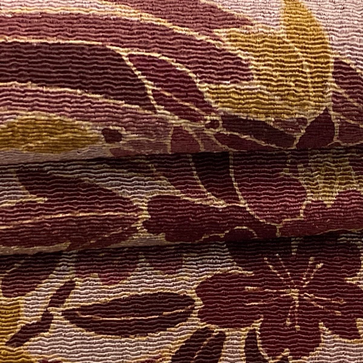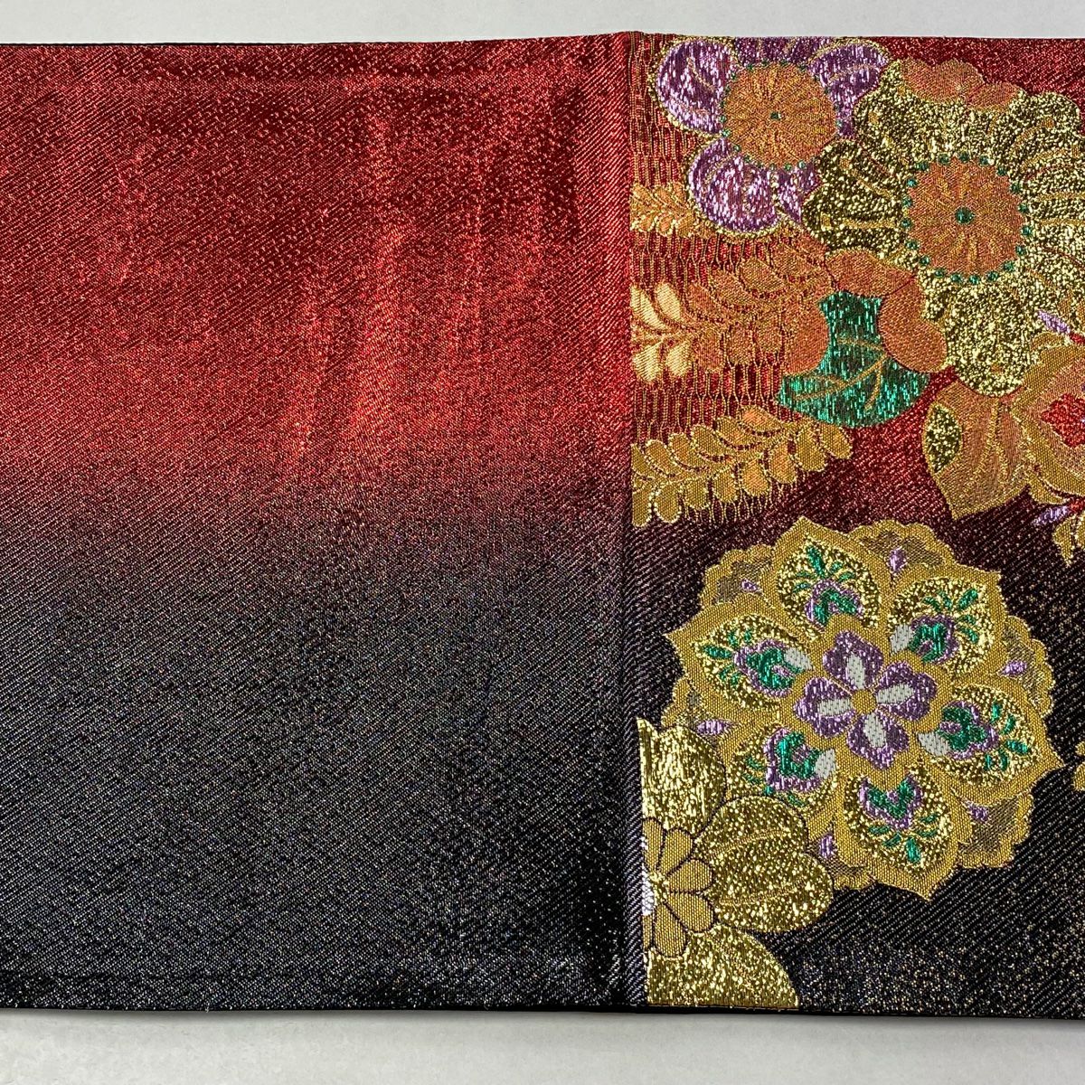 【在庫一掃】 袋帯 秀品 菊 牡丹 縮緬 薄小豆 お太鼓柄 正絹