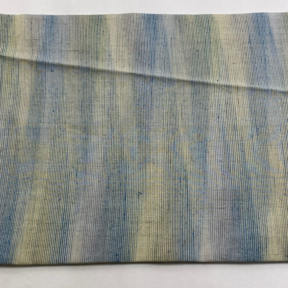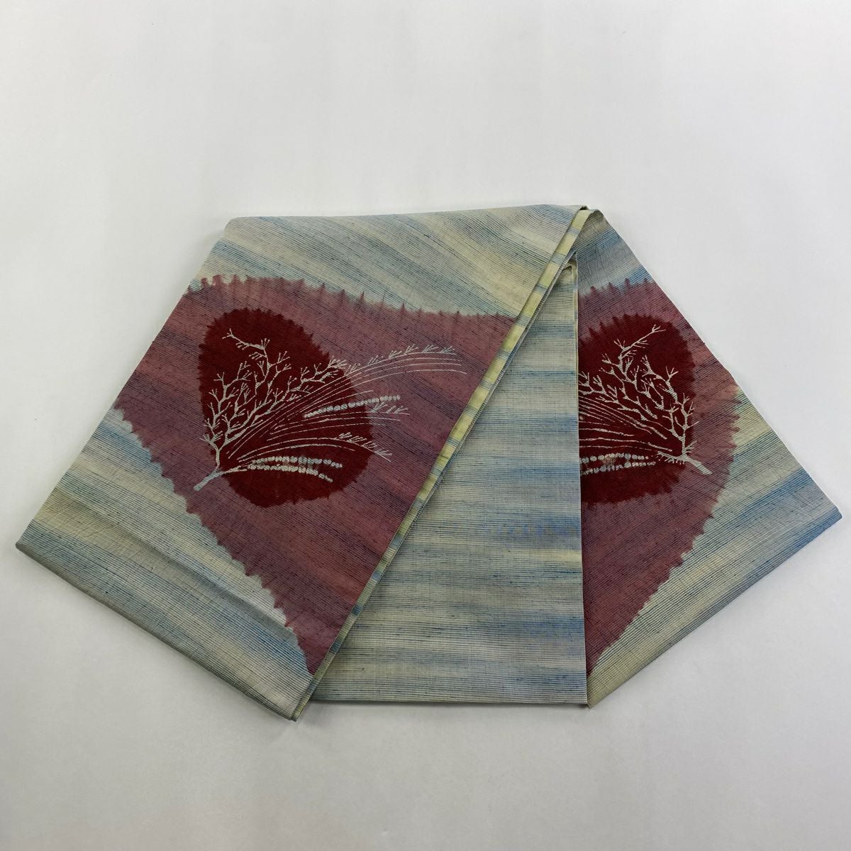 【在庫一掃】 袋帯 秀品 紬地 樹木 縞 青灰色 お太鼓柄 正絹