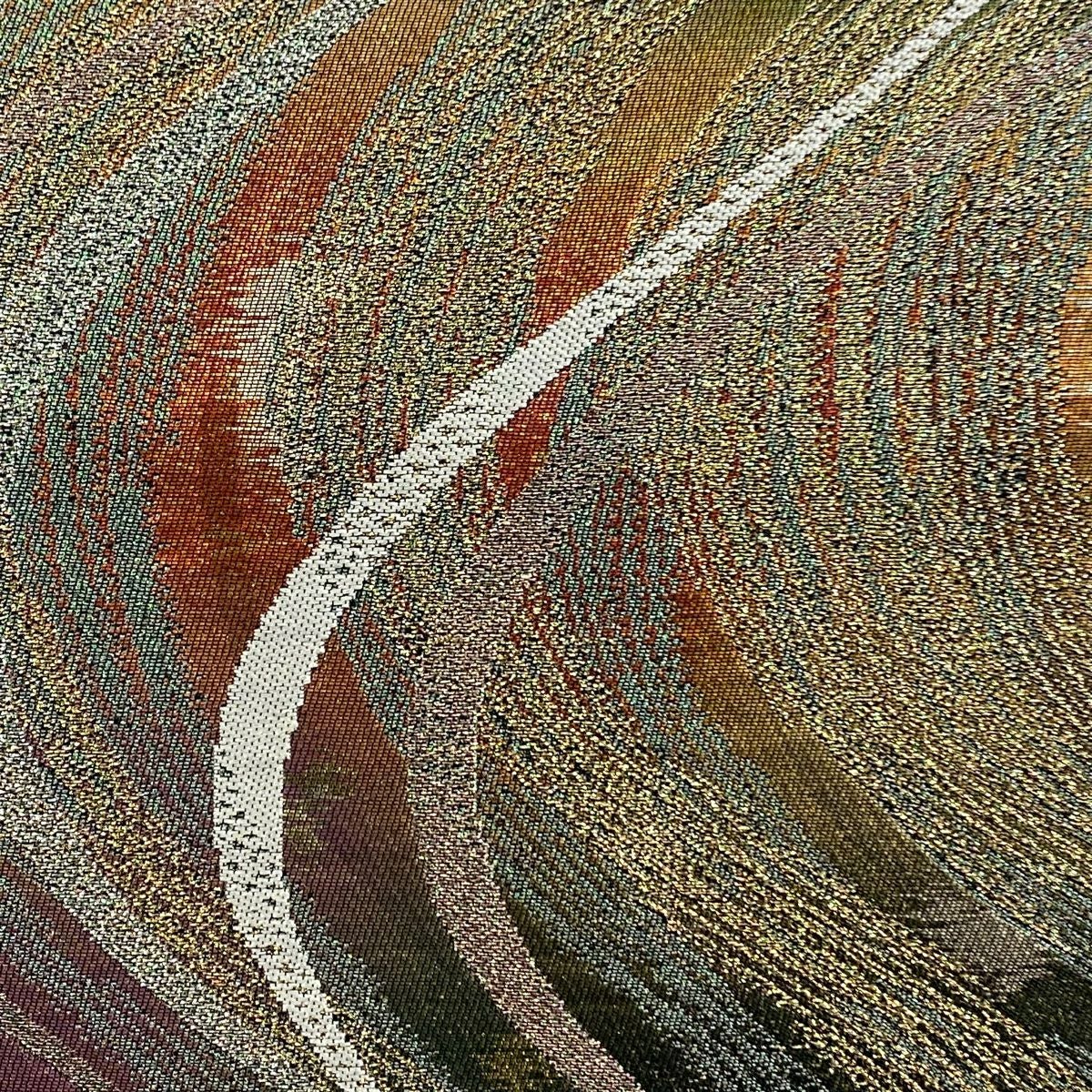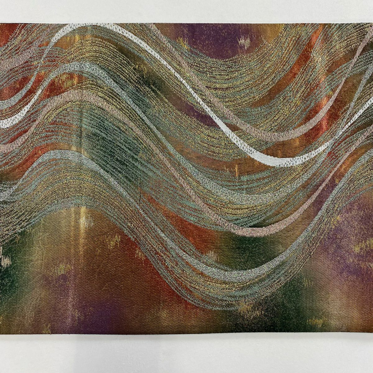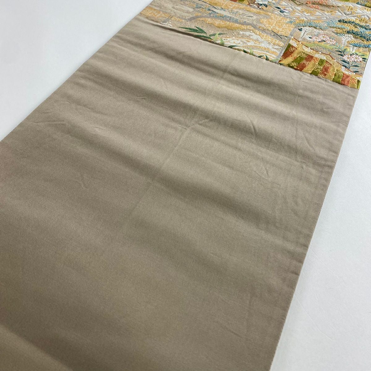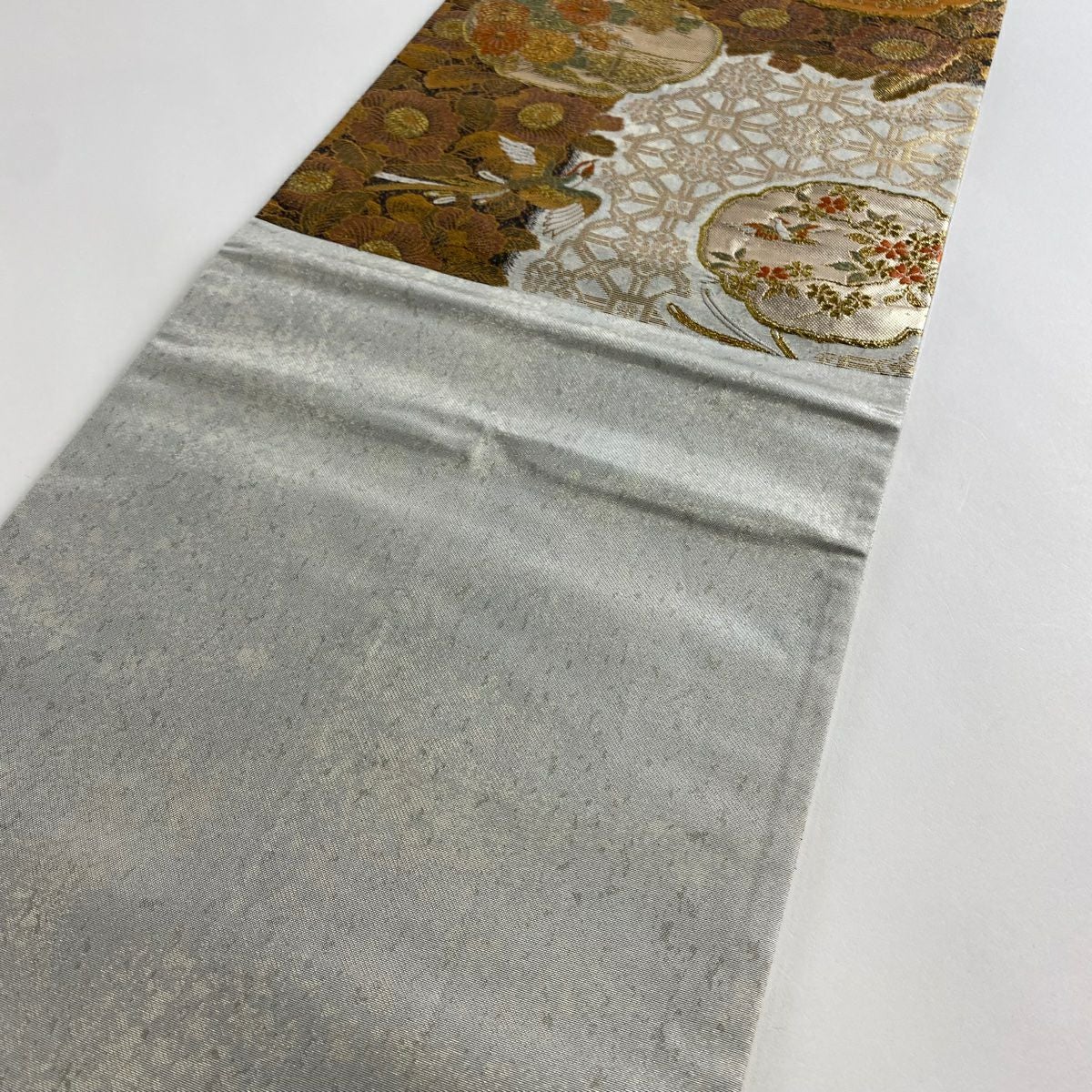 【在庫一掃】 袋帯 秀品 観世水 唐織 箔 灰茶 お太鼓柄 正絹