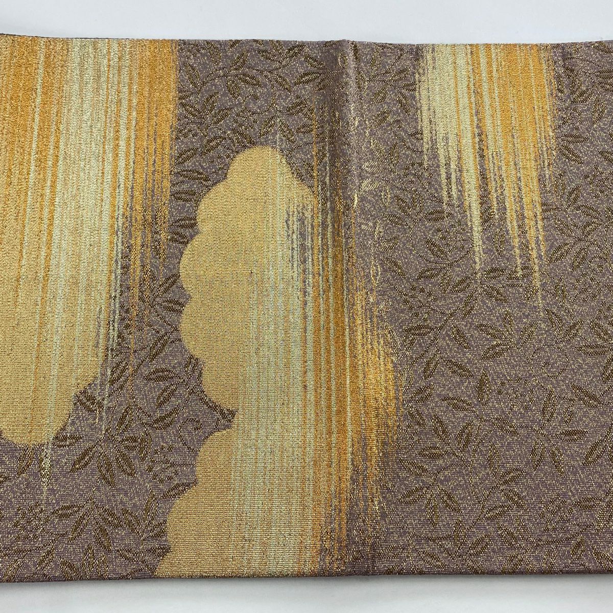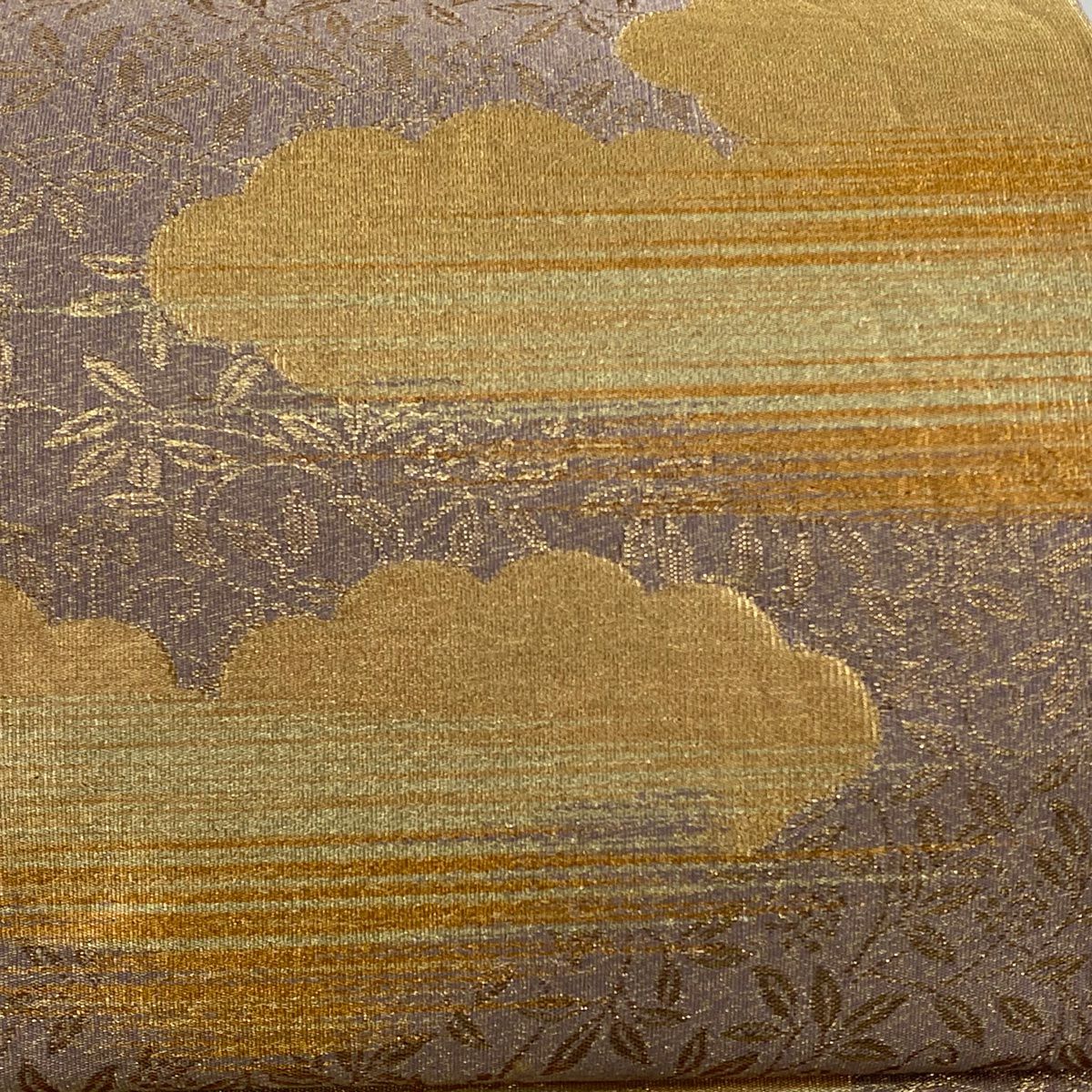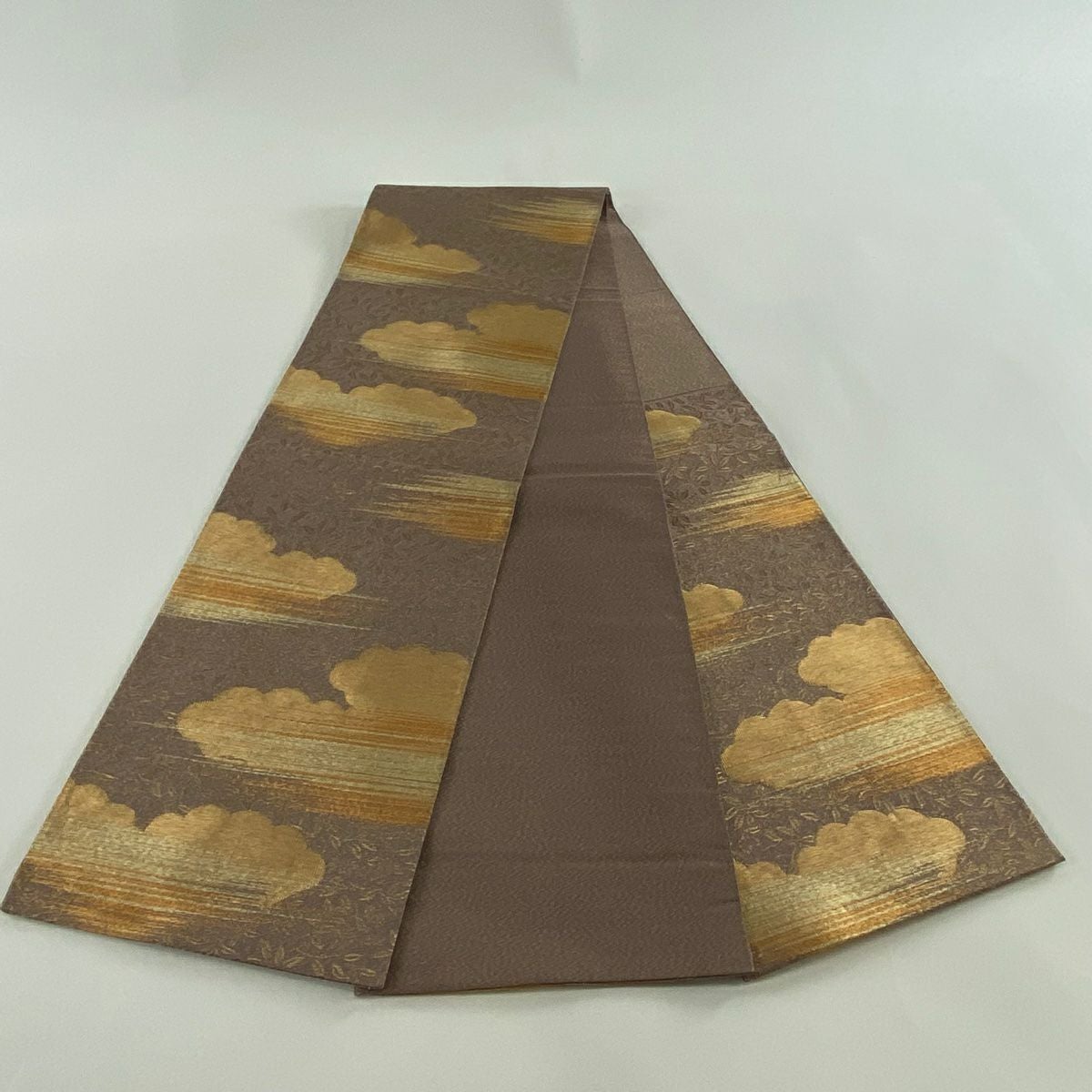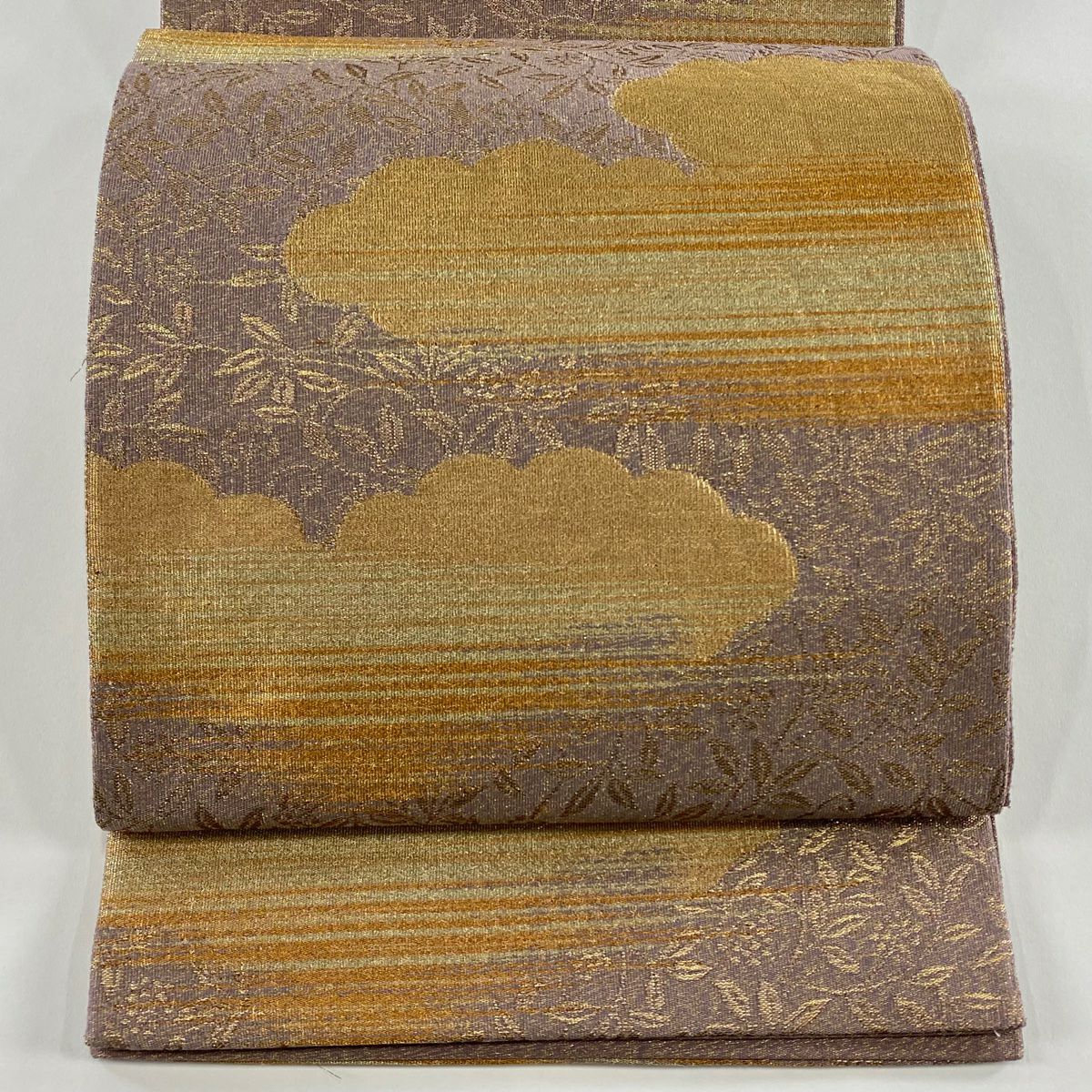 【在庫一掃】 袋帯 秀品 雲文 葉柄 金糸 箔 灰紫 六通 正絹