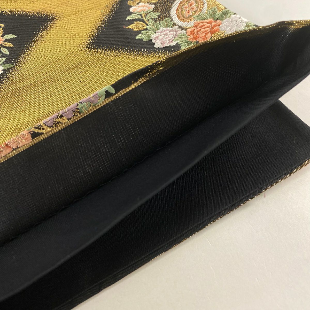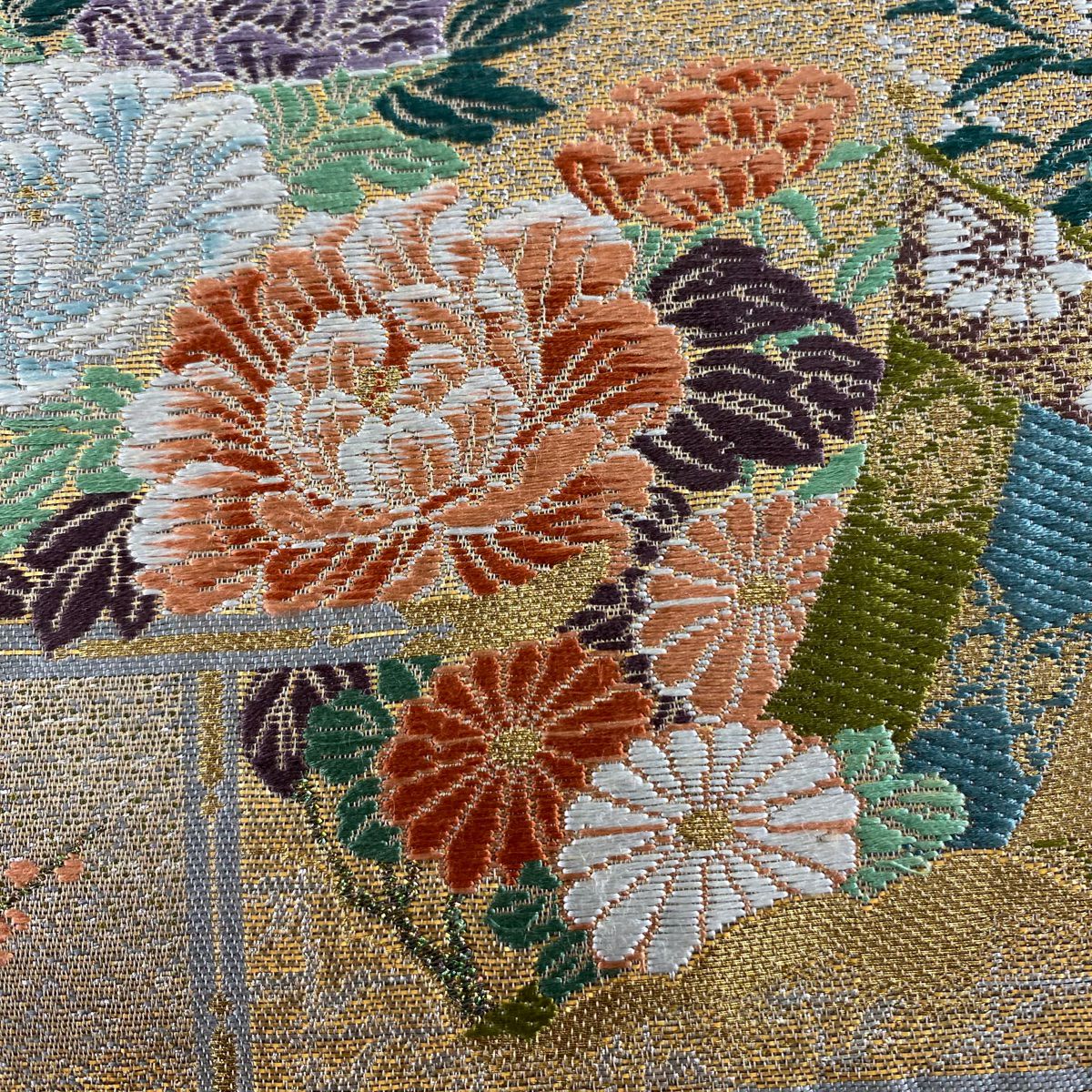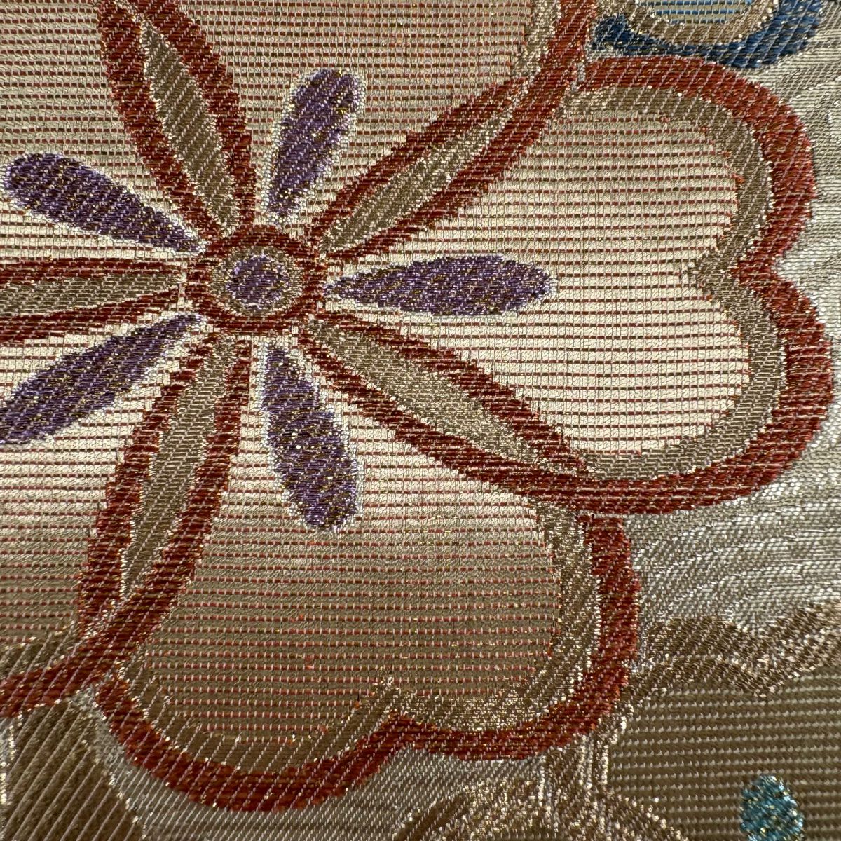 【在庫一掃】 袋帯 秀品 秋草 籠目 唐織 箔 金色 六通 正絹