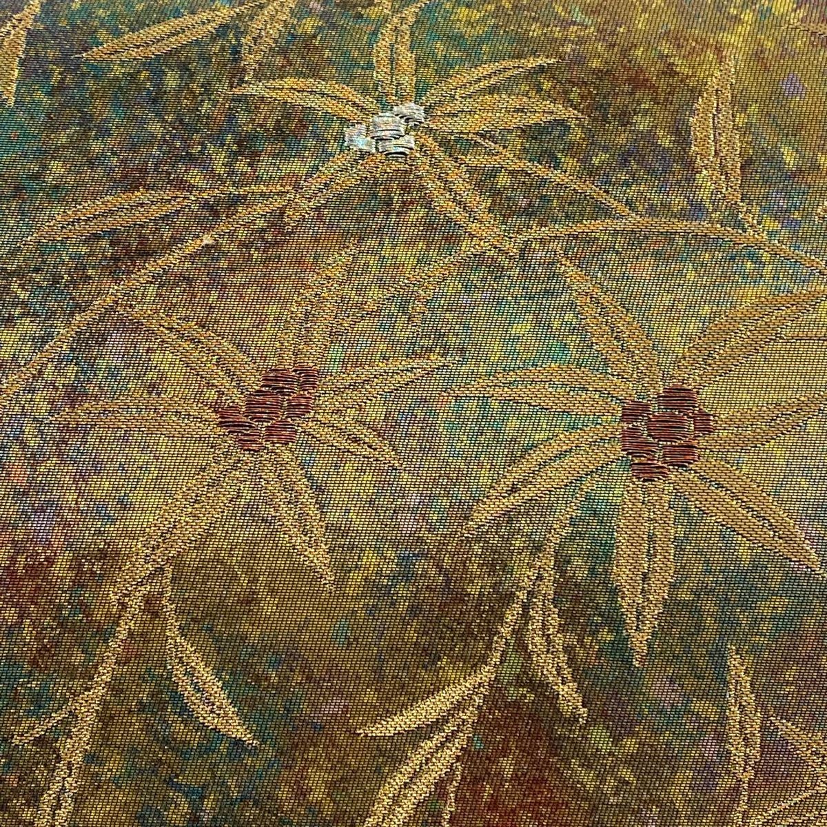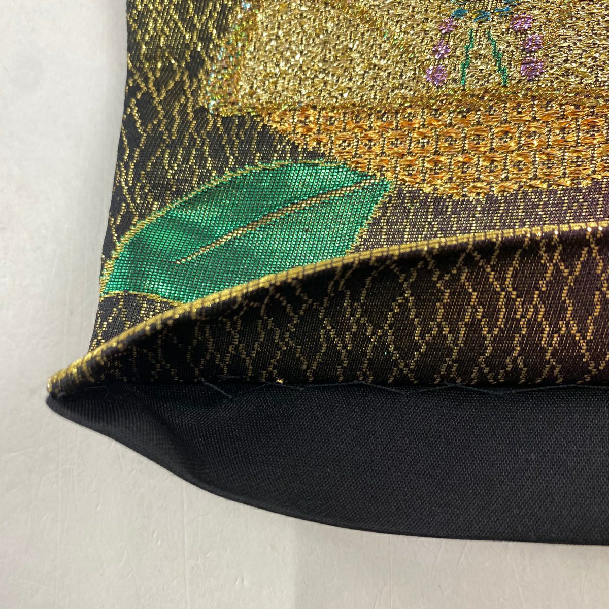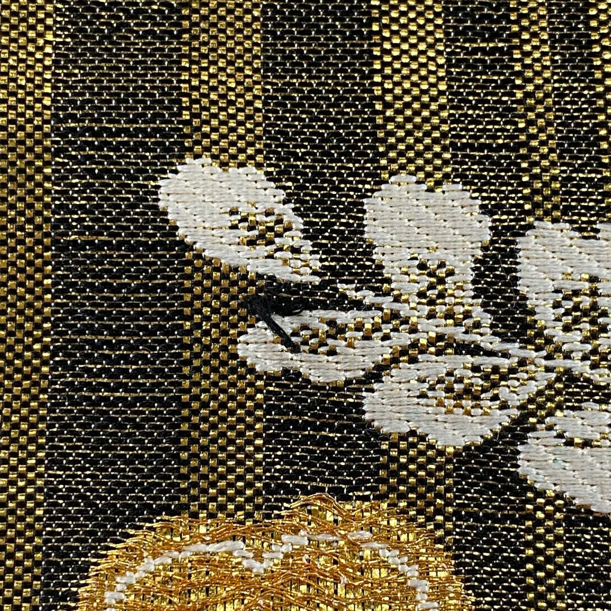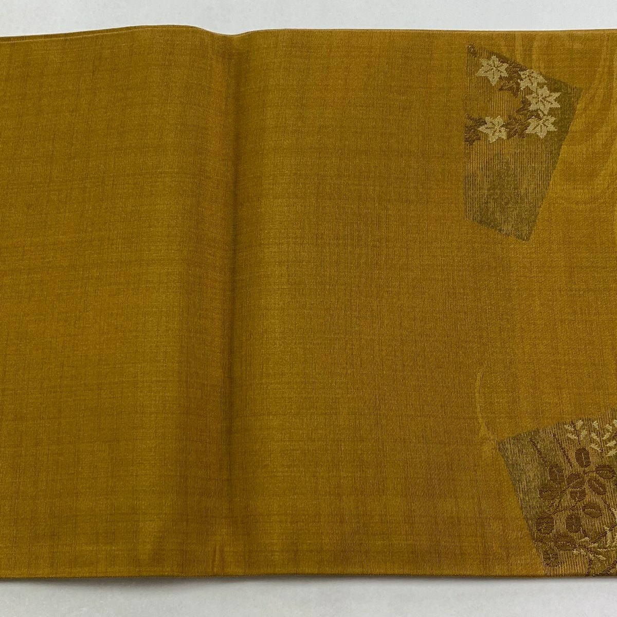 【在庫一掃】 袋帯 秀品 秋草 籠目 唐織 箔 金色 六通 正絹