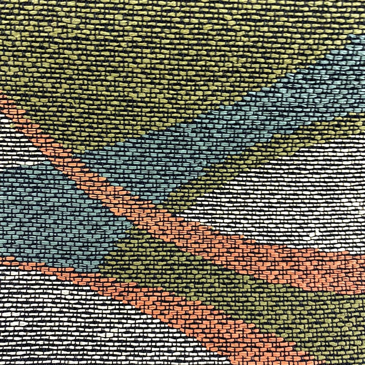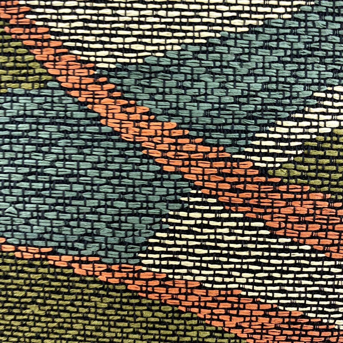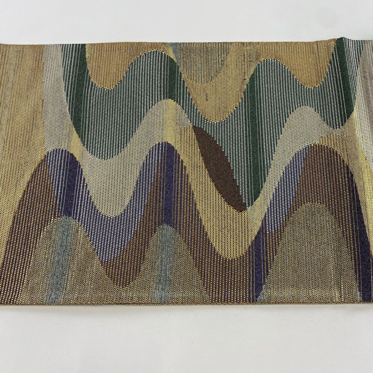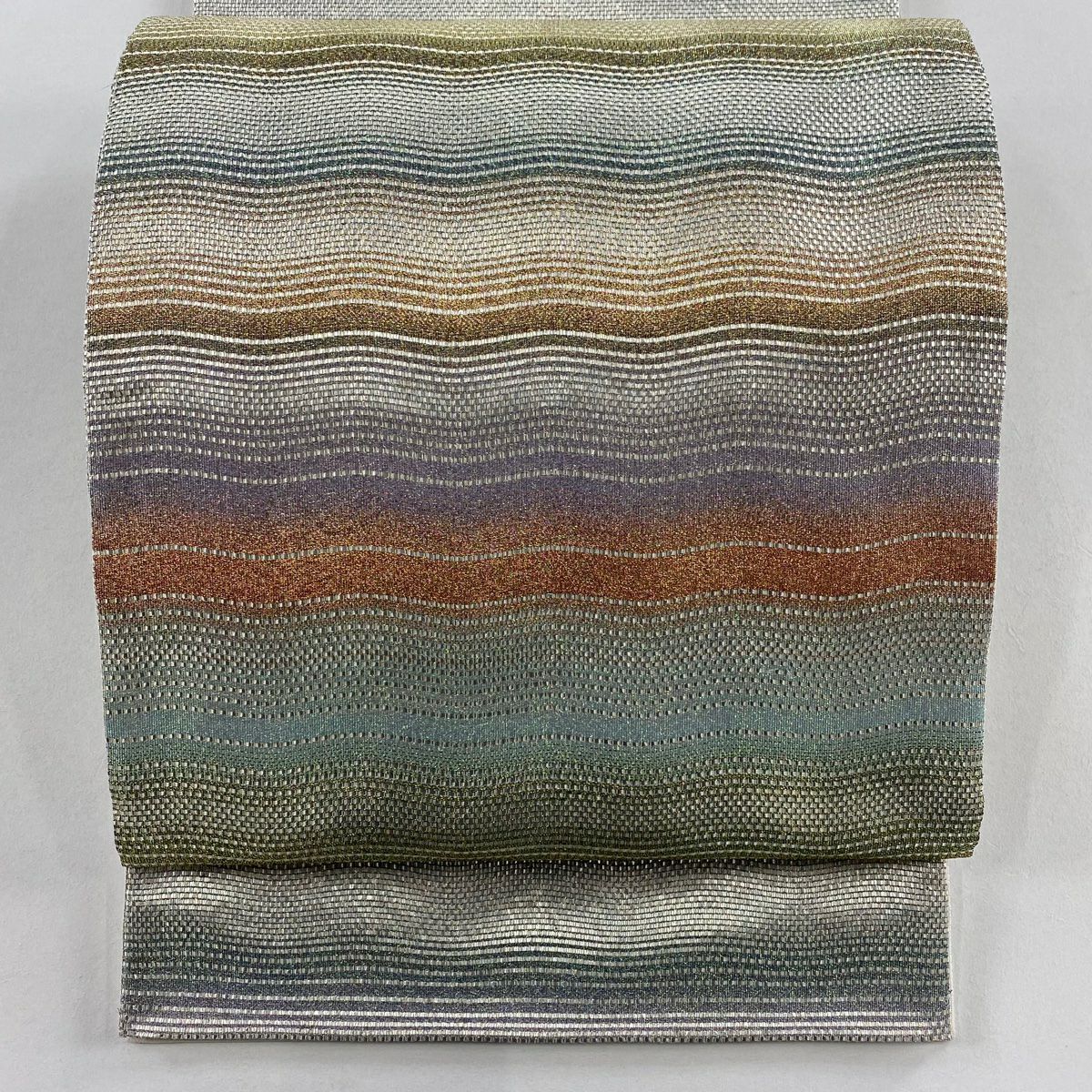 【在庫一掃】 袋帯 秀品 幾何学模様 よろけ縞 灰茶 六通 正絹