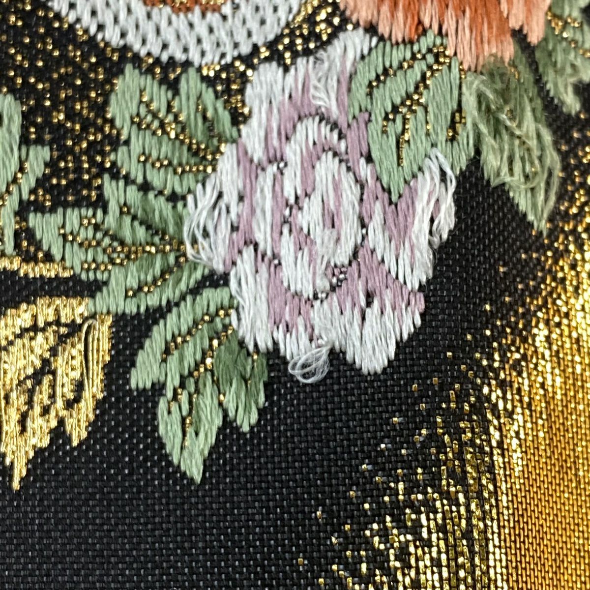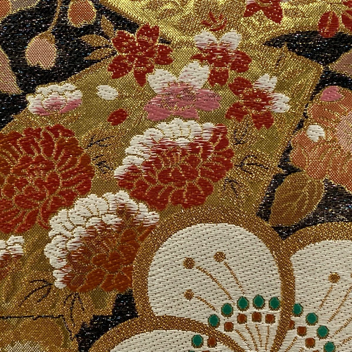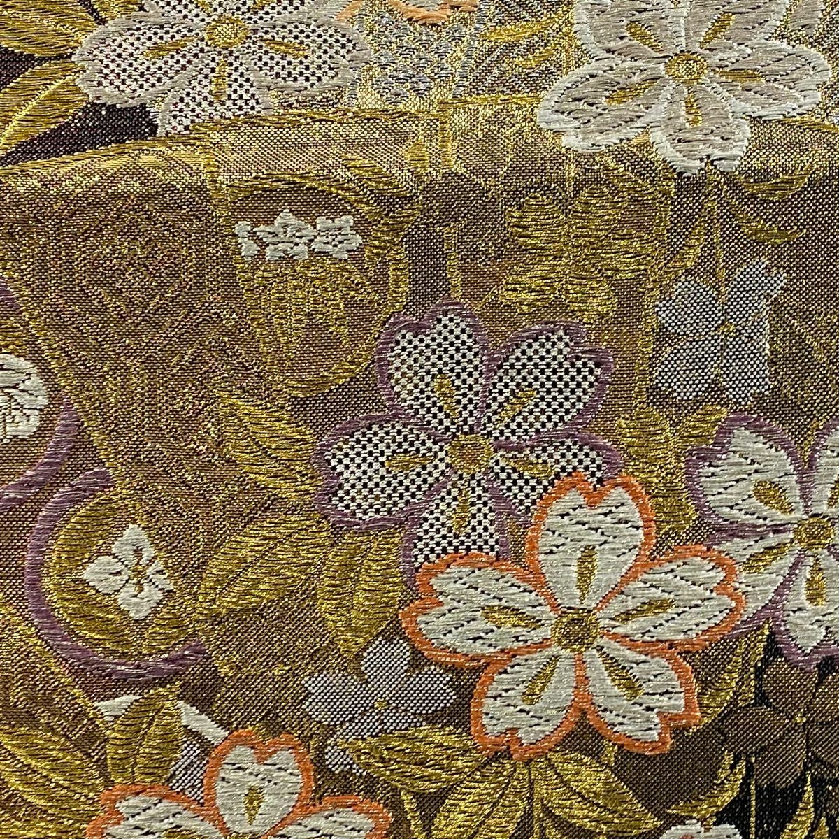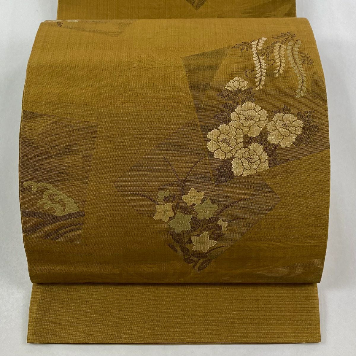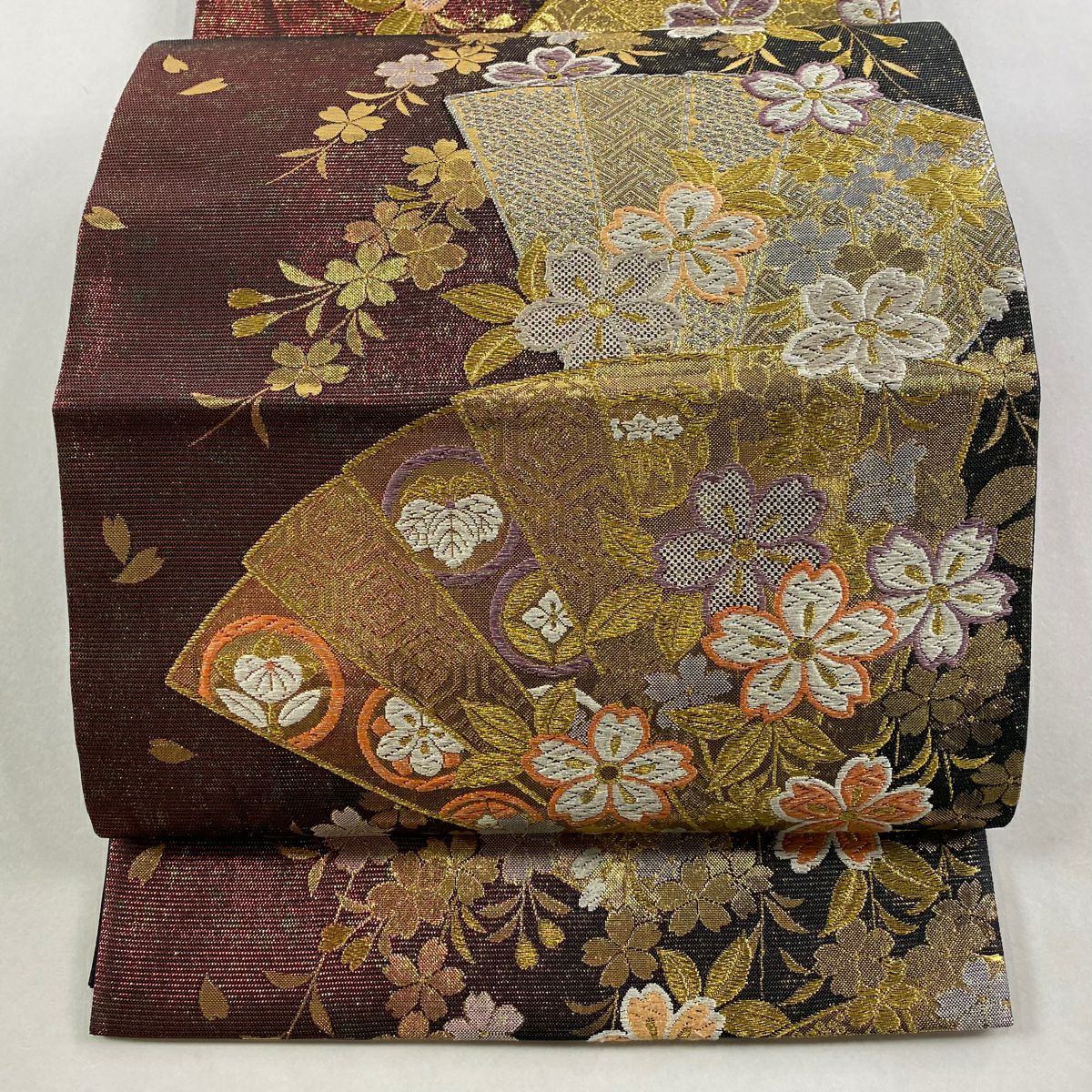 【在庫一掃】 【美品】 袋帯 秀品 扇 花鳥 箔 金色 六通 正絹