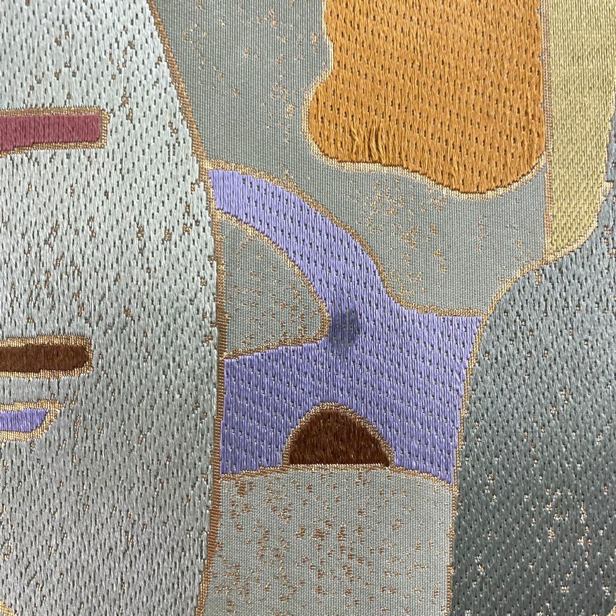 【在庫一掃】 【美品】 袋帯 秀品 幾何学 金糸 青紫 全通 正絹