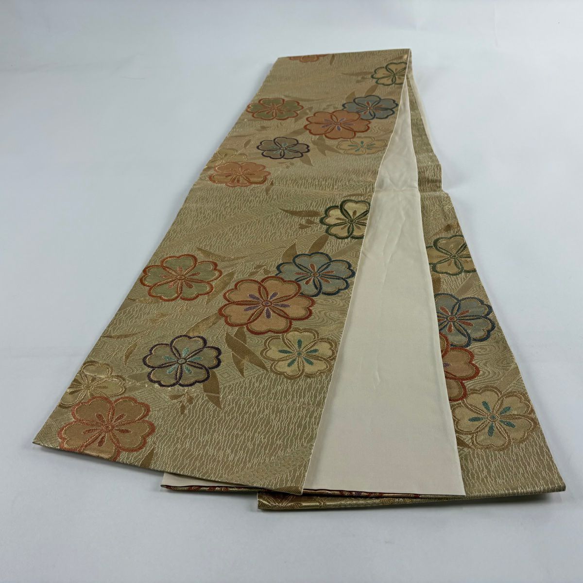 【在庫一掃】 【美品】 袋帯 秀品 桜 流水 金糸 箔 銀色 正絹
