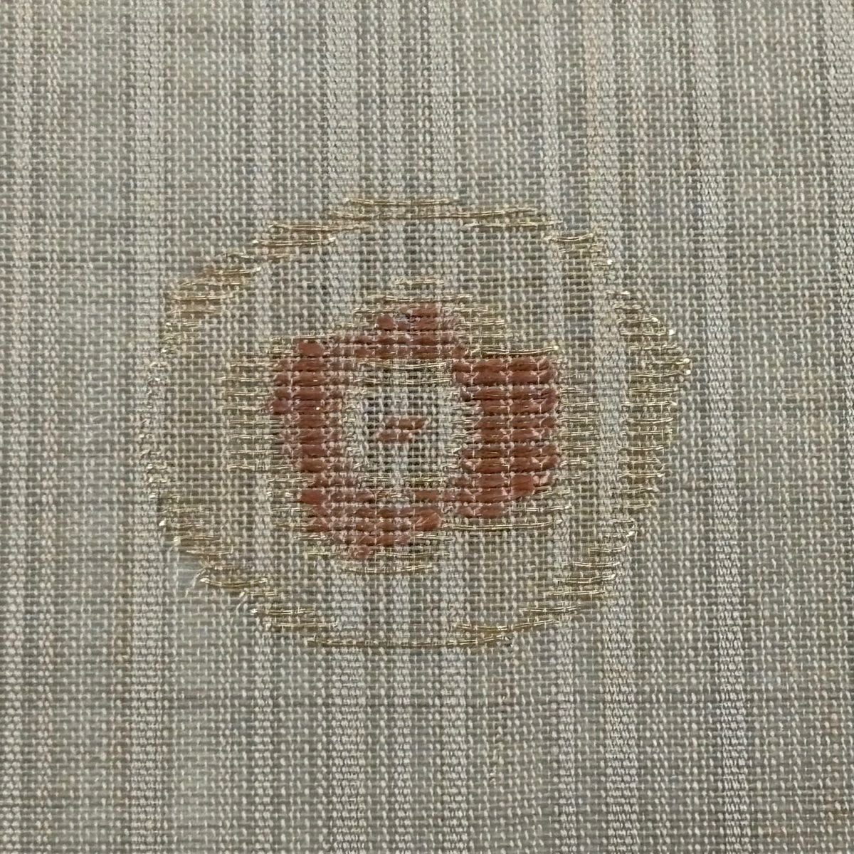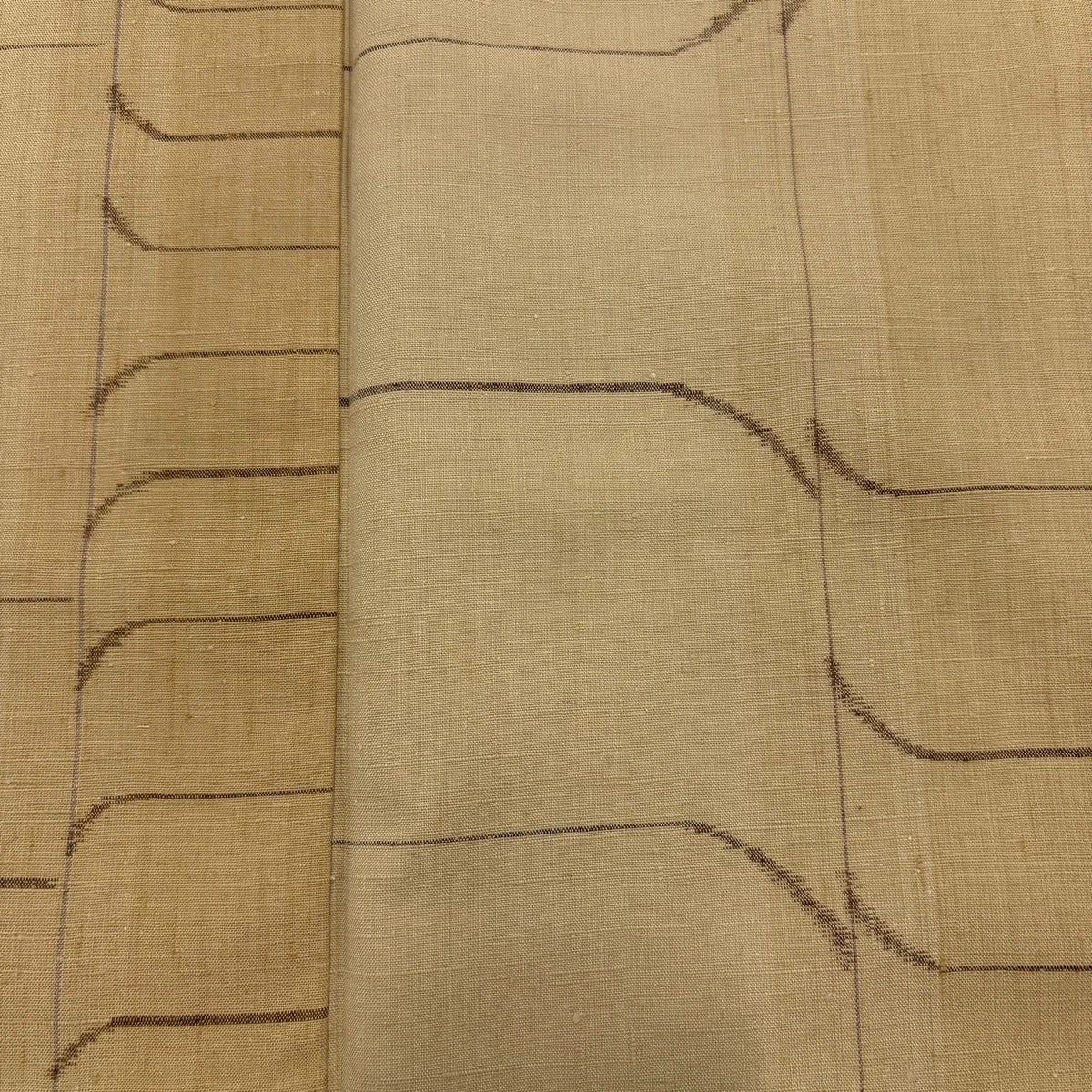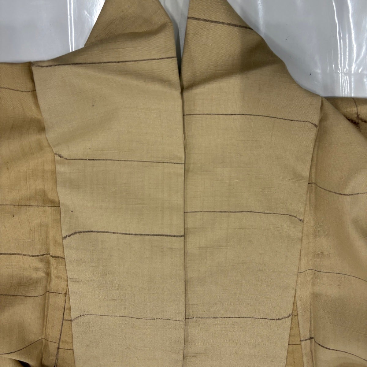 紬 身丈164cm 裄丈64cm M 袷 幾何学模様 薄茶色 正絹 秀品
