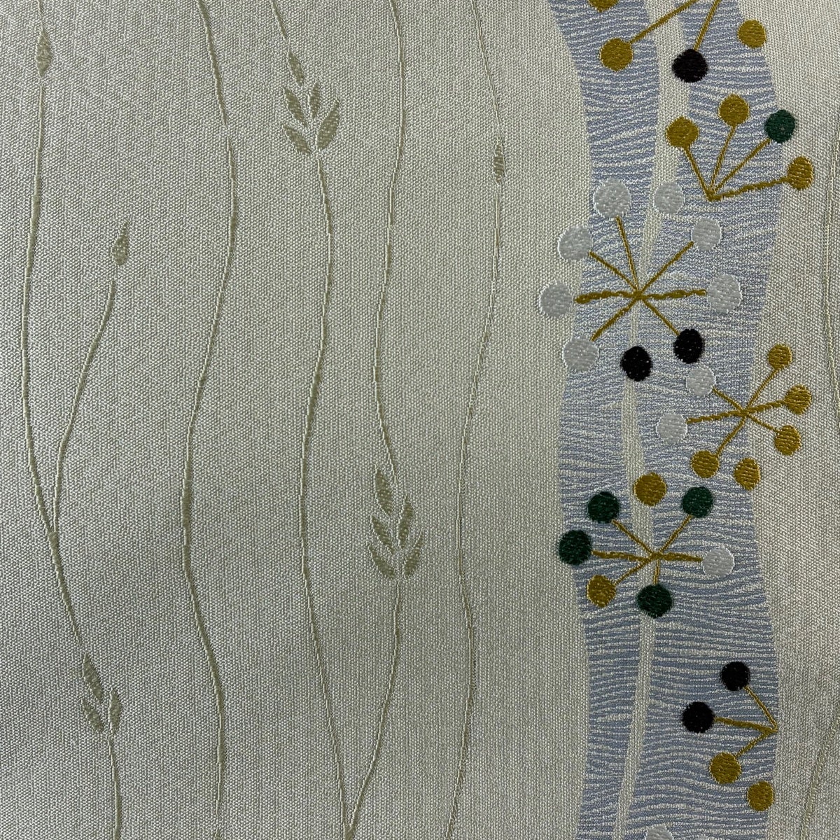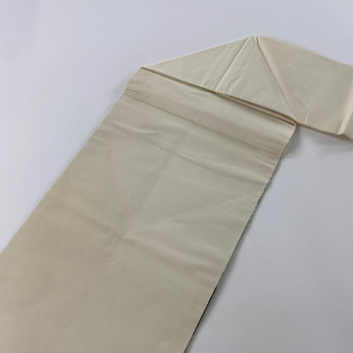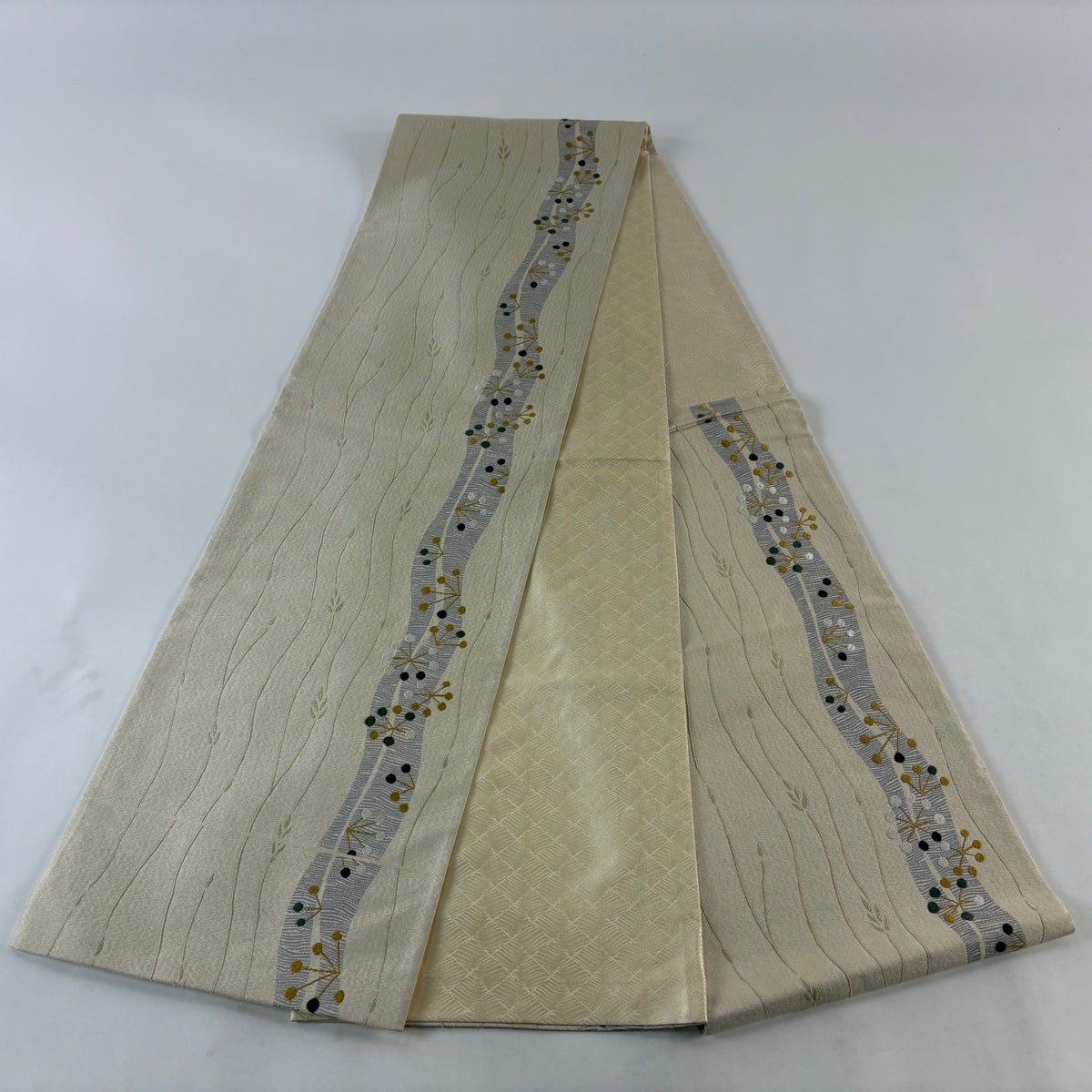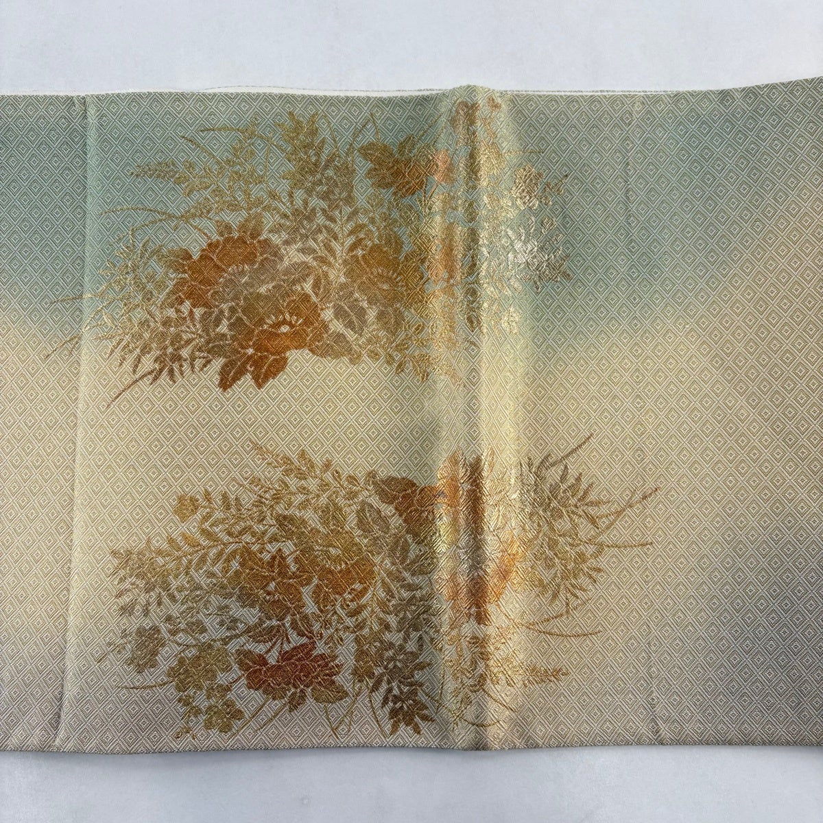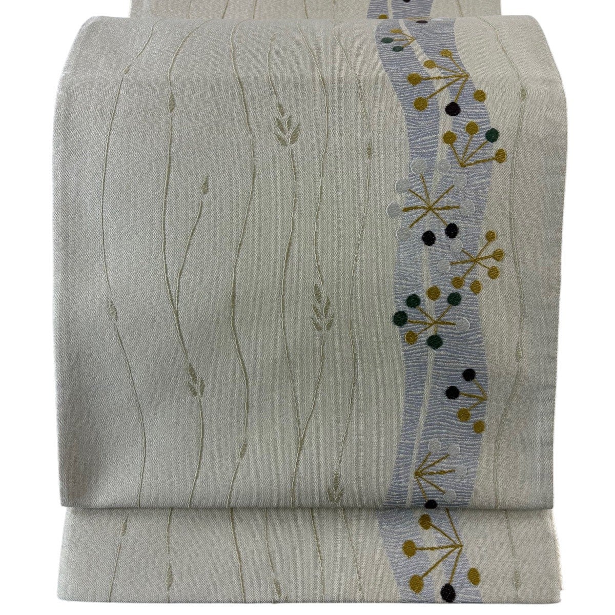 袋帯 秀品 草花 すすき 螺鈿 金彩 ベージュ お太鼓柄 正絹