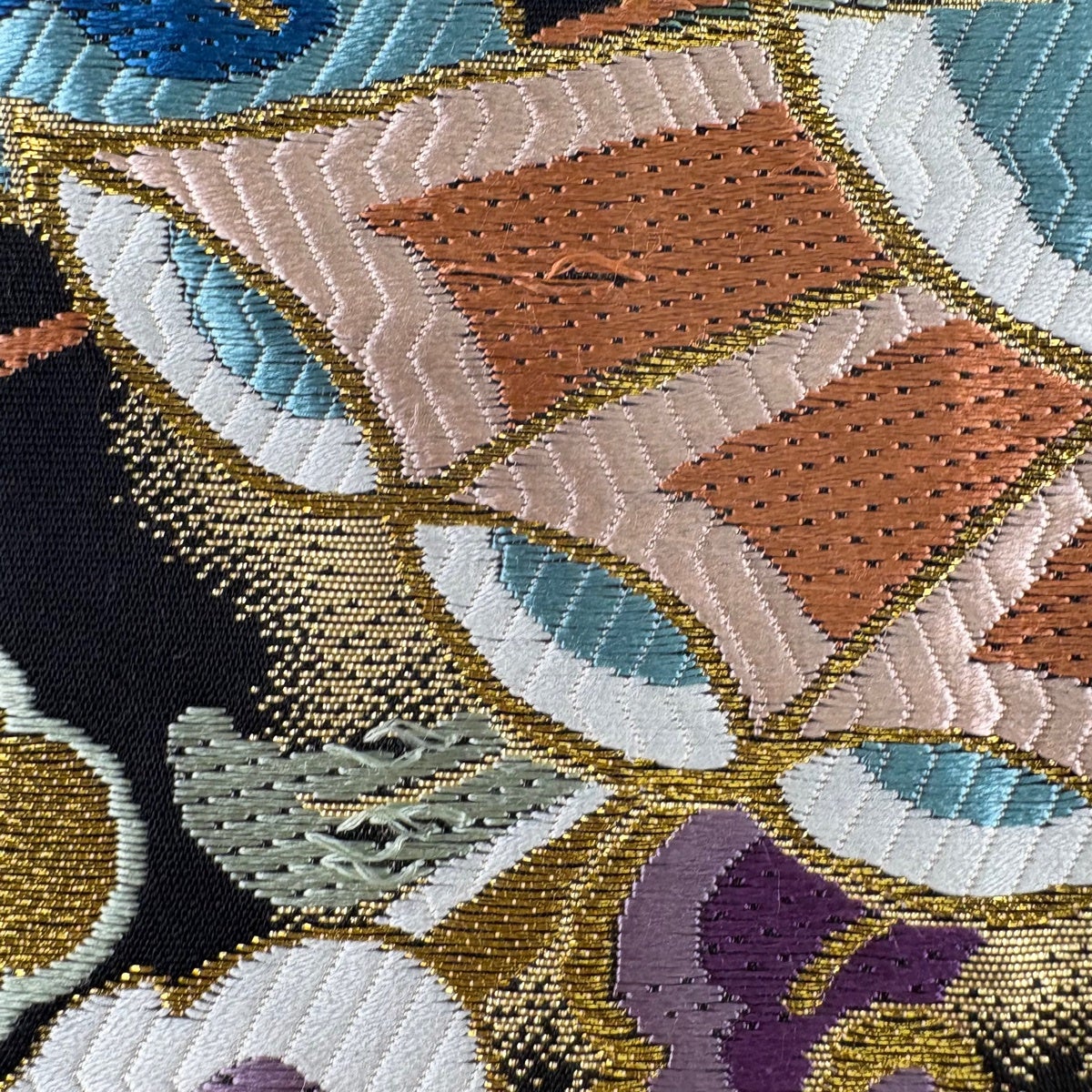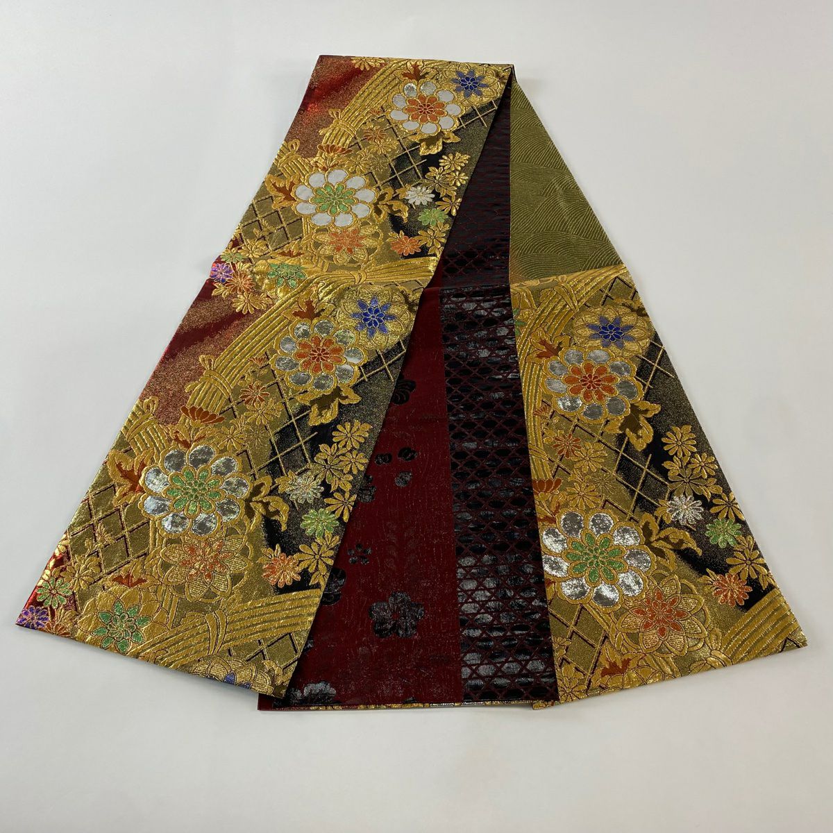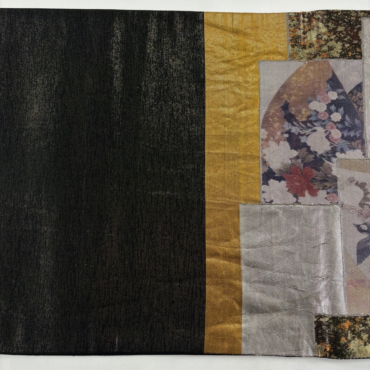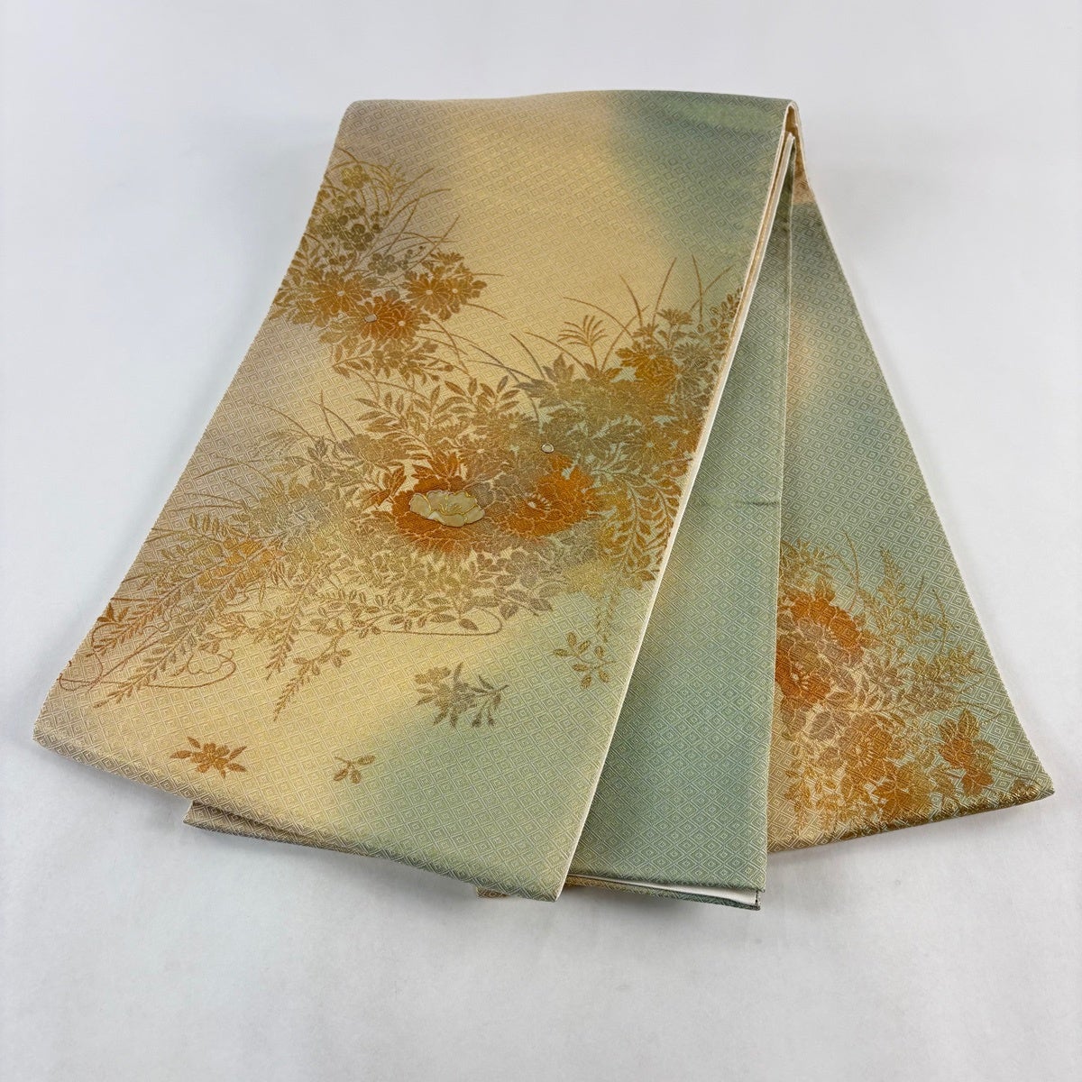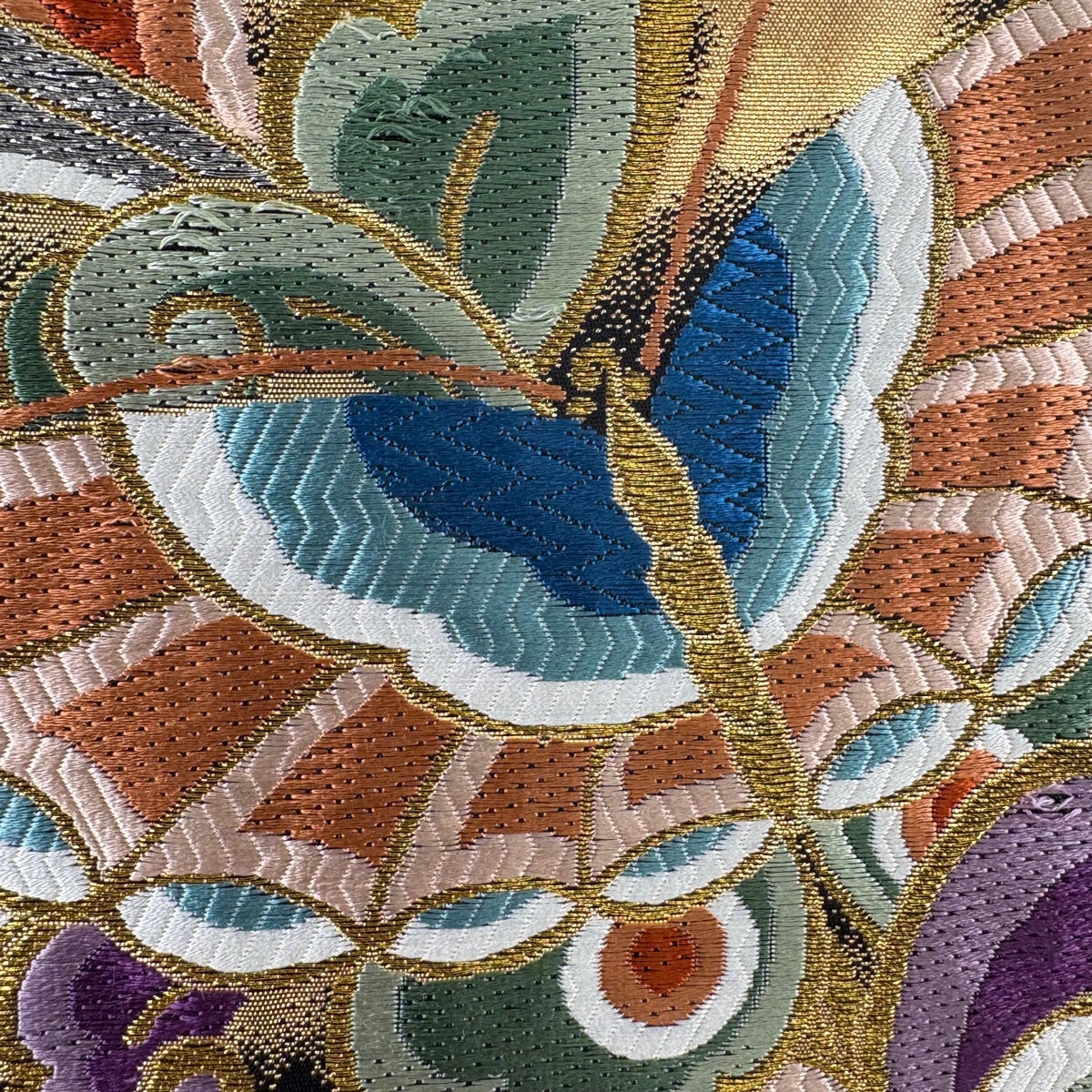 【在庫一掃】 袋帯 秀品 扇面 草花 金銀糸 箔 金色 六通 正絹