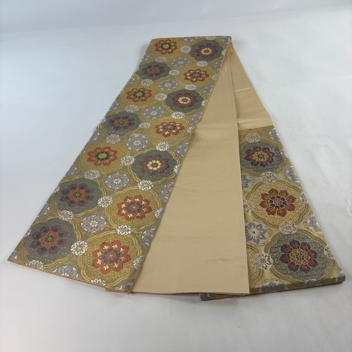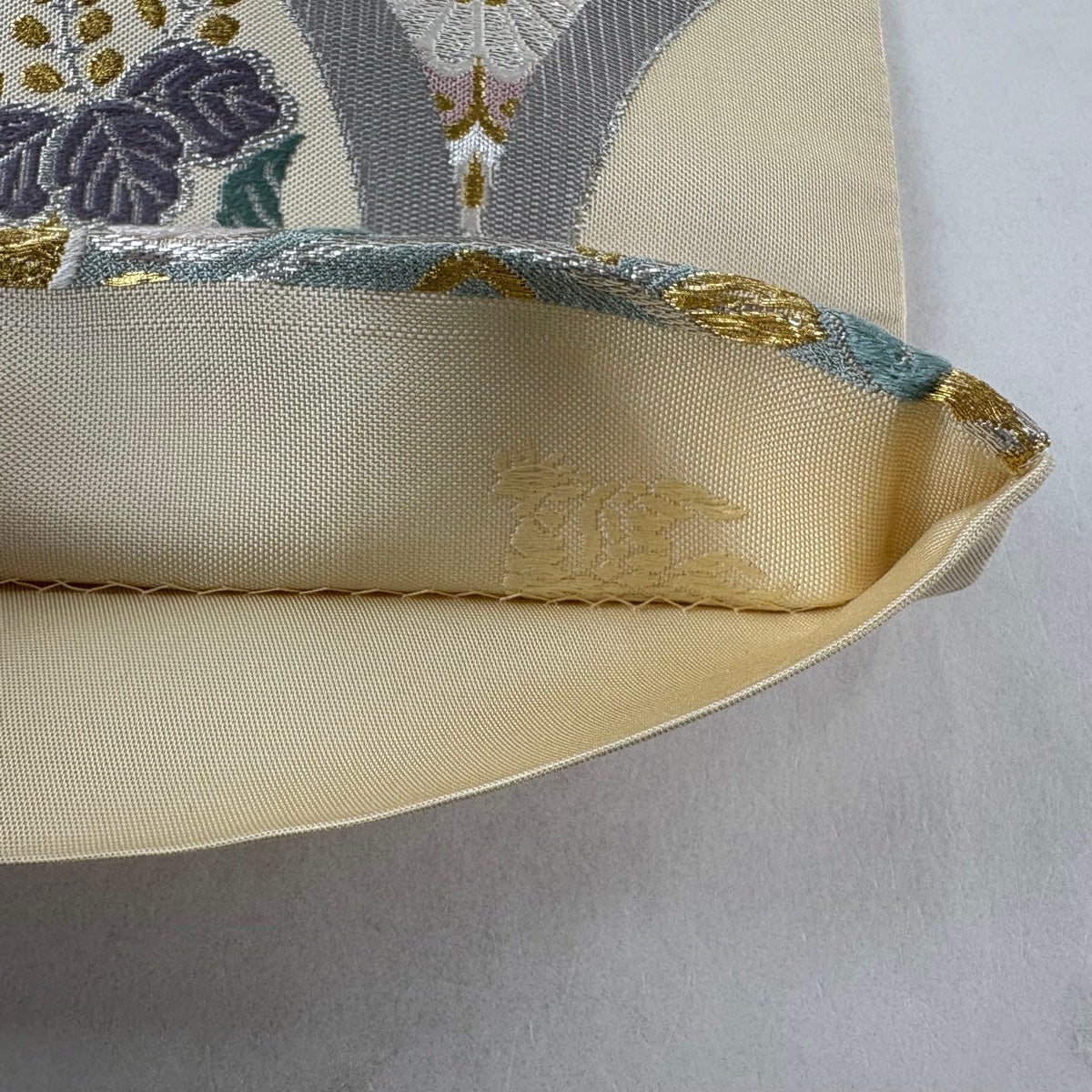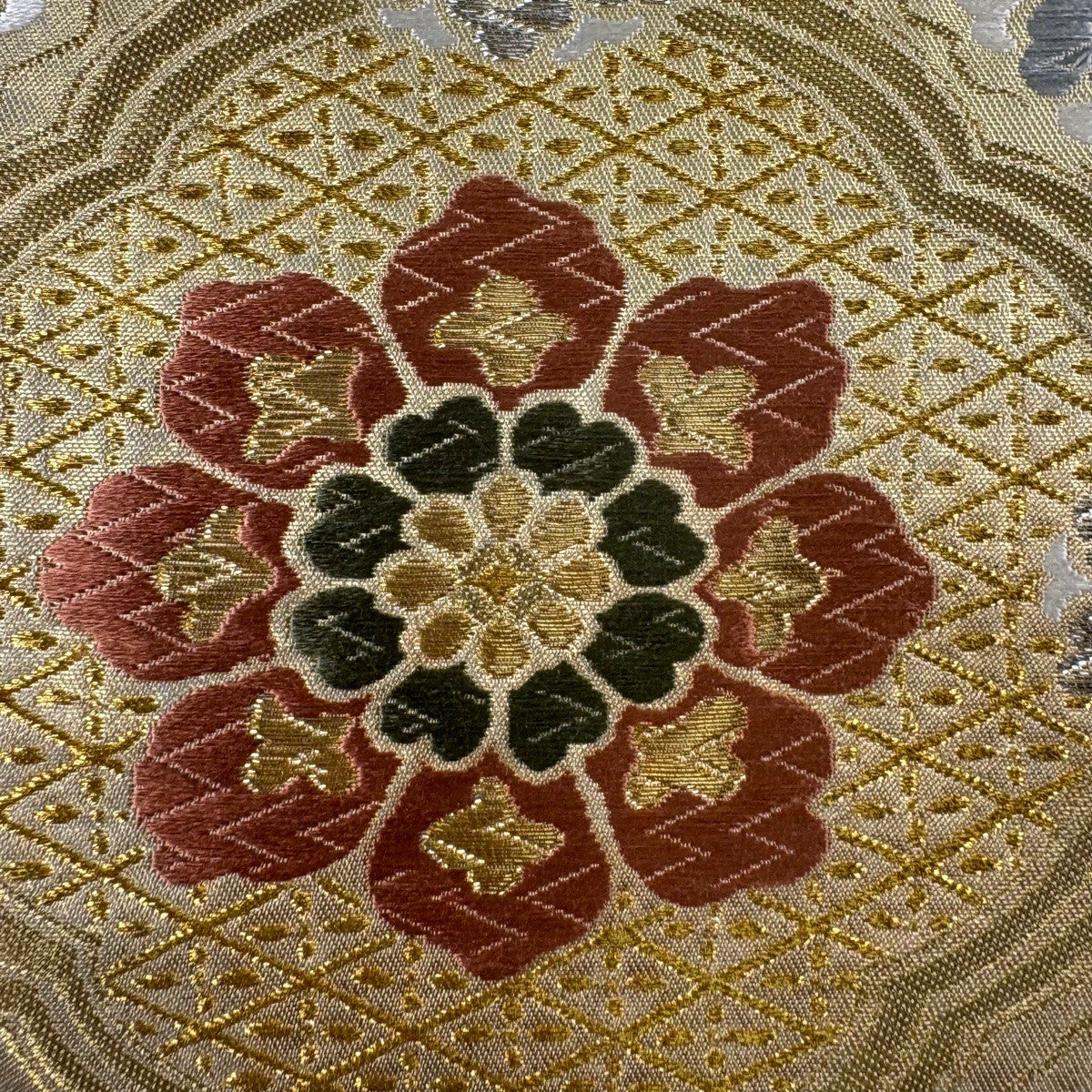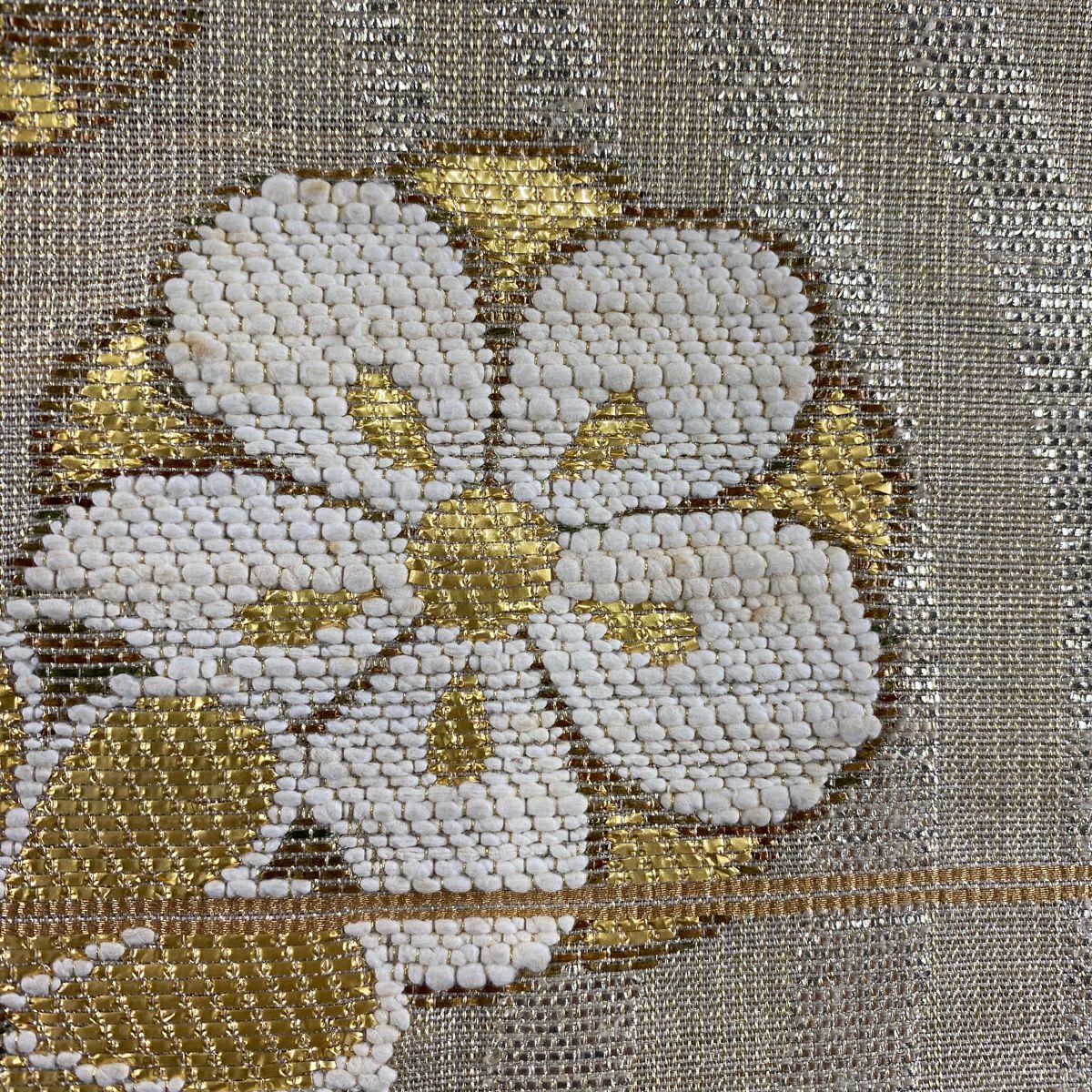 袋帯 秀品 華文 有職文様 金銀糸 唐織 ベージュ 六通 正絹