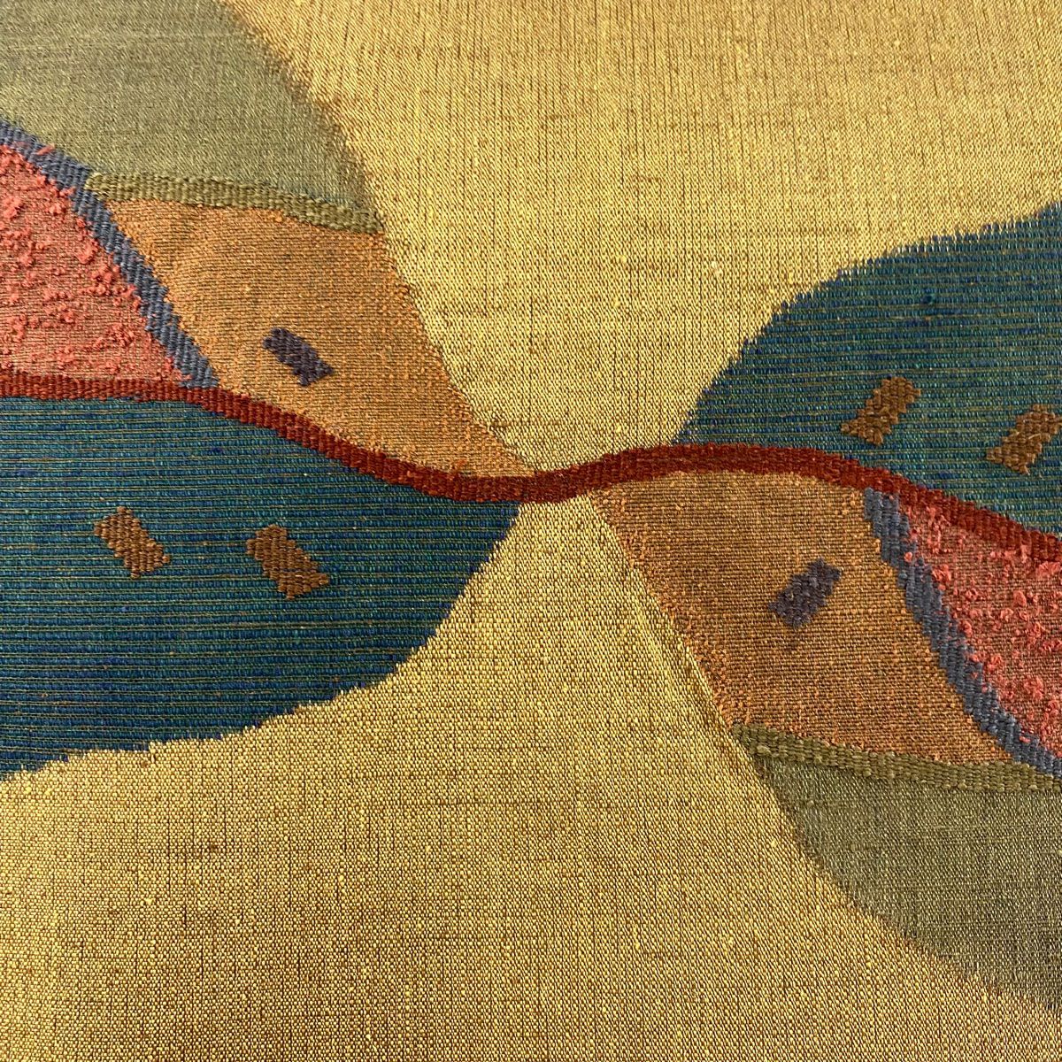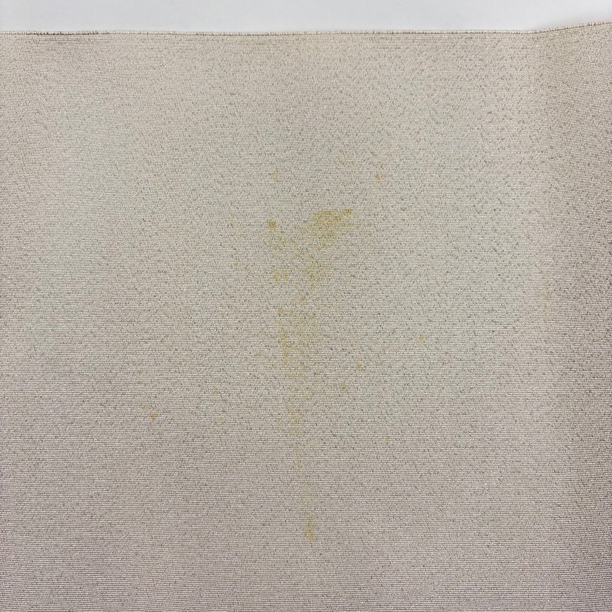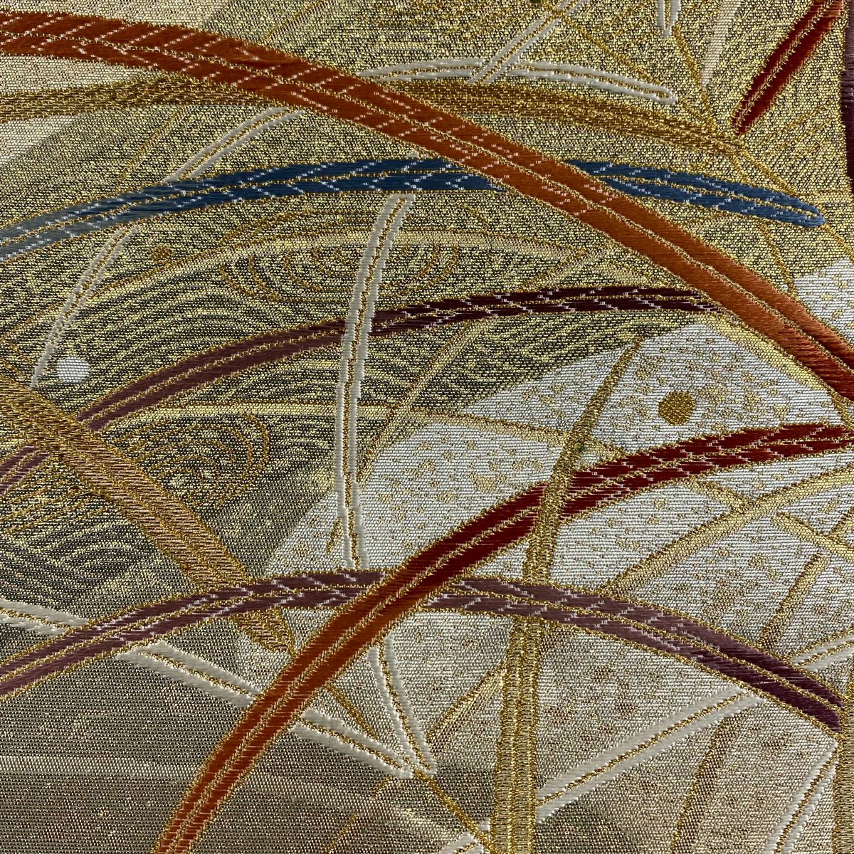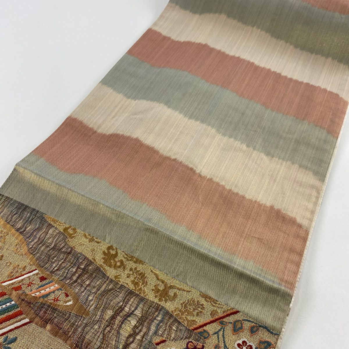 袋帯 秀品 幾何学 よろけ縞 刺繍 金彩 ベージュ 六通 正絹