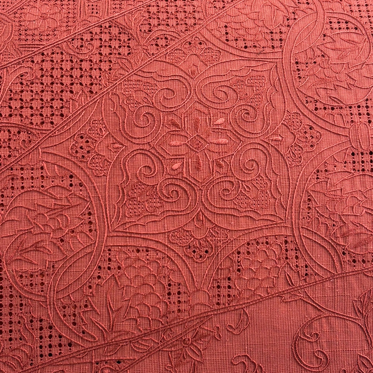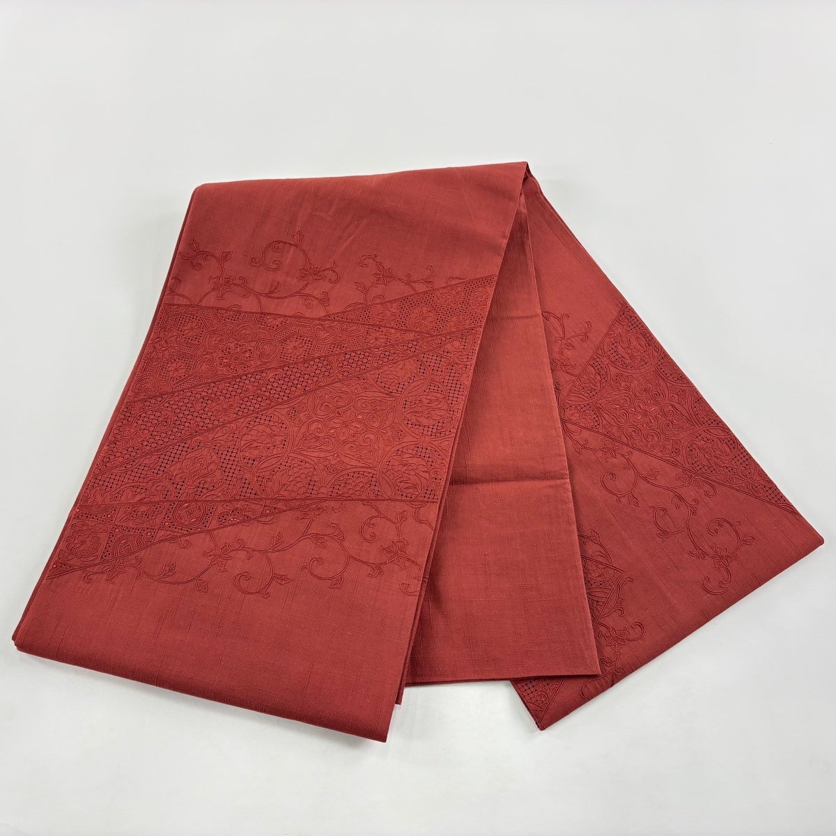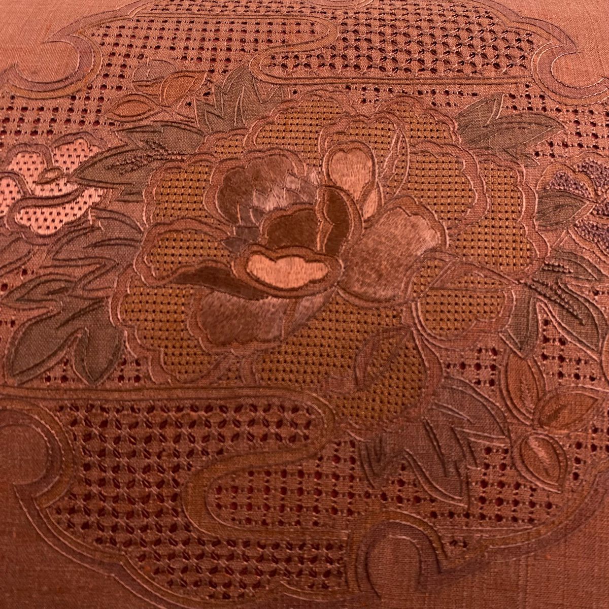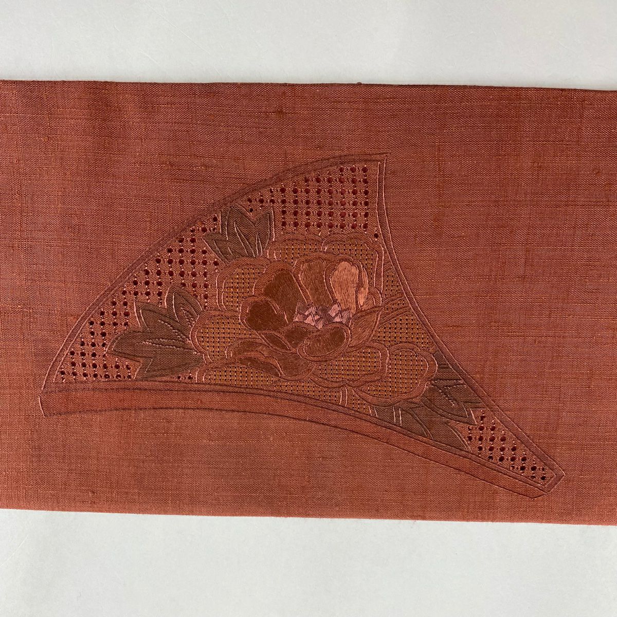 【美品】 袋帯 秀品 華文 花唐草 汕頭刺繍 赤茶 お太鼓柄 正絹