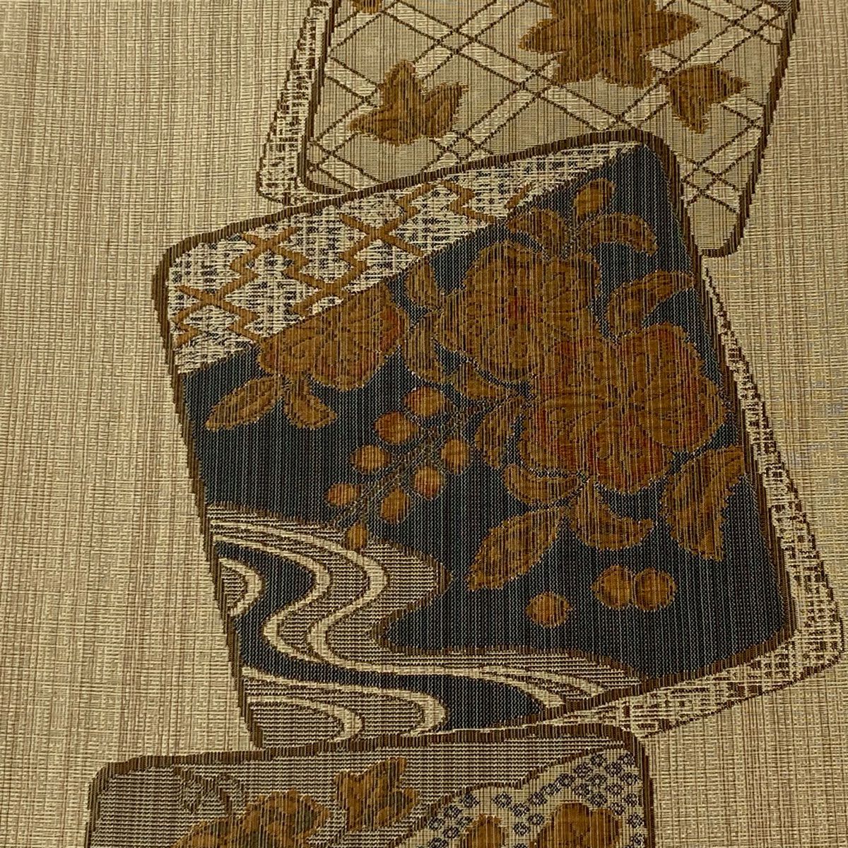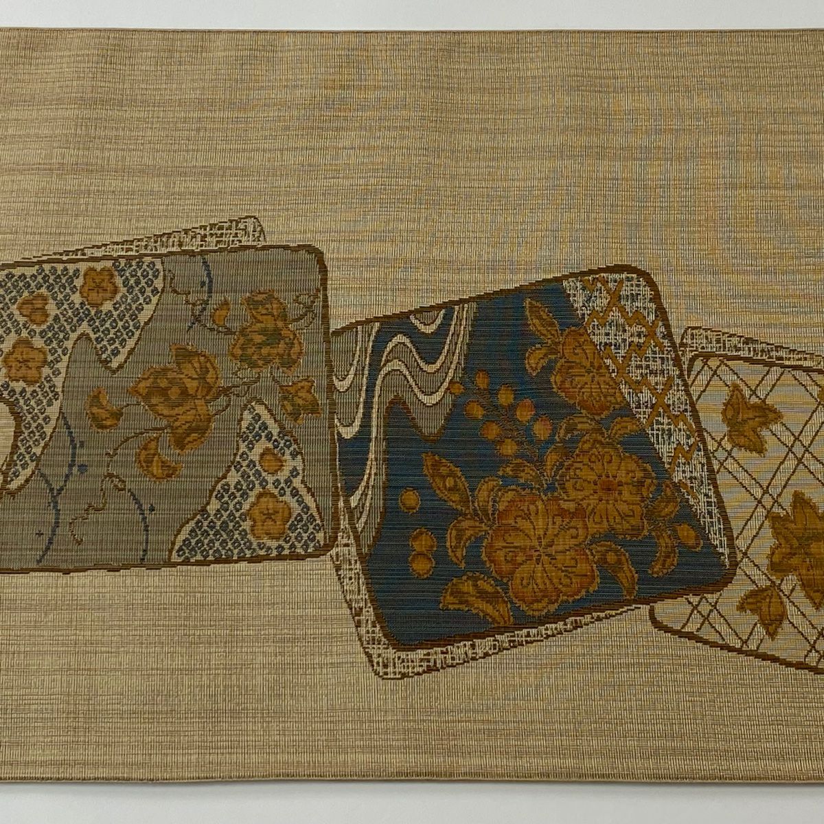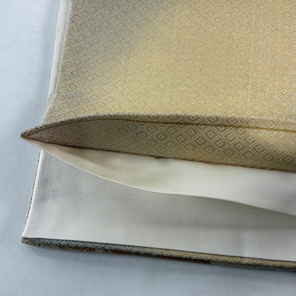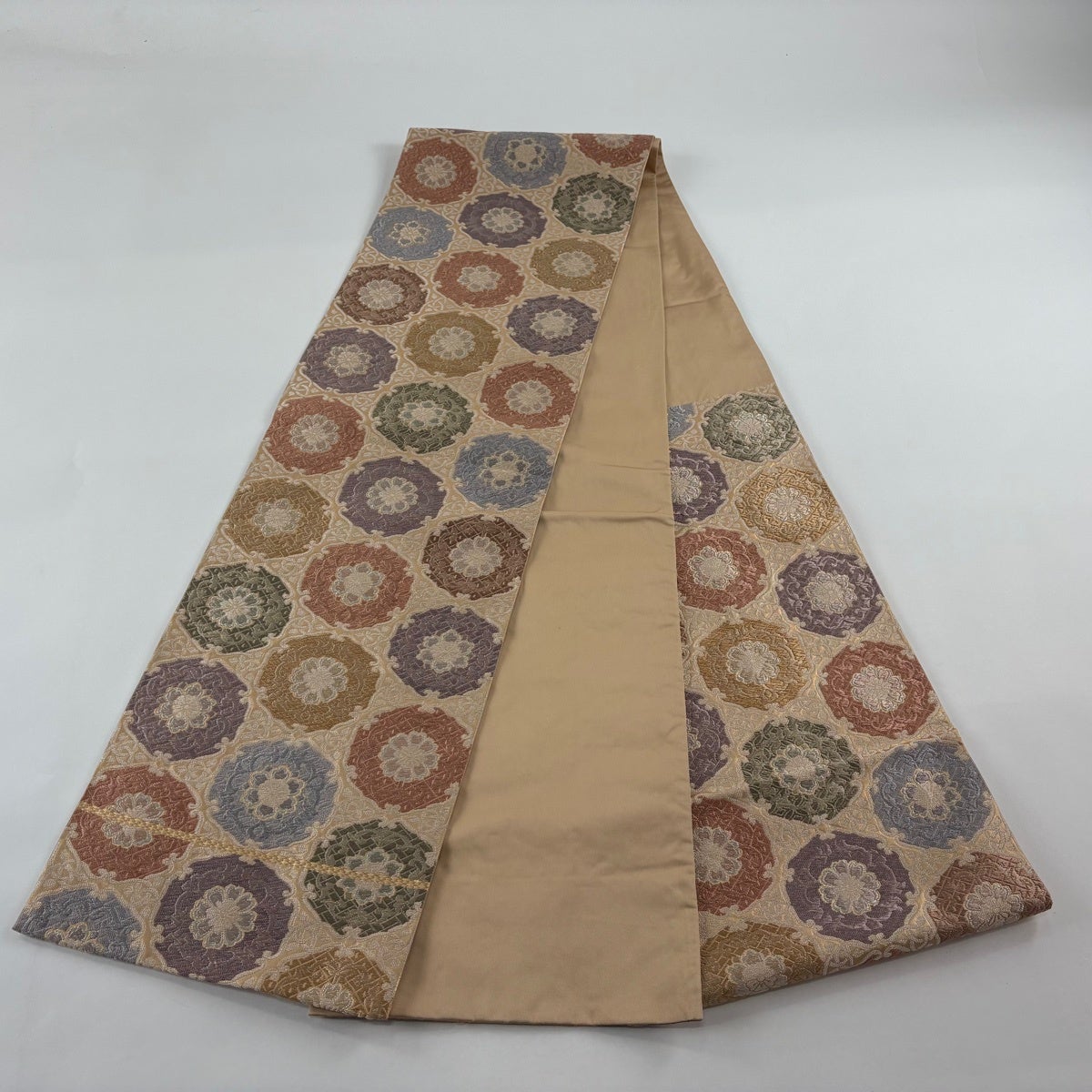 【美品】 袋帯 秀品 華文 菱格子 金糸 ベージュ 六通 正絹