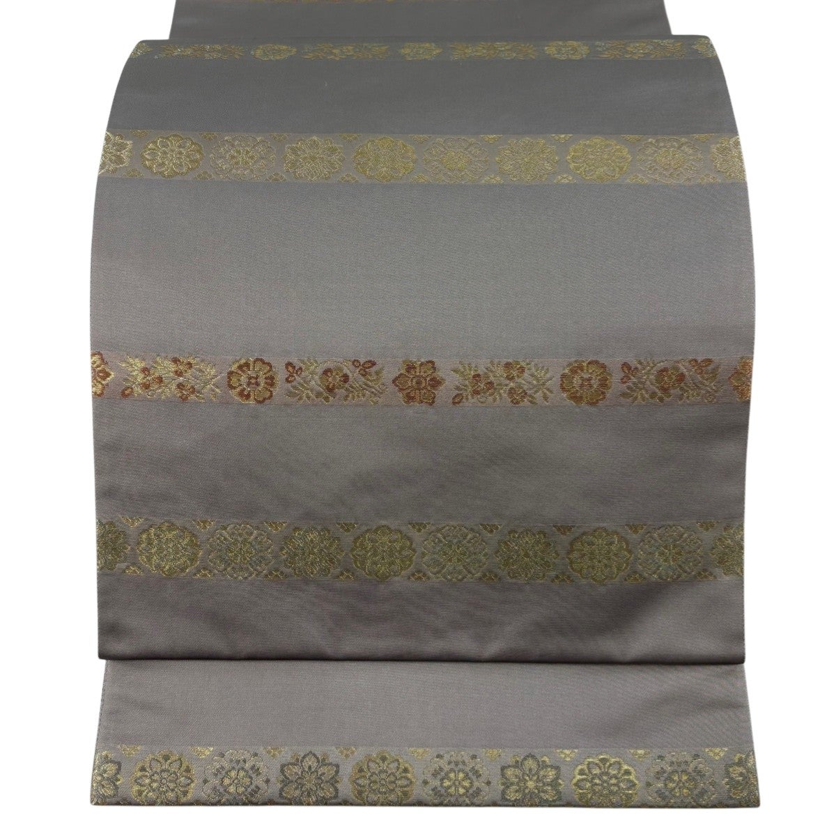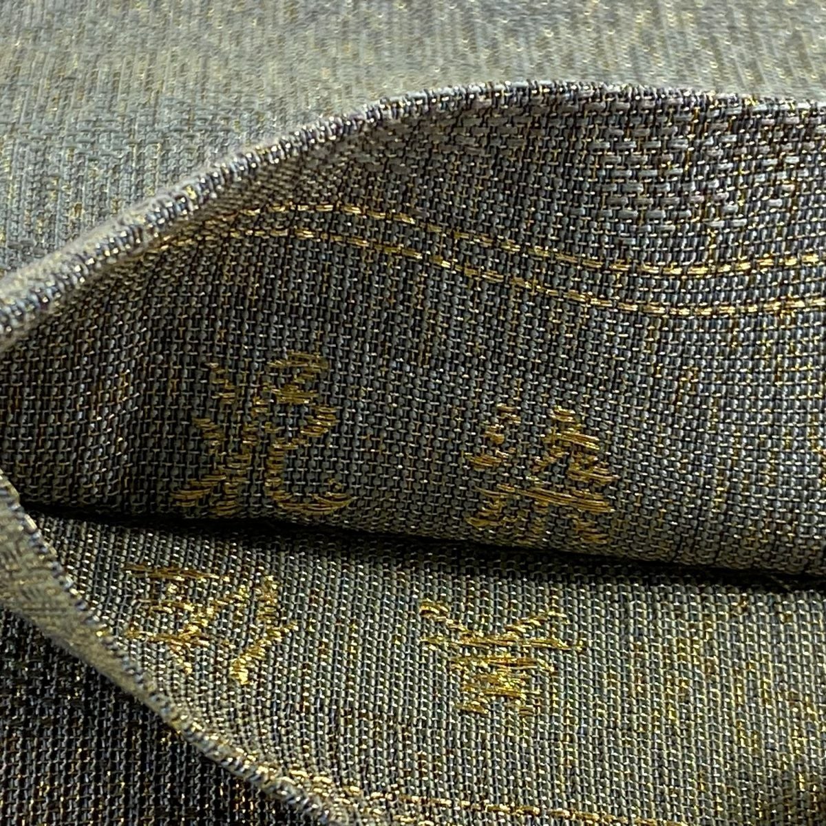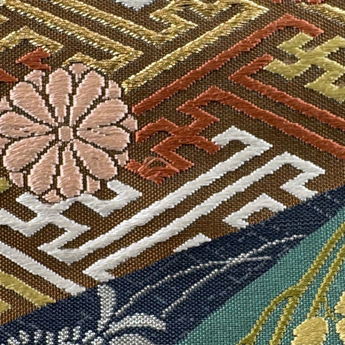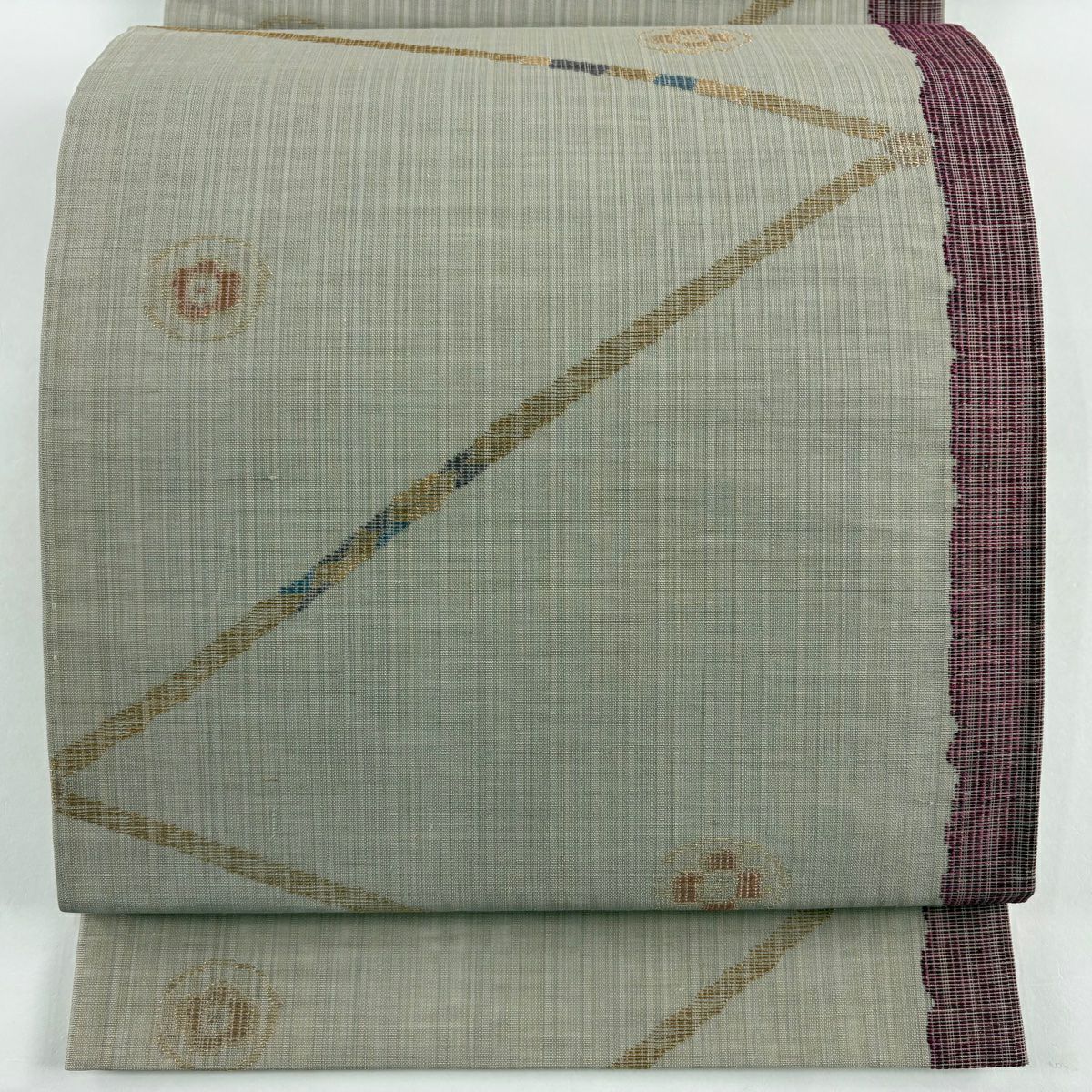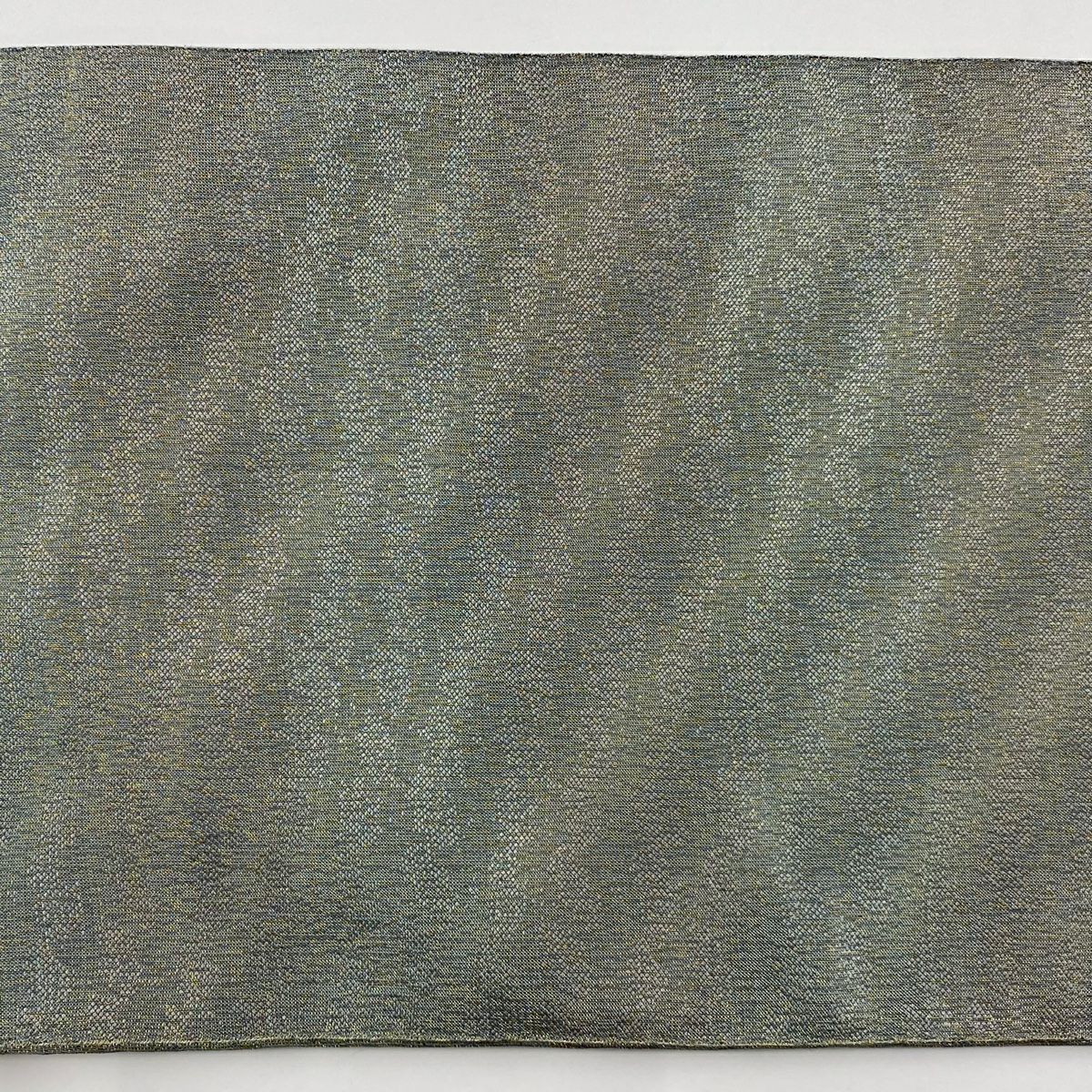 【在庫一掃】 袋帯 美品 秀品 幾何学 箔 灰緑 お太鼓柄 正絹