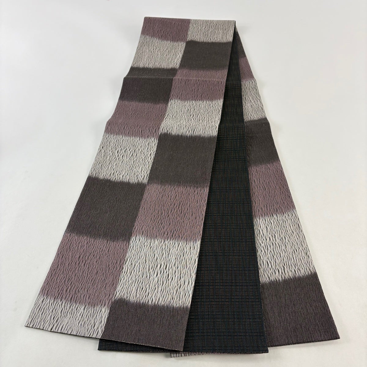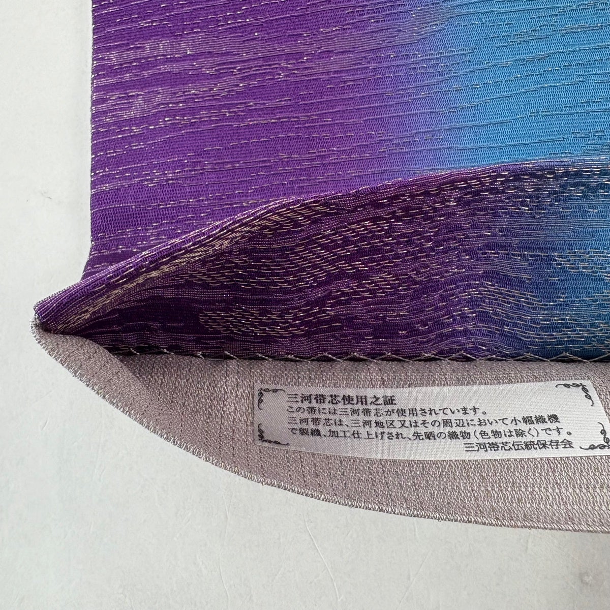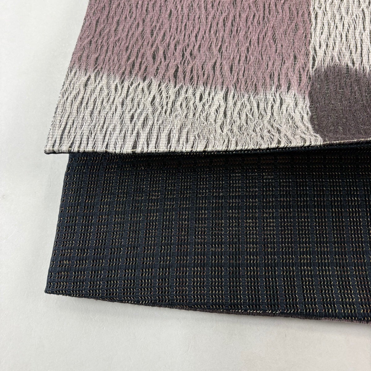 【美品】 袋帯 秀品 市松 よろけ縞 銀糸 ぼかし 紫 全通 正絹